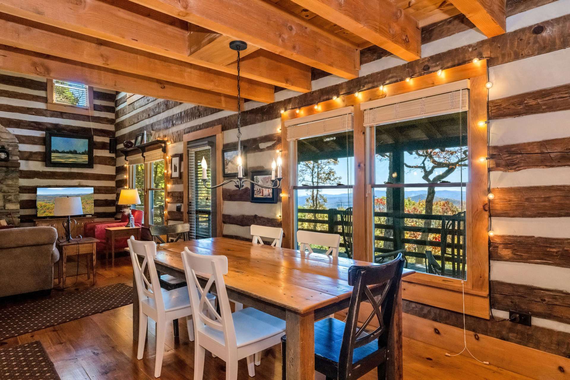 Wake up to the view of Grandfather Mountain while enjoying your morning coffee on the covered back deck of this exquisite antique log cabin. This cabin masterfully combines rustic charm with modern conveniences, creating an inviting retreat. Upon entering the front door, you are greeted by a spacious foyer and a convenient 1/2 bath. The great room seamlessly integrates the kitchen, dining, and living areas, making it ideal for hosting gatherings. The chef's kitchen presents commercial-grade appliances and an expansive island. The main level boasts a luxurious primary suite with stunning mountain views to greet you every morning. The private en-suite bath is a haven of relaxation, offering granite double sinks, a tiled shower, and a soaking tub. The upper level is designed with guests in mind, featuring 2 spacious bedrooms and a full bath. Each room provides comfort and privacy, making your guests feel right at home. The lower level is a versatile space, featuring an expansive family room. Also includes another full bath and 2 bonus rooms currently set up as bedrooms, ideal for accommodating additional guests. The wrap-around covered porches and expansive outdoor living room make this cabin an entertainer's dream. Whether hosting a summer BBQ or enjoying a quiet evening by the wood-burning outdoor fireplace, you'll love spending time outdoors. The fenced backyard is ideal for gardening and/or pets. A detached garage offers even more space for guests, featuring a sitting room, sleeping area, and full bath, creating a private guest suite. The lower level of the garage provides parking for 2 cars and room for a workshop, catering to all your storage and hobby needs. Every detail of this home has been thoughtfully designed and meticulously maintained, making it a truly exceptional property. With its stunning views, lavish amenities, and charming rustic appeal, this antique log cabin is the perfect mountain retreat for making lifelong memories with family and friends. Call today to schedule your tour of our listing B105!