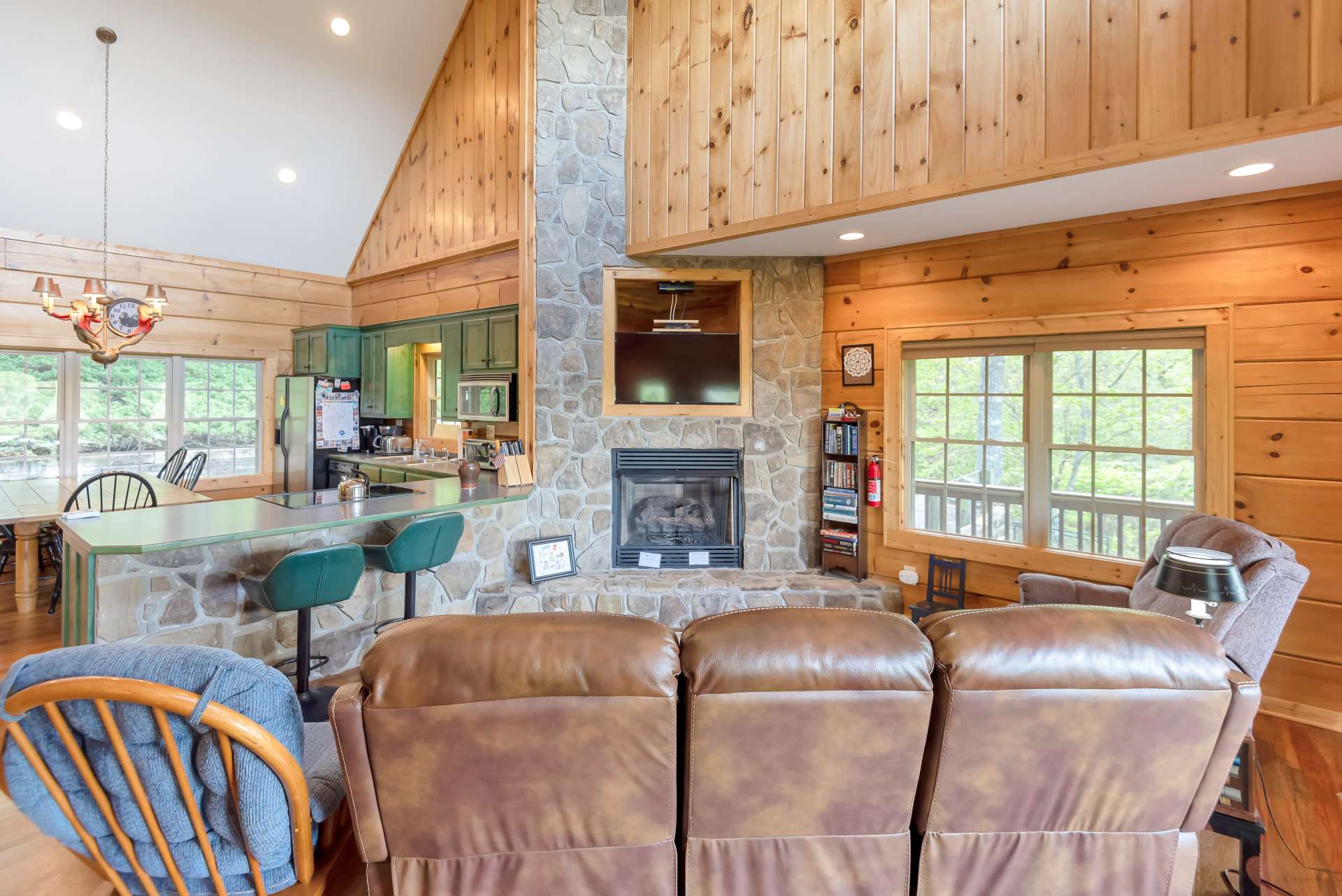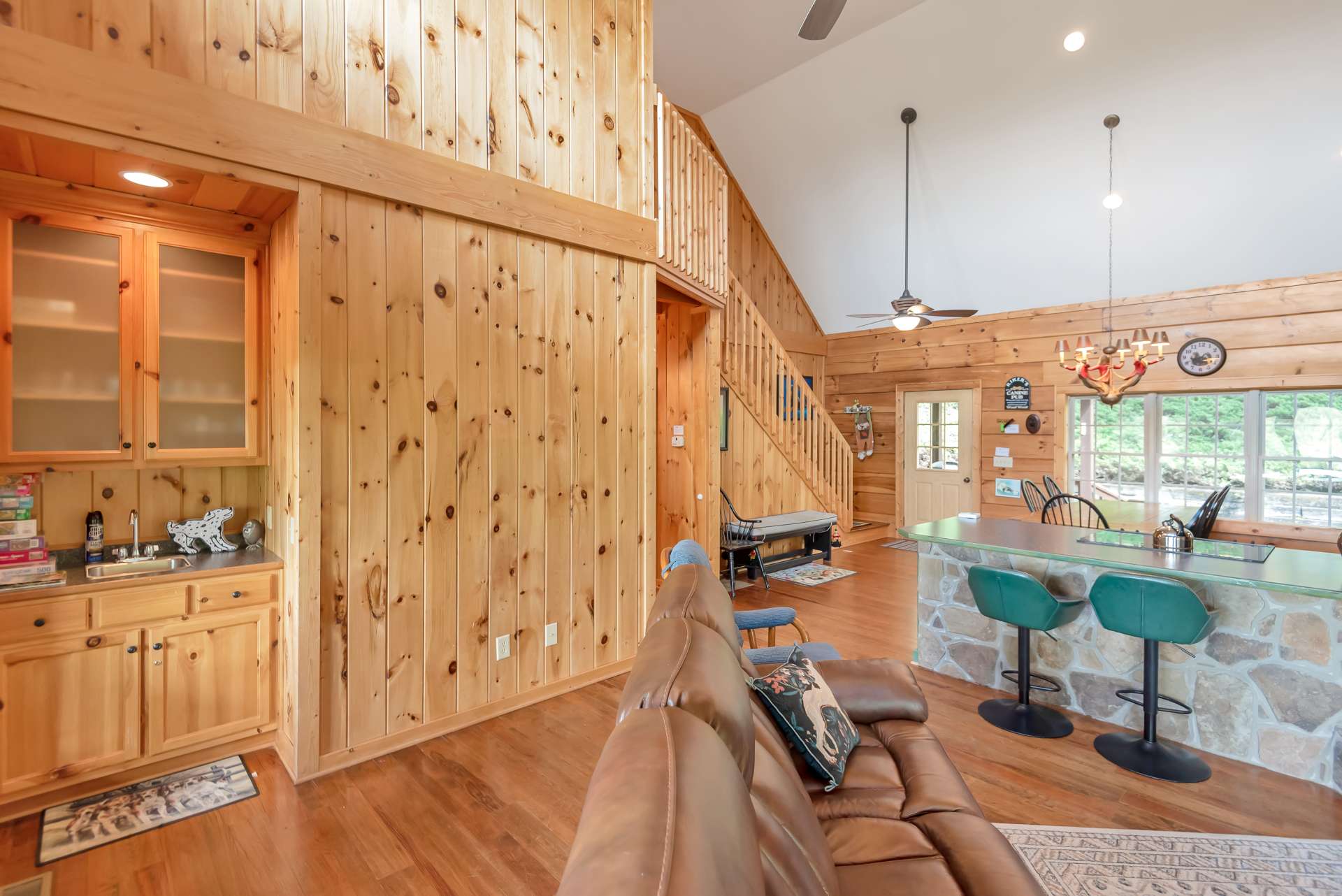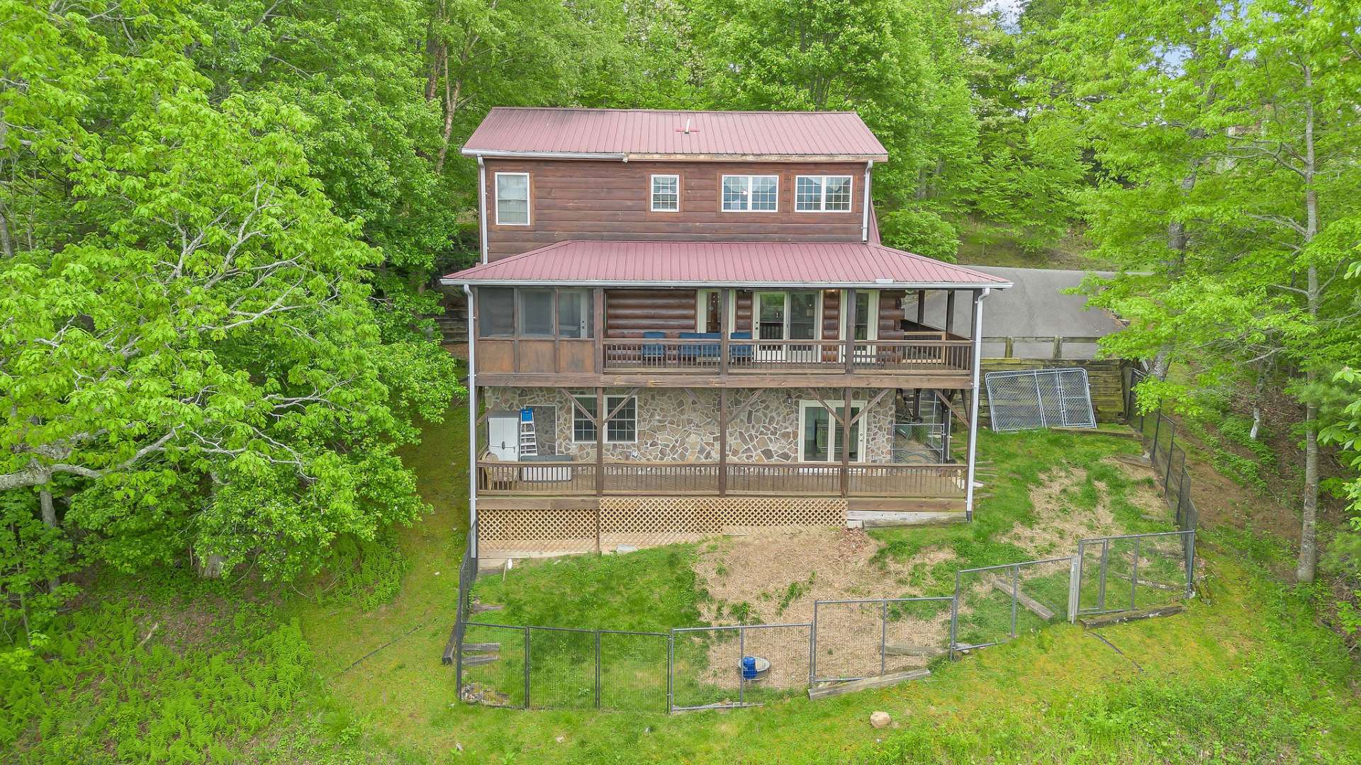 Mountain Getaway with Views, River Access and Room for Everyone! Ready to escape to the mountains in style? This fully furnished, turnkey log cabin brings the vibe and the space. Located in a paved, gated community just a short drive from downtown West Jefferson, this one checks all the boxes: New River access, a community lake, and the New River State Park just minutes away. Whether you're looking for full-time living, a second home, or a proven vacation rental (yes, rental history is available), this one's a standout. Step inside and feel the mountain charm right away. The open-concept main level features an eat-in kitchen with tons of cabinet space, a vaulted great room with a dramatic floor-to-ceiling stone gas fireplace, and a built-in wet bar for all your adult beverage needs. Walk right out from the great room onto a huge covered porch and take in those long-range views. Guests? There's a convenient half bath on the main level. The oversized primary suite is its own retreat, complete with double vanities, whirlpool tub, walk-in shower, and private access to a screened-in porch with hot tub included. The upper level offers two generous bedrooms that share a full bath, perfect for guests or family. But wait, there’s more. The finished lower level is an entertainer’s dream, with a game room, a bonus room (currently set up as extra sleeping space or ideal for a home office), a full bath, laundry, and even a finished indoor kennel space that opens into a fenced outdoor area—yep, it’s a dream setup for your fur babies too. Sold mostly furnished with just a few exclusions, this cabin is move-in or rent-out ready. You're just minutes from Blue Ridge Parkway adventures and within easy reach of NC metro areas for those weekend escapes. This one has it all, views, space, style, water access, and income potential. Schedule your showing for our listing S110 before this mountain gem disappears.