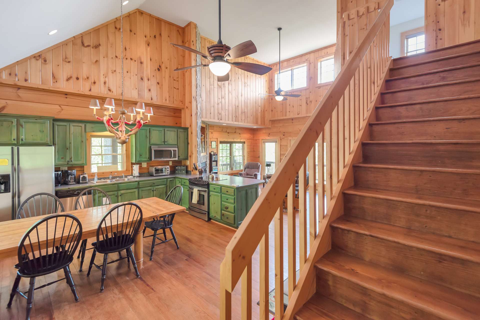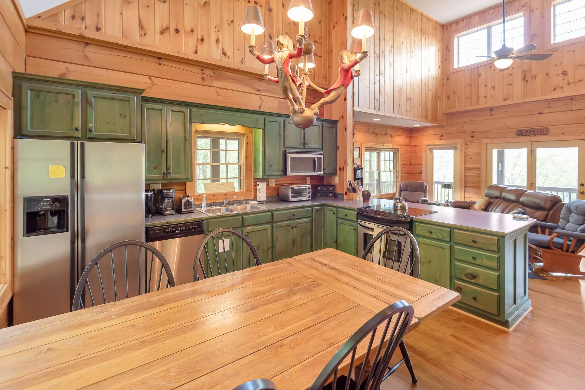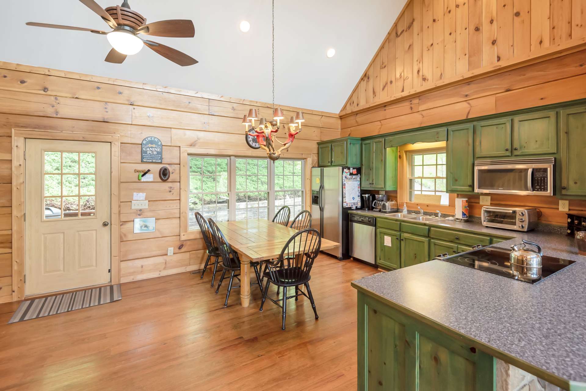 Mountain Getaway with Views, River Access and Room for Everyone! Ready to escape to the mountains in style? This fully furnished, turnkey log cabin brings the vibe and the space. Located in a paved, gated community just a short drive from downtown West Jefferson, this one checks all the boxes: New River access, a community lake, and the New River State Park just minutes away. Whether you're looking for full-time living, a second home, or a proven vacation rental (yes, rental history is available), this one's a standout. Step inside and feel the mountain charm right away. The open-concept main level features an eat-in kitchen with tons of cabinet space, a vaulted great room with a dramatic floor-to-ceiling stone gas fireplace, and a built-in wet bar for all your adult beverage needs. Walk right out from the great room onto a huge covered porch and take in those long-range views. Guests? There's a convenient half bath on the main level. The oversized primary suite is its own retreat, complete with double vanities, whirlpool tub, walk-in shower, and private access to a screened-in porch with hot tub included. The upper level offers two generous bedrooms that share a full bath, perfect for guests or family. But wait, there’s more. The finished lower level is an entertainer’s dream, with a game room, a bonus room (currently set up as extra sleeping space or ideal for a home office), a full bath, laundry, and even a finished indoor kennel space that opens into a fenced outdoor area—yep, it’s a dream setup for your fur babies too. Sold mostly furnished with just a few exclusions, this cabin is move-in or rent-out ready. You're just minutes from Blue Ridge Parkway adventures and within easy reach of NC metro areas for those weekend escapes. This one has it all, views, space, style, water access, and income potential. Schedule your showing for our listing S110 before this mountain gem disappears.