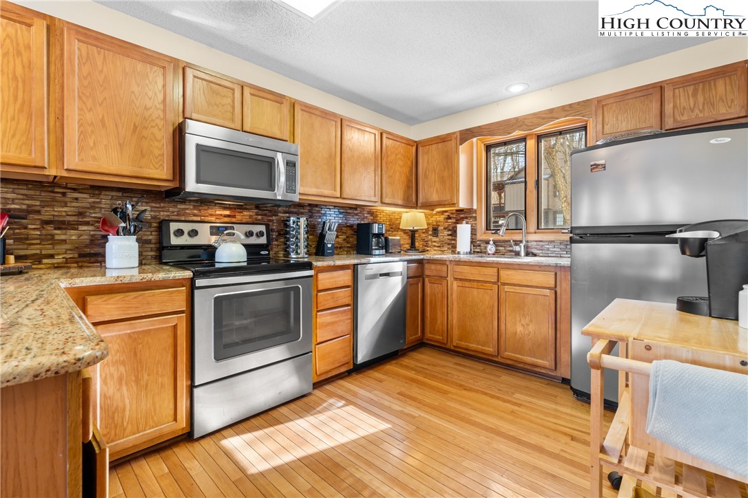 Welcome Home to Doe a Deer, nestled on a peaceful dead-end road in the heart of Beech Mountain. This beautifully updated 4 bedroom - 3 bath retreat offers the best of Beech Mountain living and comes with a 1/2 interest in the lot below enhancing your privacy! This home is also a very successful RENTAL w/ excellent rental history of $69,000 for 2024 & 2025! With level entry and an ideal open layout, this home provides both convenience and plenty of room to entertain for the holidays! The spacious family room is anchored by a stunning stone wood-burning fireplace creating the perfect spot to gather after a day of exploring the great outdoors. The wall of windows floods the living space with natural light and offers seasonal views of the mountains. The kitchen is a chef’s dream featuring granite countertops, stainless appliances and an abundance of cabinet space. The main level also includes a guest bedroom as well as a full bath for convenience. The lower level is where you'll find the primary bedroom suite that is spacious with ample room to relax and unwind. There are 2 additional well-sized bedrooms on this level, a full bath and laundry area. Recent updates include a NEW ROOF & HOT WATER HEATER providing peace of mind for years to come. The home is being sold fully furnished so all you need to do is move in and start enjoying your mountain retreat. In addition to the home's excellent features, this property is eligible for membership to the exclusive Beech Mountain Club, giving you access to a wide range of resort-style amenities. Enjoy year-round recreation with access to the Ski House at Ski Beech, an 18-hole golf course, fine dining, a state-of-the-art fitness center and outdoor pickleball and tennis courts. This home is an ideal retreat for nature lovers, adventure enthusiasts or anyone seeking a peaceful, well-appointed sanctuary in the mountains. The home had NO damage from Hurricane Helene.