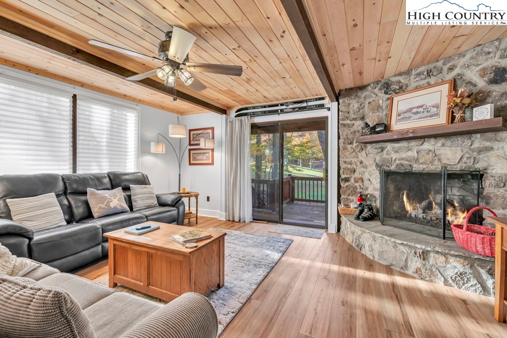 Beautiful Condo Overlooking Beech Mountain Golf Course. Discover this gorgeous 2-bedroom, 2.5-bath condo—the only condominium complex located directly on the Beech Mountain Golf Course. Enjoy stunning long-range views of the 17th green and surrounding mountain landscape from your spacious private deck. Inside, you’ll find new luxury vinyl plank flooring throughout, complemented by ceramic tile in all bathrooms. The updated kitchen design and modern LED lighting create a bright, inviting atmosphere, while two interior fireplaces add warmth and charm during the winter months. This beautifully furnished condo is truly move-in ready, allowing you to start relaxing and entertaining right away. A current Beech Mountain Club membership is available for transfer, offering access to an 18-hole professional golf course, clay tennis and pickleball courts, outdoor swimming pool, clubhouse dining, 24-hour fitness center, children’s day camp, and more. Perfectly located just 1.5 miles from the Club and Buckeye Recreation Center, this property also allows monthly, seasonal, and annual rentals—an excellent opportunity for both personal enjoyment and investment. Schedule your private showing today and experience mountain living at its finest!