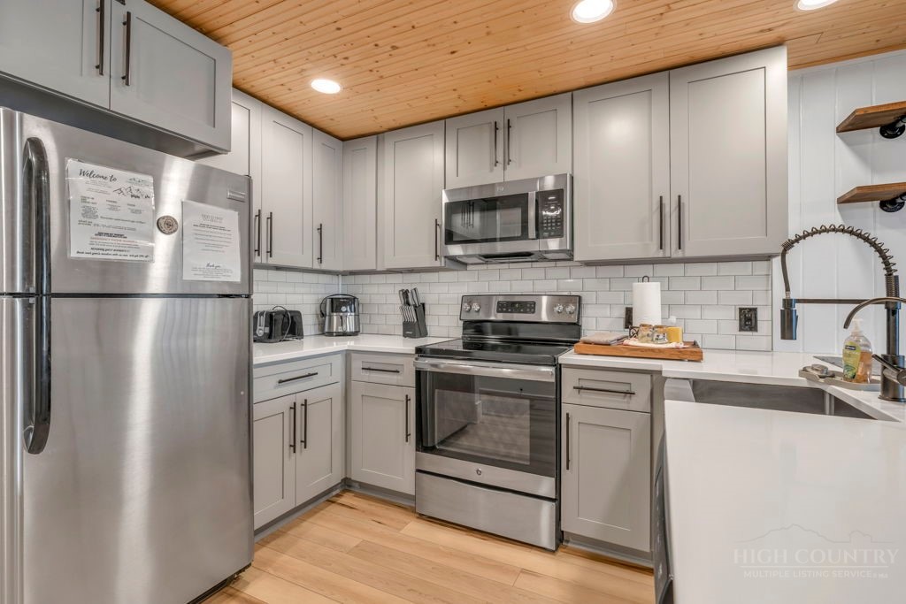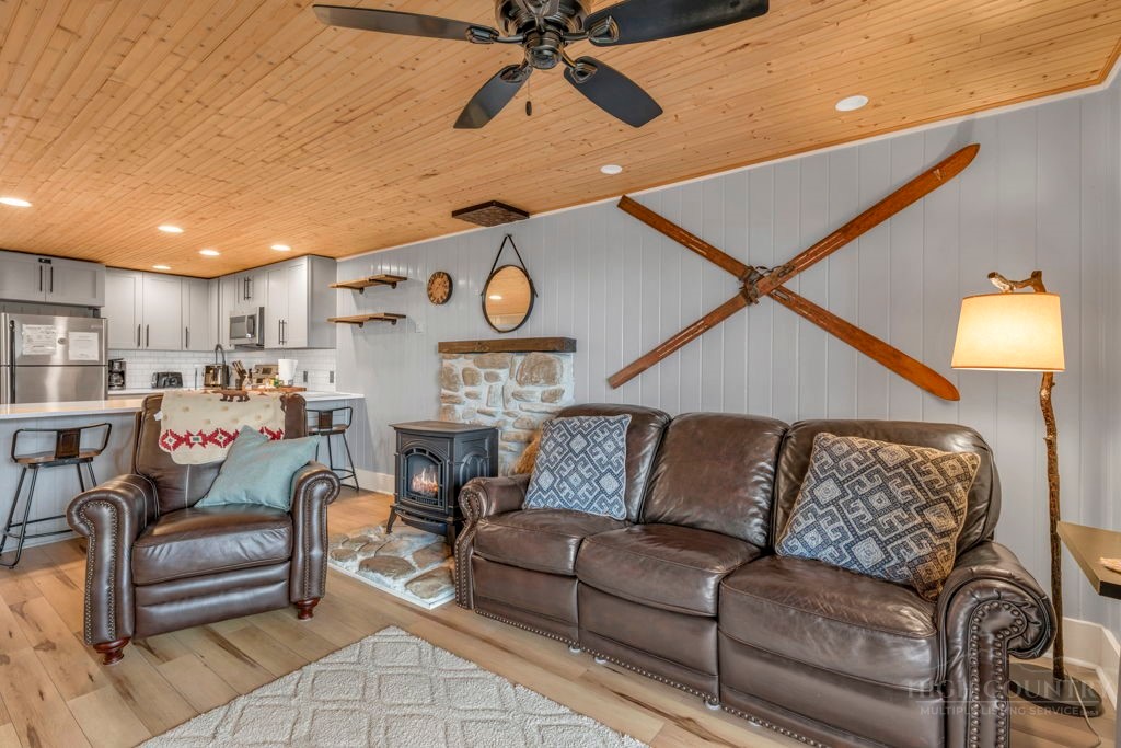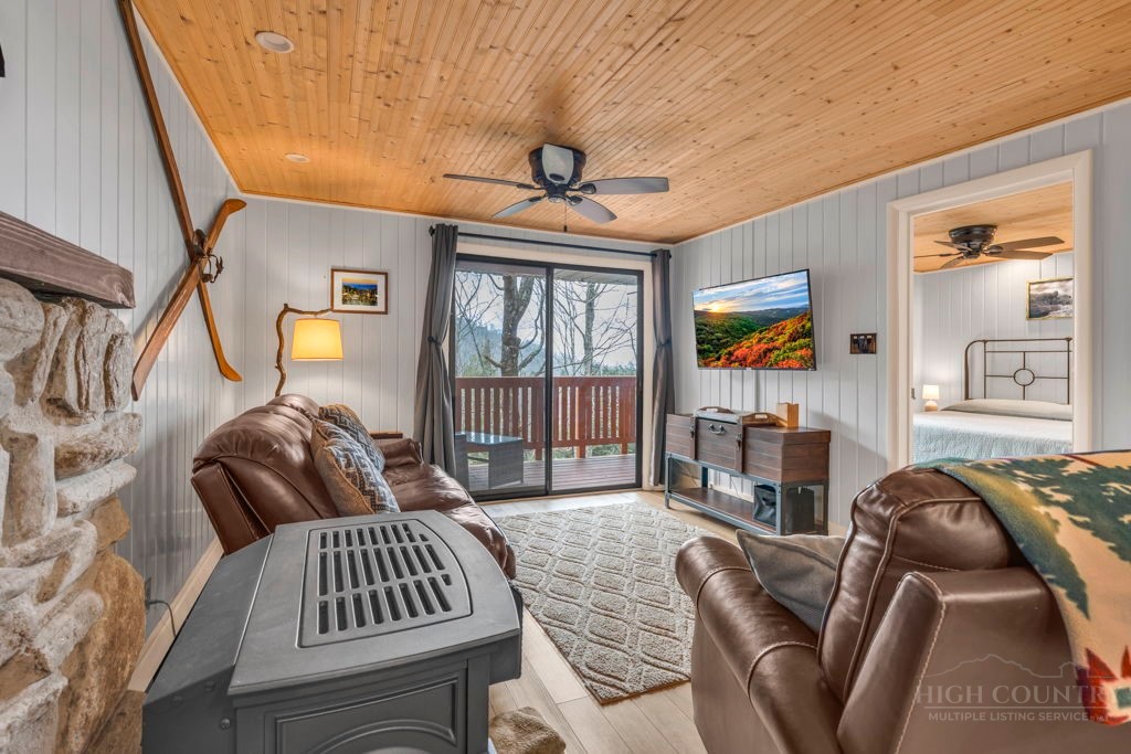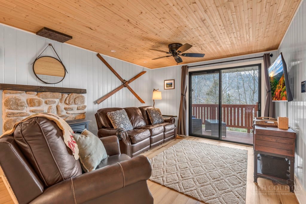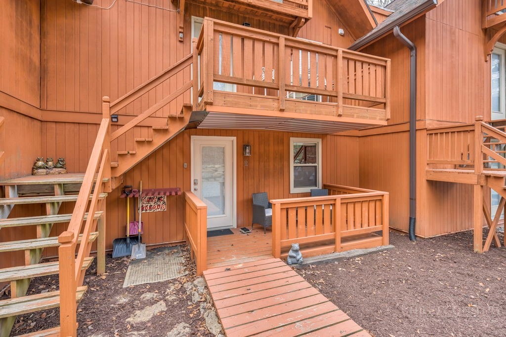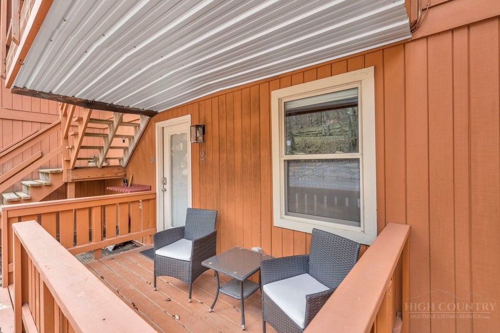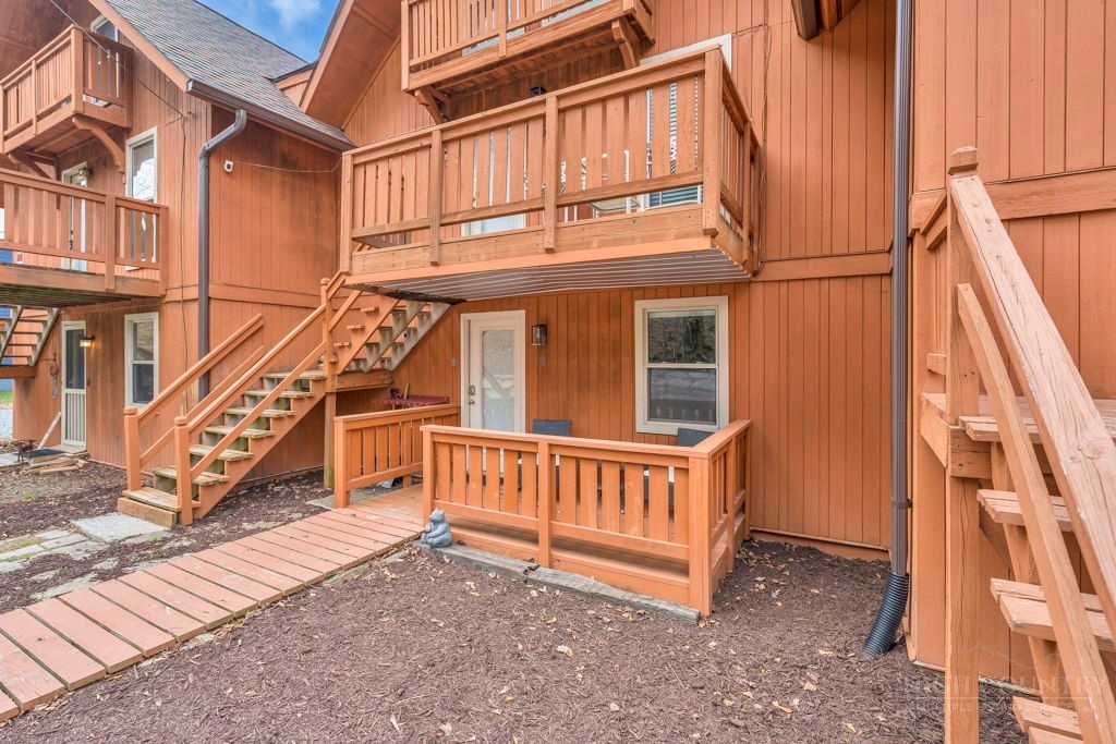 WALK TO THE SLOPES! This inviting mountain retreat offers the ideal blend of convenience, comfort, and investment potential—perfect as a turnkey rental property or your own private High Country escape. Thoughtfully designed for easy one-level living, this beautifully furnished 2-bedroom, 1-bath condo features an open, welcoming layout enhanced by luxury vinyl plank flooring throughout. The cozy free-standing fireplace creates a warm, alpine ambiance, while the fully equipped interior—including a convenient stack washer and dryer—ensures effortless living for owners and guests alike. Step outside onto the rear deck and unwind to the soothing sounds of the creek below, surrounded by seasonal mountain views and frequent wildlife sightings—a peaceful, natural setting that defines the mountain lifestyle. Whether you're seeking a low-maintenance investment property or a charming getaway just steps from the slopes, this property delivers on location, comfort, and turnkey appeal.
