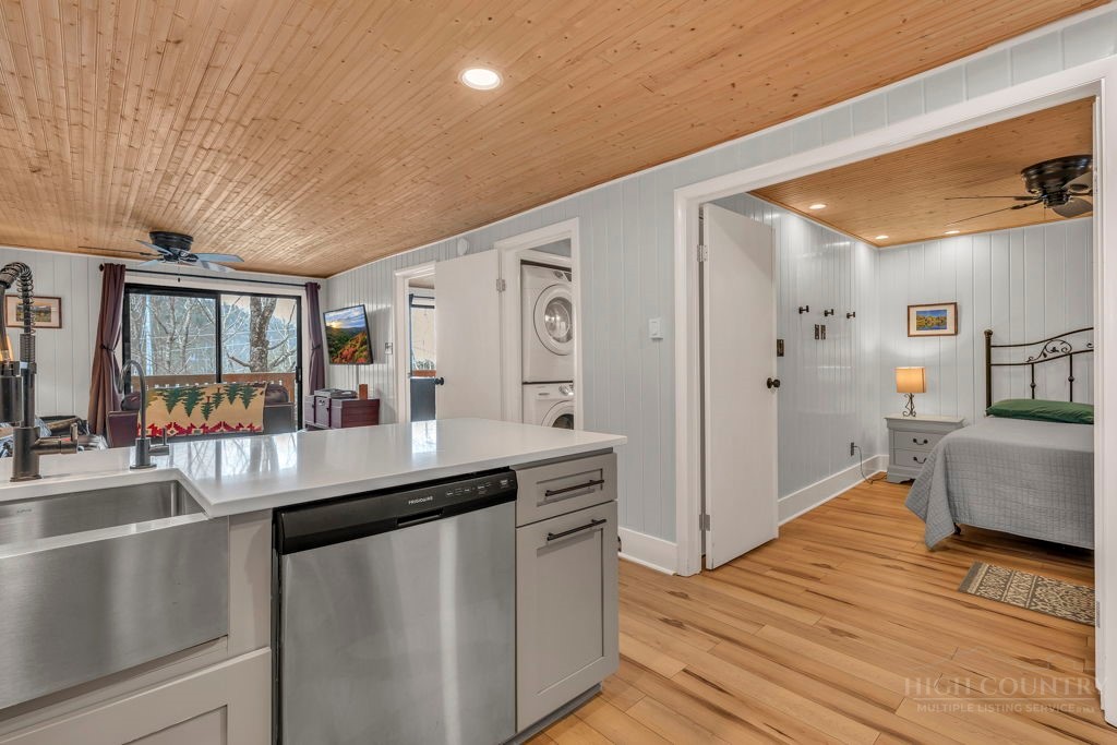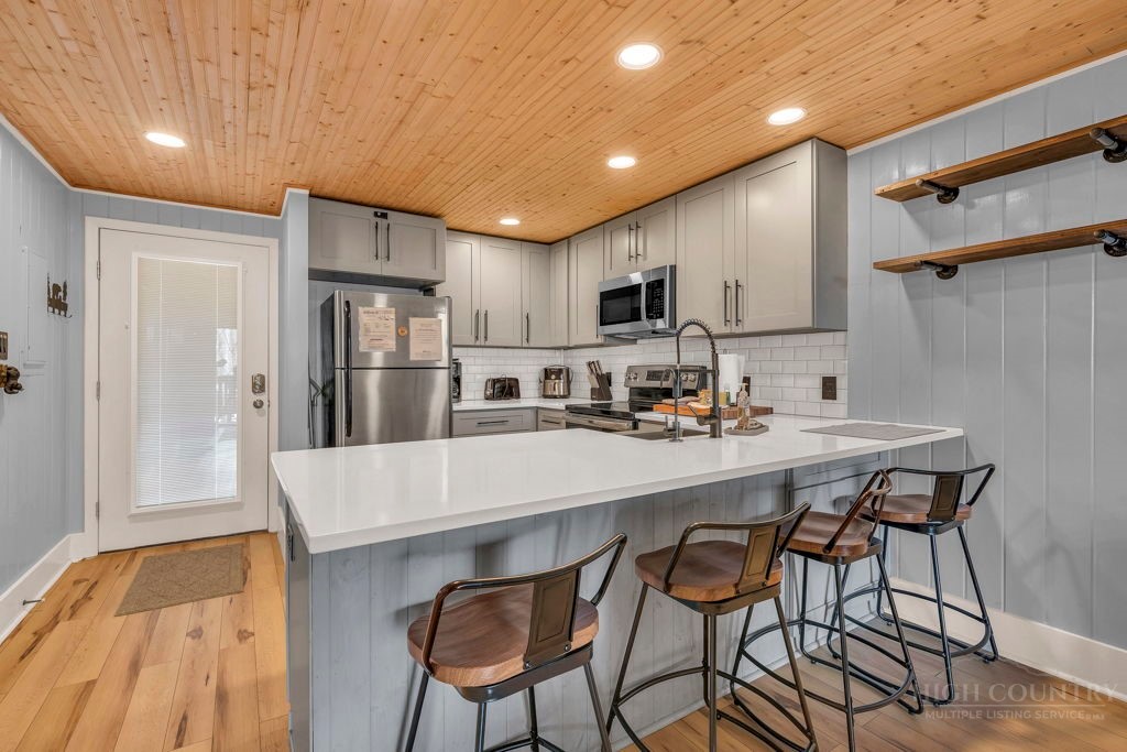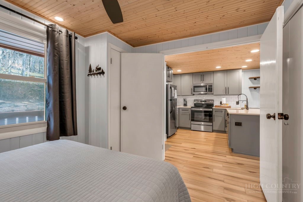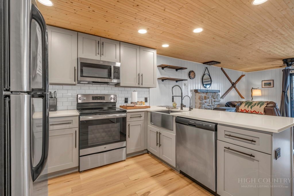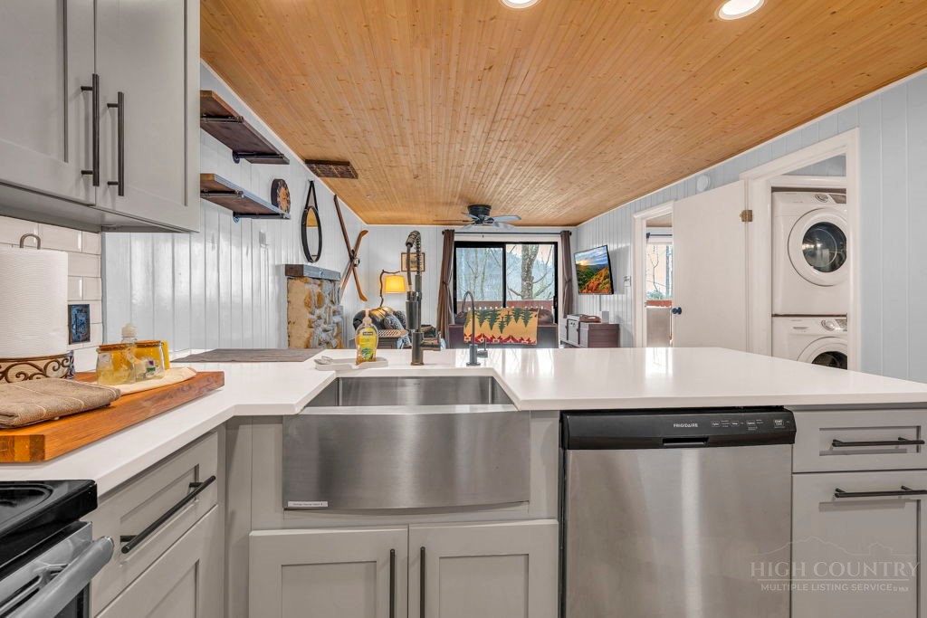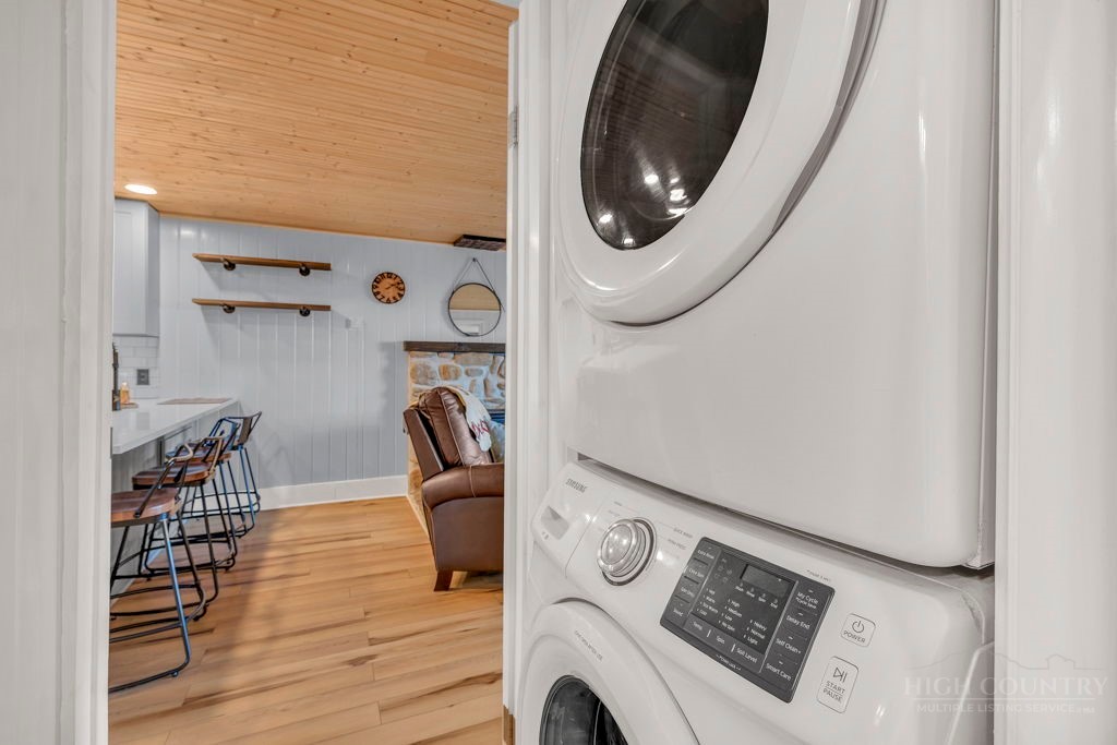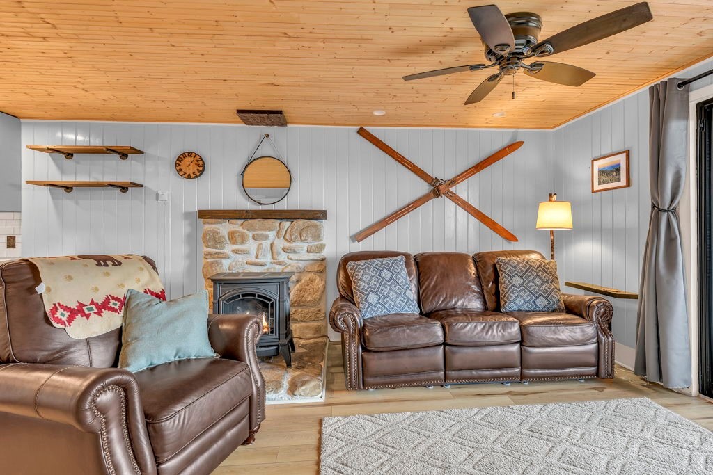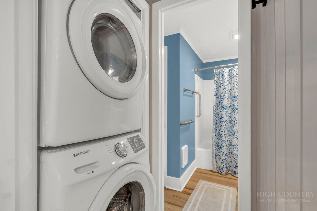 WALK TO THE SLOPES! This inviting mountain retreat offers the ideal blend of convenience, comfort, and investment potential—perfect as a turnkey rental property or your own private High Country escape. Thoughtfully designed for easy one-level living, this beautifully furnished 2-bedroom, 1-bath condo features an open, welcoming layout enhanced by luxury vinyl plank flooring throughout. The cozy free-standing fireplace creates a warm, alpine ambiance, while the fully equipped interior—including a convenient stack washer and dryer—ensures effortless living for owners and guests alike. Step outside onto the rear deck and unwind to the soothing sounds of the creek below, surrounded by seasonal mountain views and frequent wildlife sightings—a peaceful, natural setting that defines the mountain lifestyle. Whether you're seeking a low-maintenance investment property or a charming getaway just steps from the slopes, this property delivers on location, comfort, and turnkey appeal.