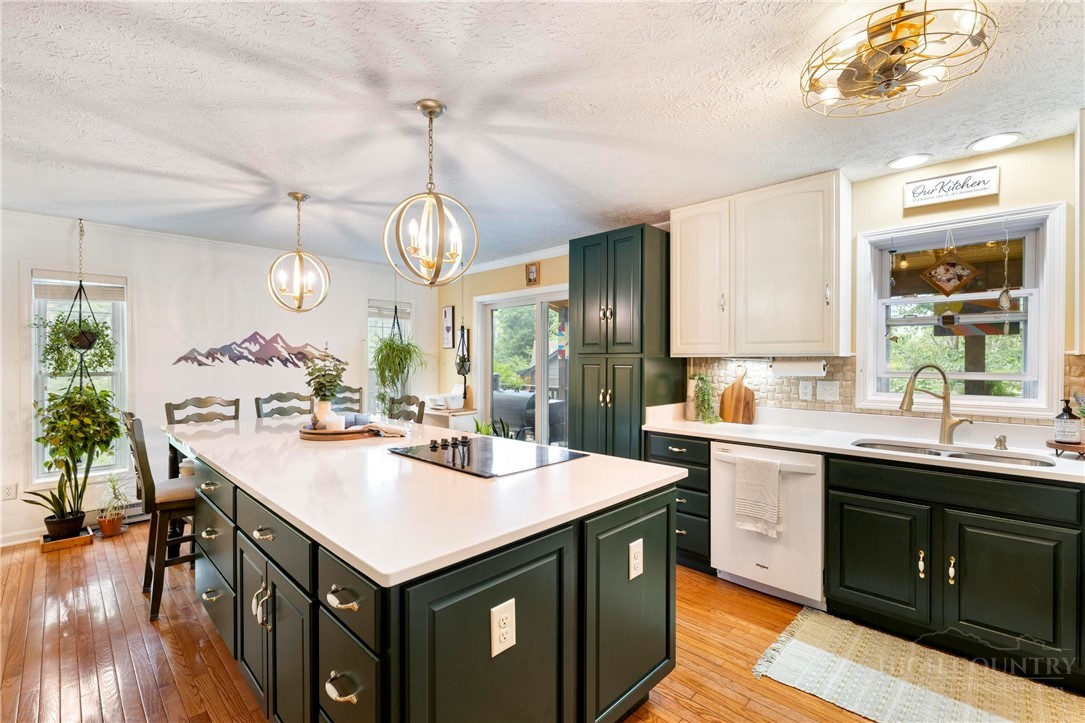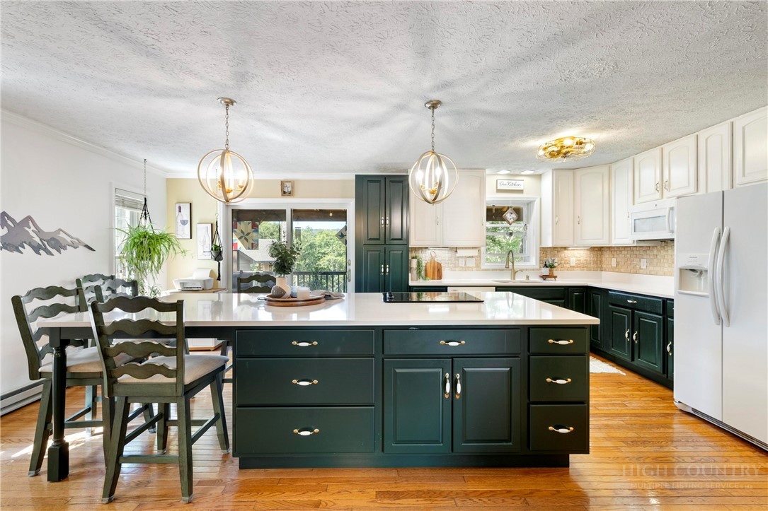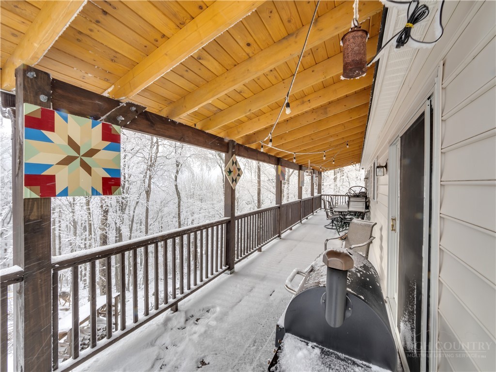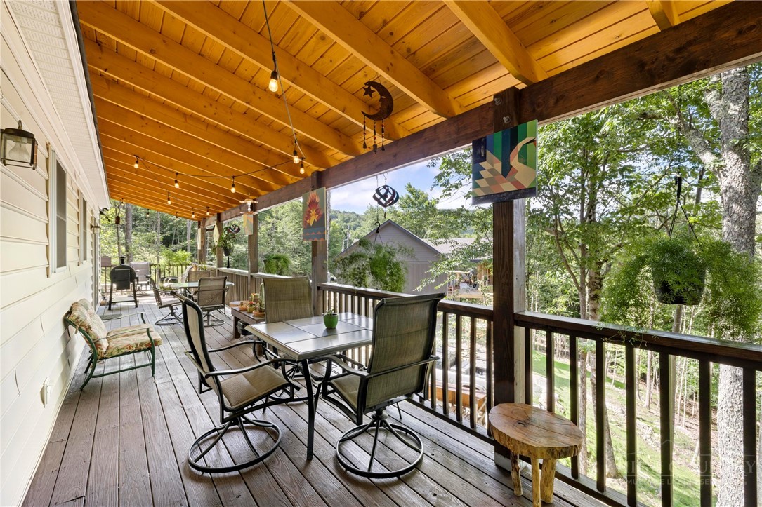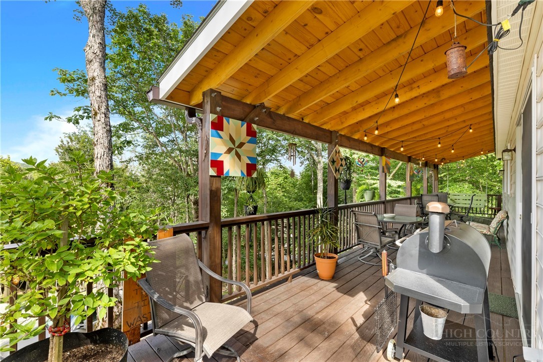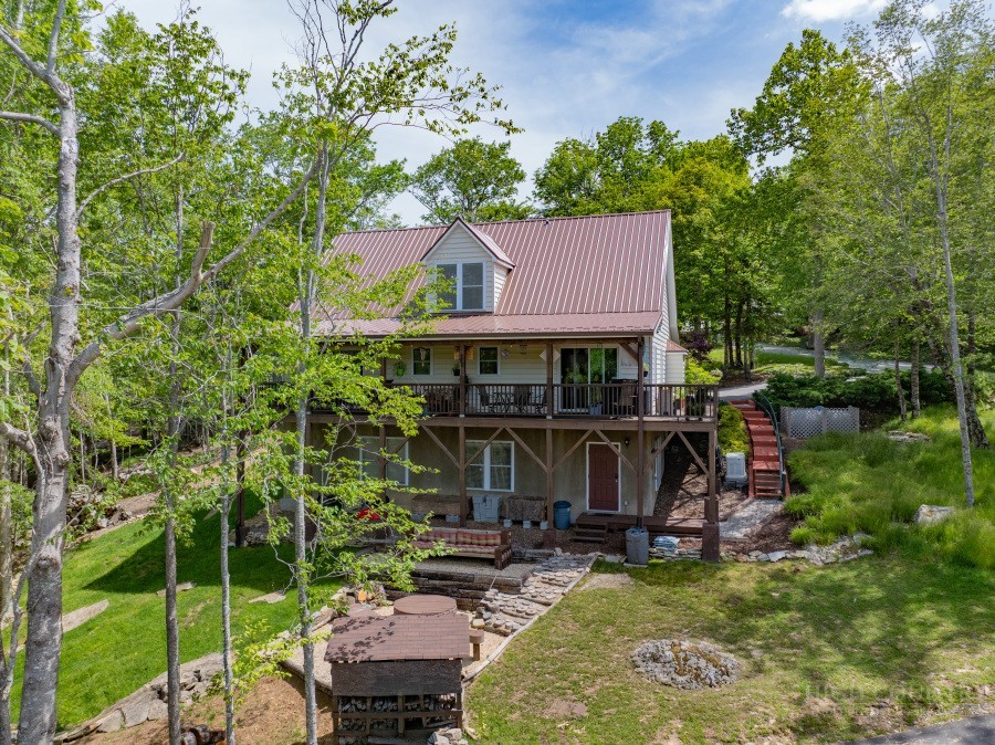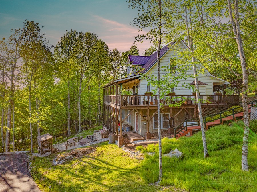 If you are looking for a full time home or vacation getaway on Beech Mountain, it does not get much better than this. Well cared for and very spacious farmhouse style home with an oversized two car garage and BRAND NEW METAL ROOF! Situated at roughly 4800 feet, enjoy seasonal views from your huge covered wrap-around deck, wonderful for year round all weather enjoyment. Step inside to discover an open and inviting great room featuring a stunning, newly renovated kitchen complete with a large island for cooking and gathering. Abundant cabinetry and quartz countertops make cooking a joy, while newer efficient Anderson sliding doors lead to the back porch for outdoor dining and entertainment. The main level could be truly one level living as you will find the laundry room and half bath on this level along with the huge primary suite with its own ensuite. Sliding glass doors also lead out to the back porch, wonderful for enjoying coffee in the morning! Upstairs, a loft offers a versatile space that works well as a reading nook or bonus entertainment area. There are also two huge bedrooms with an abundance of closet space plus a shared large full bath. Downstairs in the finished basement, you will find a bonus room, full bath, and huge multipurpose area, currently being used as an Air BnB. This could easily hold a pool table if desired or a kitchen added to make it a full 2nd guest quarters. The possibilities are endless with all this space! Head outside to unwind in the evenings while stargazing in the custom oversized fire pit lounging area! Convenient to the Beech Mountain Ski Resort, Beech Mountain Club, and the Buckeye Recreation Center! If you are looking for an investment property, this has so much potential and a projection of $50,000+ per year possible. As an added bonus, this home is equipped with a 24kW Generac whole house generator to keep you warm when the power goes out! This home truly offers the best blend of comfort, space, tranquility, and value!