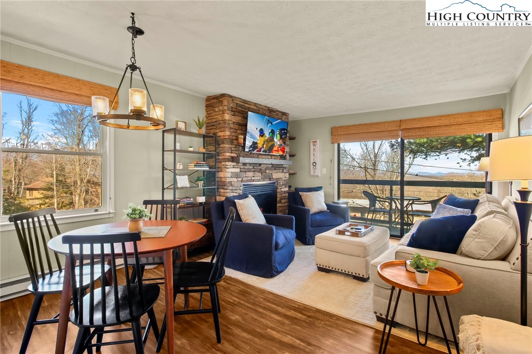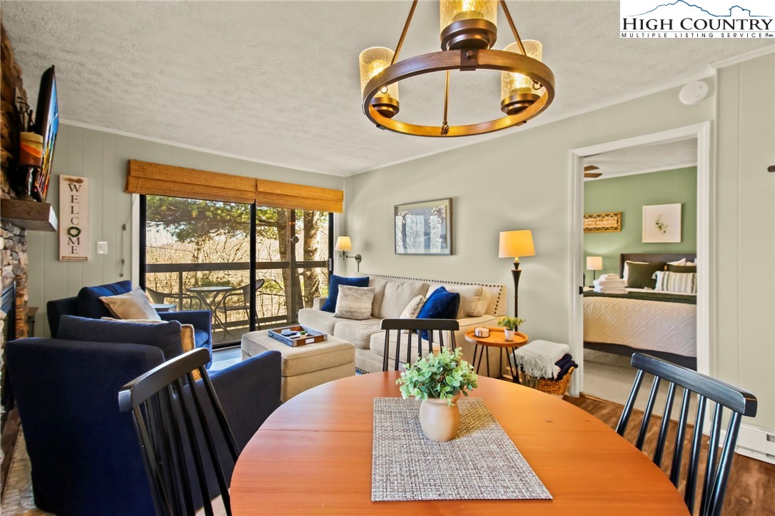 Welcome Home to Beech Vibe Condo, your perfect year-round retreat nestled in the heart of Beech Mountain! This condo boasts an unbeatable location, just a short stroll from Ski Beech Resort making it ideal for both winter sports enthusiasts and summer adventurers. It has also grossed $13,800 YTD for 2025. Beech Vibe Condo is a charming 1 BEDROOM - 1 BATH RENOVATED END UNIT that sleeps 6 and has the desirable rustic farmhouse style. The interior features sleek laminate flooring in the main living areas & the kitchen is equipped with granite countertops and new stainless steel appliances (2024). The cozy family room includes a rustic stone gas log fireplace that adds warmth and ambiance, along with a pull-out queen sofa sleeper with an upgraded mattress for extra comfort. Step outside onto the inviting exterior deck, where you can breathe in the fresh mountain air and enjoy glimpses of the wildlife that frequently visits. The spacious bedroom is thoughtfully furnished with a comfortable queen bed and a convenient set of bunk beds easily accommodating additional guests. The full bathroom has been tastefully updated and includes a stackable washer/dryer, enhancing the unit's practicality. Additional modern conveniences include digital WiFi Mysa thermostats for easy climate control, a digital WiFi Kwickset lock for enhanced security PLUS a ROKU TVs in both the living area and bedroom for your entertainment. The living room features a washable rug & the bedroom is adorned with beautiful bed linens that enhance the overall charm of the condo. Being sold fully furnished, Beech Vibe Condo comes with everything you need to start generating rental income right away. Plus, the monthly HOA fee covers water, sewer, trash, internet & basic cable making this property an attractive option for both personal enjoyment and investment potential. Don’t miss out on this opportunity to own a piece of paradise on Beech Mountain at an affordable price! Beech Mountain Club eligible.