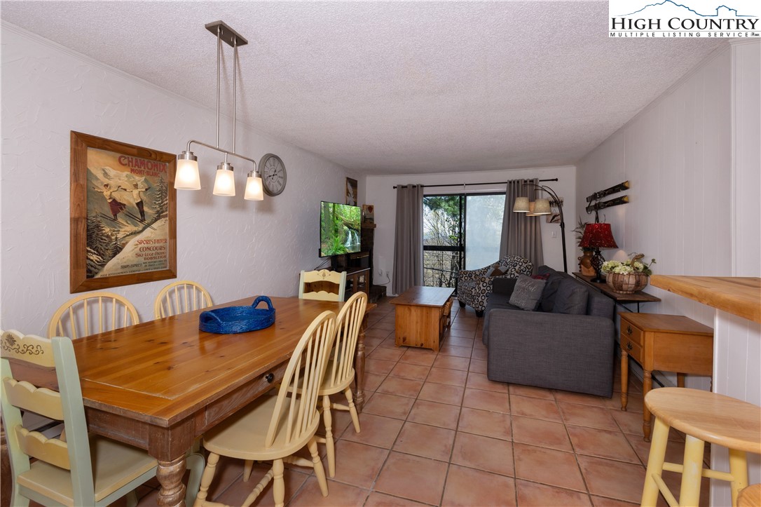 Ideal Location On Beech Mountain! walk to ski lodge , village, lift and slopes , restaurants , bars , the brewery ,and tubing. 2 bedrooms, 2 bathrooms ,and futon in living room comfortably sleeps 6 .Stone Gas fireplace, full kitchen with butcherblock countertops ,microwave ,stove, full size fridge, stackable washer and dryer , tile floors , sold turn key. All furniture , dining room table, TV's , lamps, linens, towels, dishes , pots and pans ready to go ! Even the rocking chairs on the deck to relax and slow down for a warm drink. In the winter, park at your condo and walk with your skis and skip the traffic. In the summer walk to the concerts on the slopes. Pet friendly . Hike, bike, play tennis, pickleball, golf , ski at the resort. Come make this your mountain retreat ! COA dues include Spectrum Internet and Cable TV, water, sewer, snow removal, exterior insurance policy, exterior landscaping , roof, siding, gutters, decking, parking lot maintenance, and clubhouse. Shown by appointment. Short term and long term rental permitted.