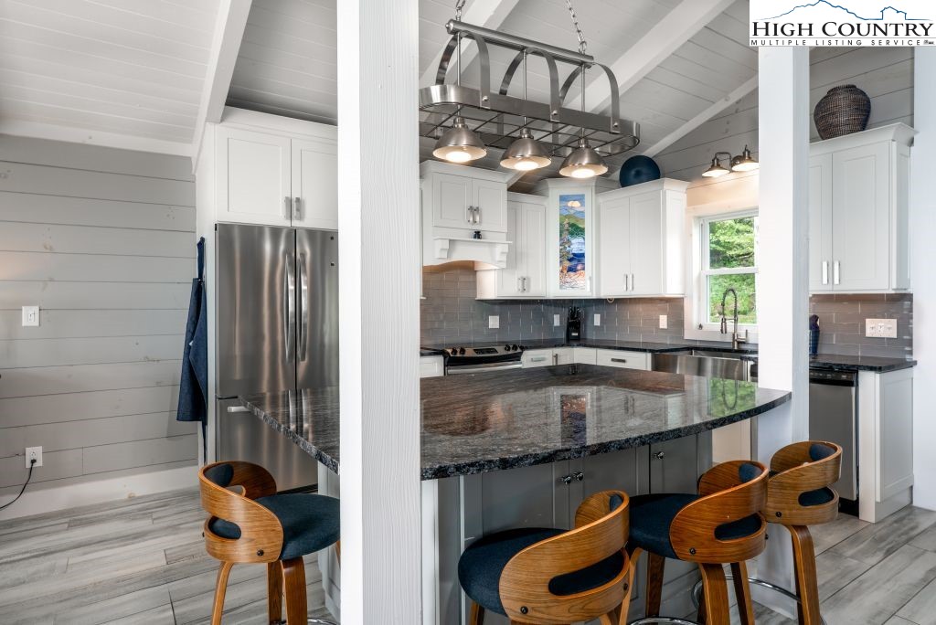 Experience mountain living at its finest in this completely renovated four-bedroom, 2.5 bath residence on Beech Mountain in the sought-after area of The Cliffs. Current Beech Mountain Club Membership! Rental Projection $102,000! Enjoy stellar long-range, layered views of North Carolina, Virginia and Tennessee and of Beech Mountain Resort. This home was thoughtfully renovated with family gatherings in mind. The main floor has an open floor with a well-appointed kitchen with custom cabinetry, granite countertops, a lovely kitchen island with space to gather and French doors that allow one to enjoy the views from inside the home or go out onto the deck and enjoy additional space for entertaining and soaking in the views. The den has windows abound with a wood-burning fireplace, vaulted ceilings and plenty of space to gather. Off the family room is a half bath as well as an office and enter into the spacious primary suite with vaulted tongue and groove ceilings, beautiful walk-in tile shower, dual sinks and granite tops. The lower level will not disappoint and was designed for guests and family. There is a convenient separate entrance, three guest bedrooms and bath. The family room has a modern feel with quartzite stone wall with electric fireplace. A wet bar with beverage refrigerator, microwave and granite countertops. Go onto the covered deck which provides you with the views but with shade. The garage is an extra bonus, making this home great for year-round living or a second home. Home is being offered fully furnished with a Beech Mountain Club membership. Sunset Park is just around the corner offering spectacular sunset views. Beech Mountain Resort, the Club, hiking, fishing and all things summer/winter are within minutes of this property. Hot tub is not in working order but being serviced by rental agency. Enjoy the summer music series, 4th of July fireworks all from your deck! Ample parking. Property is rented heavy during the Ski Season.