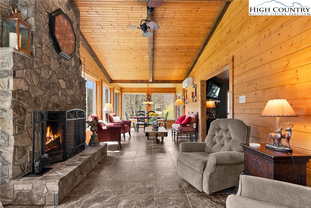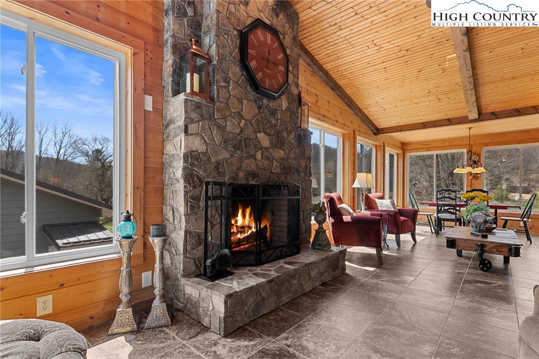 Fireplace: Two, Gas, Stone, Vented, Wood Burning