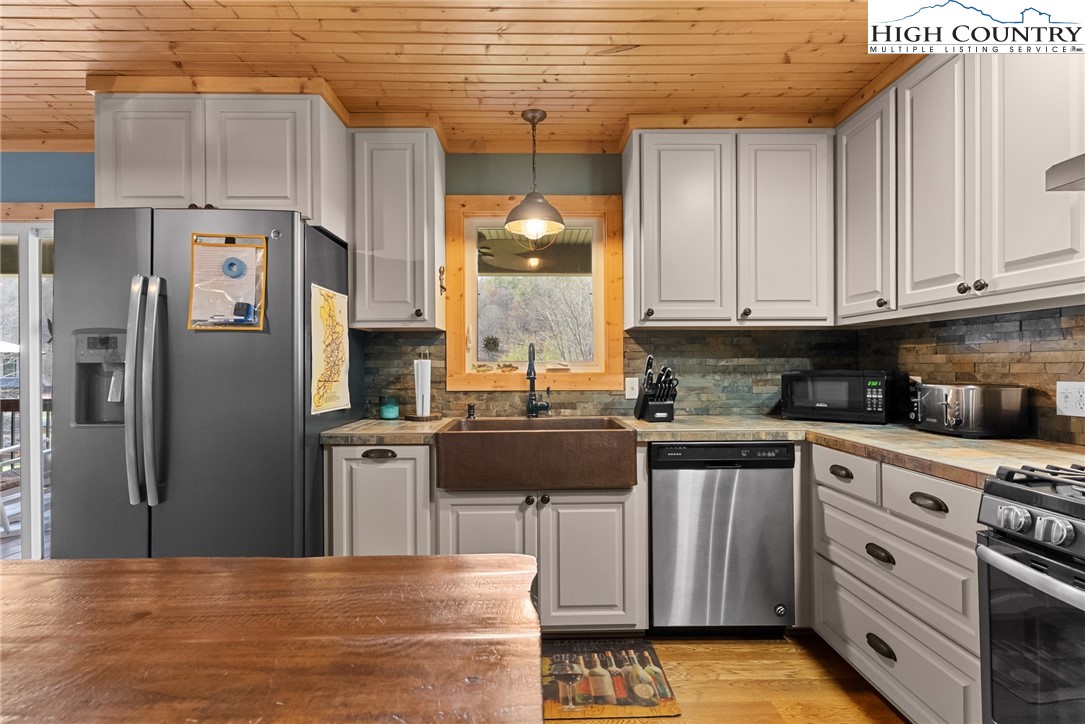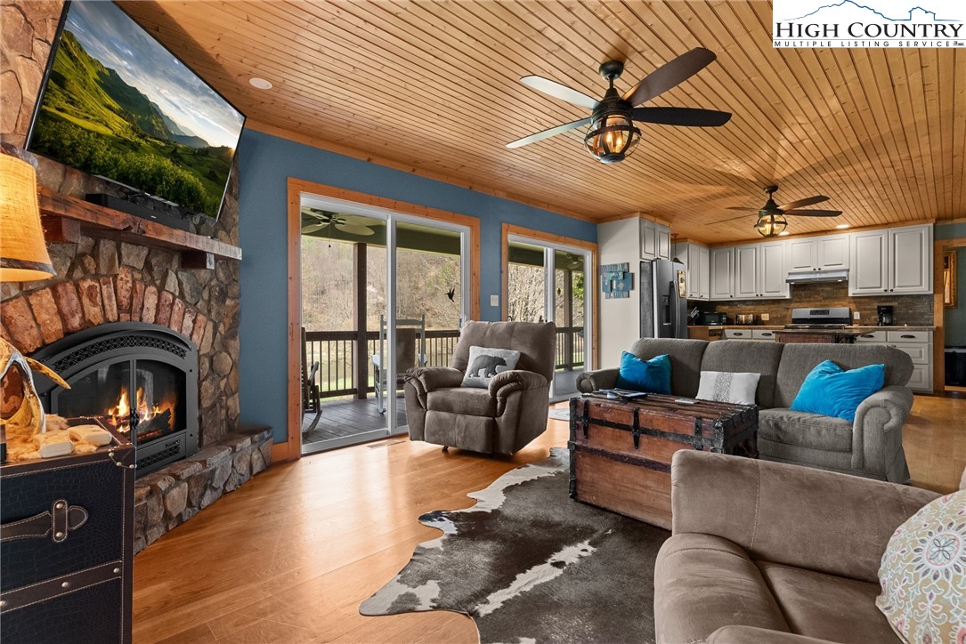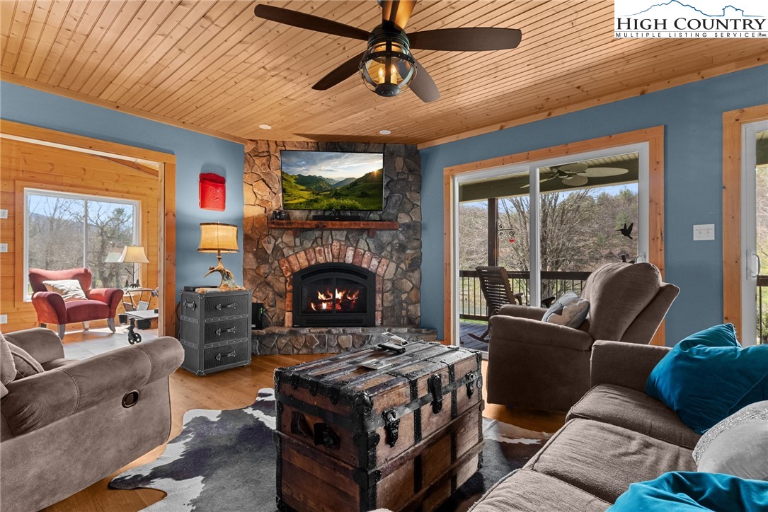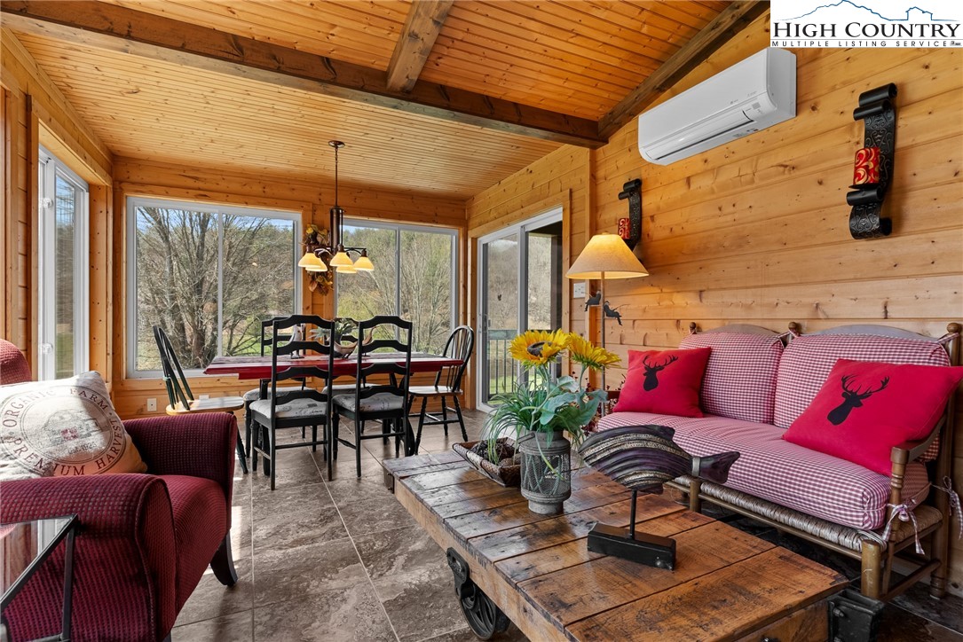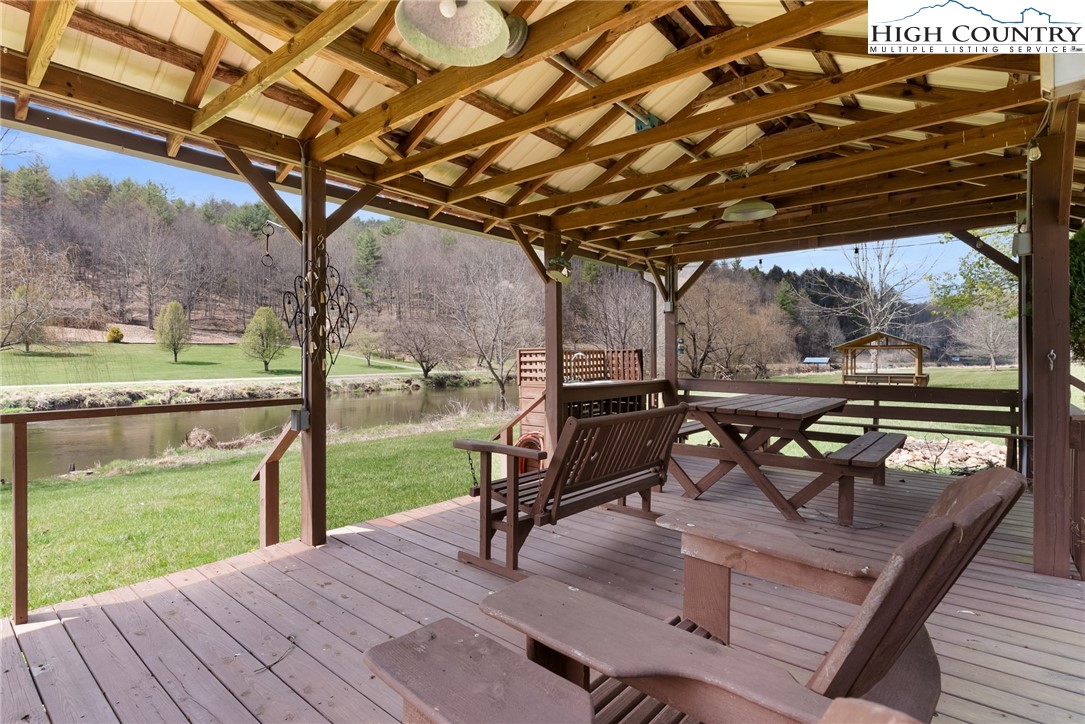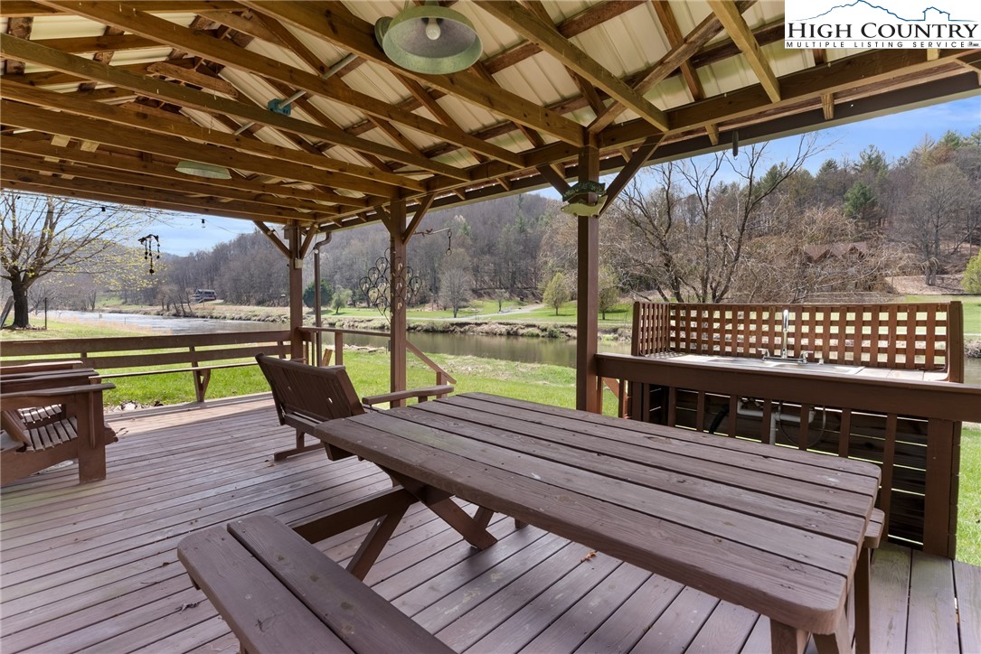 If you have been wanting a home with New River frontage, then wait no longer! We are proud to present a beautiful home located in Weaver Hollow in Piney Creek. Just a short drive to West Jefferson, Sparta, New River State Park, and Grayson Highlands. Inside you will find a welcoming den with a stone wood burning fireplace with a dining area overlooking the river. An open floor concept featuring a kitchen with an island, living room with a stone gas log fireplace completed with two spacious bedrooms and a full bath. On the lower level you will discover a large living area with a full bathroom, office area, full kitchen and dining area. A welcoming space for guests or a place for your family to enjoy. Outside there is an oversized 3 car garage (currently used as a pickleball court), a storage building, and a gazebo down next to the river. Imagine sitting on the porch overlooking the river in the morning mist with your favorite coffee or relaxing in the gazebo enjoying a beautiful day. Float down the river on a tube, kayak, or canoe. It is all here for you. Fully furnished. Relatively short distace to the Charlotte or Greensboro Airports. Call for your private tour today!