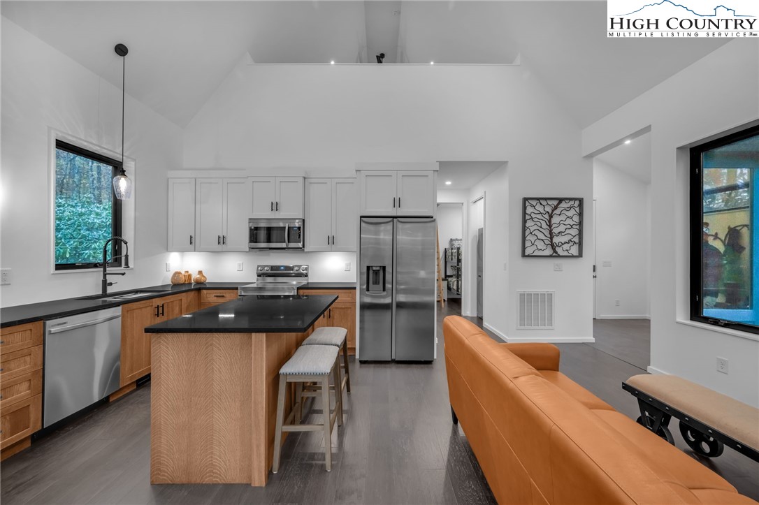 Imagine waking up nestled among the treetops—this brand-new, woodsy home on Beech Mountain captures the magic of living in a treehouse. With smart design and thoughtful touches, it’s perfect for a serene mountain escape or a year-round residence. Property Highlights Cozy yet versatile layout: At approximately 1,150 sq ft, this inviting home includes: A spacious primary bedroom * A full bathroom * A loft/office ideal for working from home or a peaceful reading nook * A clever bunk room—perfect for extra guests, kids, or a cozy hideaway *Outdoor living spaces: * A covered porch to savor morning coffee or starlit evenings * A generous deck with enough room to add a hot tub—perfect for soaking up woodland views in any season Life Among the Trees Tucked into the forest canopy, this home offers an immersive, treehouse-like experience. Mature trees cradle the structure, providing privacy, shade, and a constant connection to nature’s rhythms. The covered porch and elevated deck make it feel like a retreat in the woods, yet all the comforts of a new home await inside. Prime Location & Local Lifestyle Situated just minutes from top-tier amenities: * Beech Mountain Club: Golf, tennis, pickleball, fitness center, and a vibrant social scene (membership available) * Beech Mountain Resort: Only an 8–10 minute drive away, enjoy skiing, snowboarding, tubing in winter, plus hiking and mountain biking trails in warmer months * Trail Access: Explore over 28 miles of hiking in town limits—including scenic routes like Upper/Lower Pond Creek, Grassy Gap, and the Emerald Outback mountain bike trails * Tranquil Community: Embrace the peaceful mountain village ambiance—cool summers, crisp winters, and a life centered around the outdoors Why You’ll Love It * Intimate and efficient: Smart use of space means everything you need—no excess, just comfort. * Multi-functional rooms: The loft/office and bunk room allow flexibility—office by day, guest space by night. * Blend of indoor-outdoor living: Seamless transitions from inside to nature-rich outdoors via porch and deck. * Active, four-season lifestyle: Whether it’s skiing, biking, hiking, golf, or simply relaxing—everything’s within reach. * New construction appeal: All the ease of a recently built home—modern materials, low maintenance, and efficient systems. All furnishings shown in pictures conveys with home. This home is still waiting for final inspection for certificate of occupancy.
