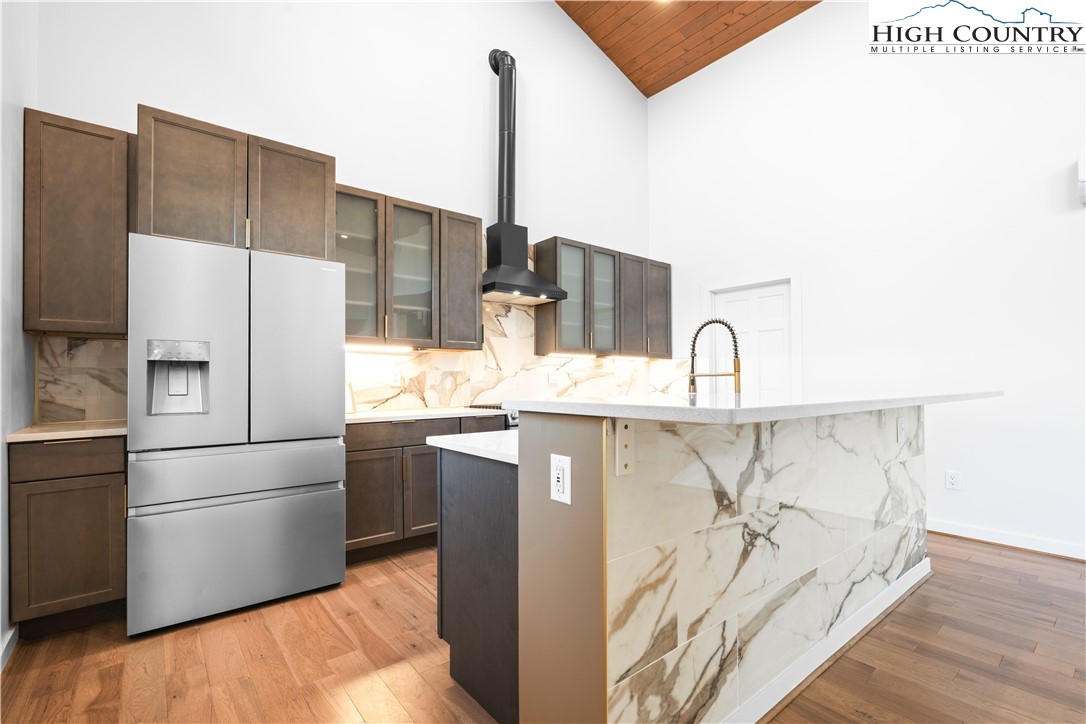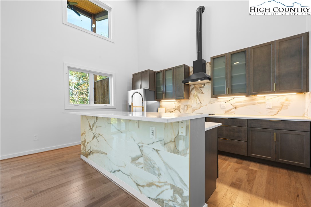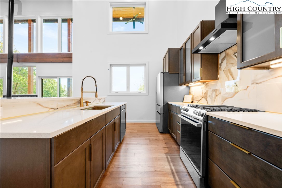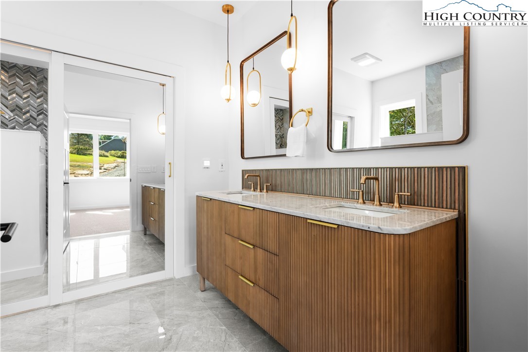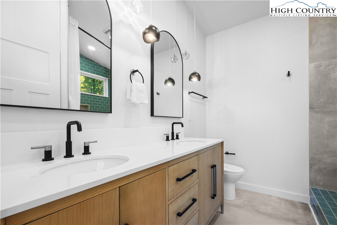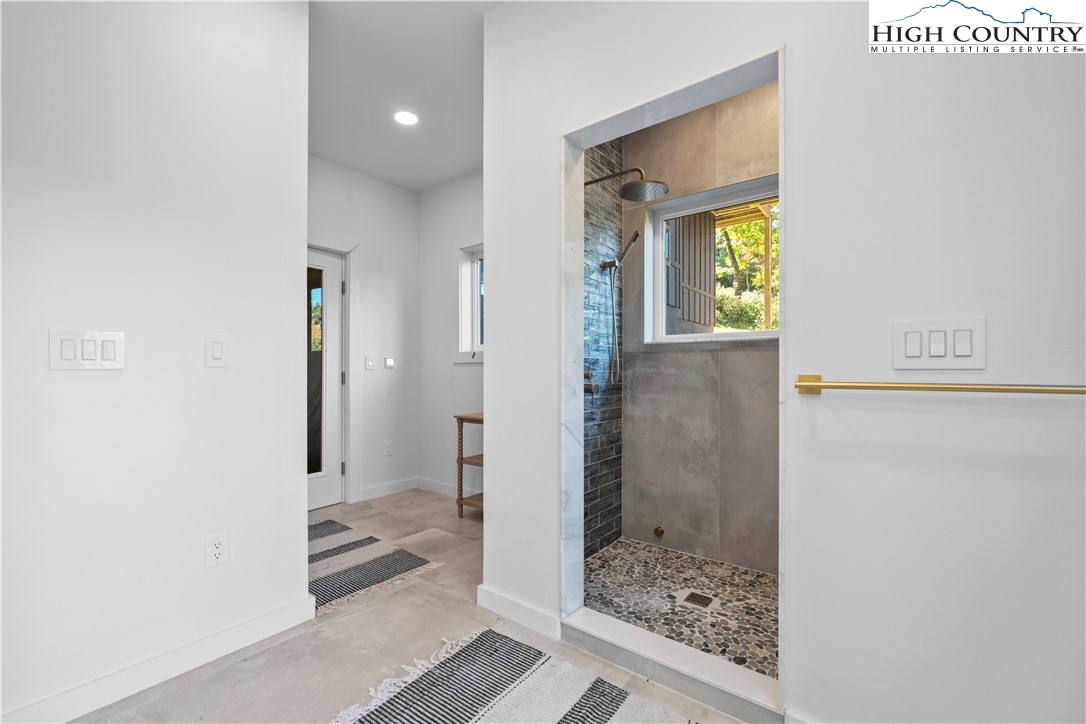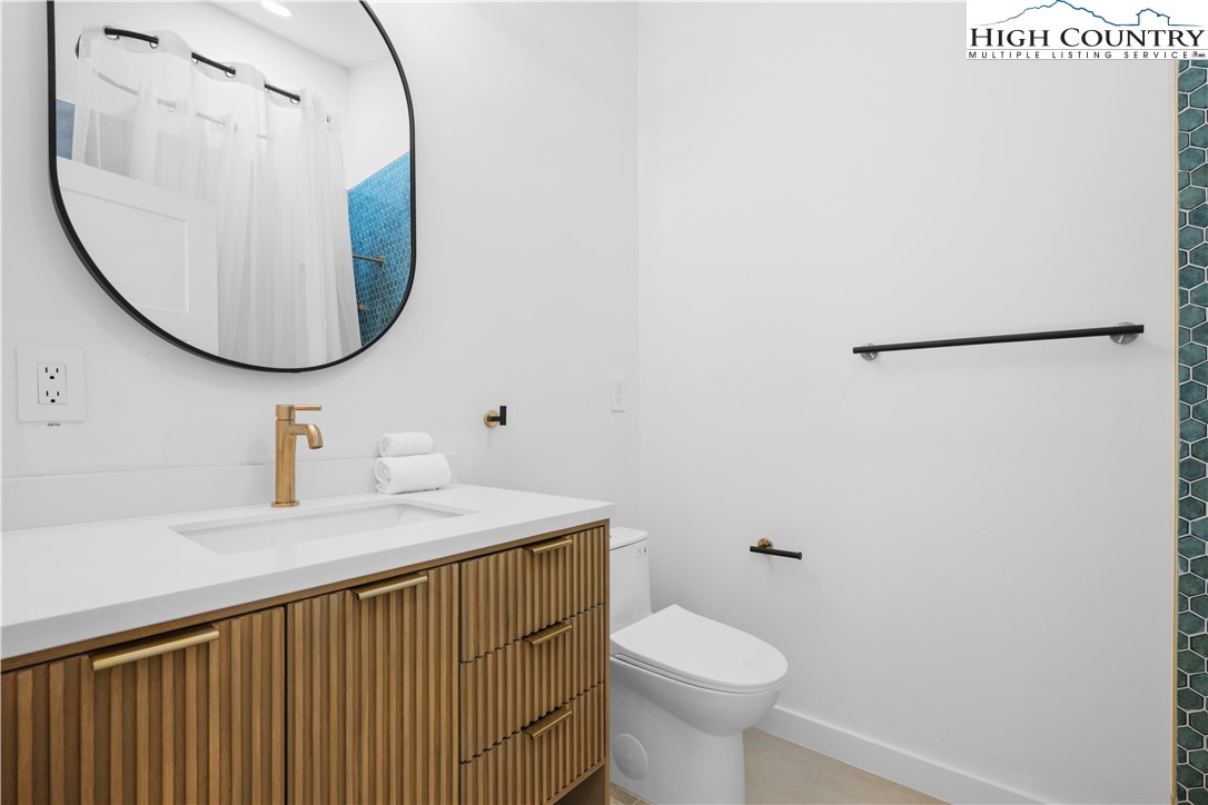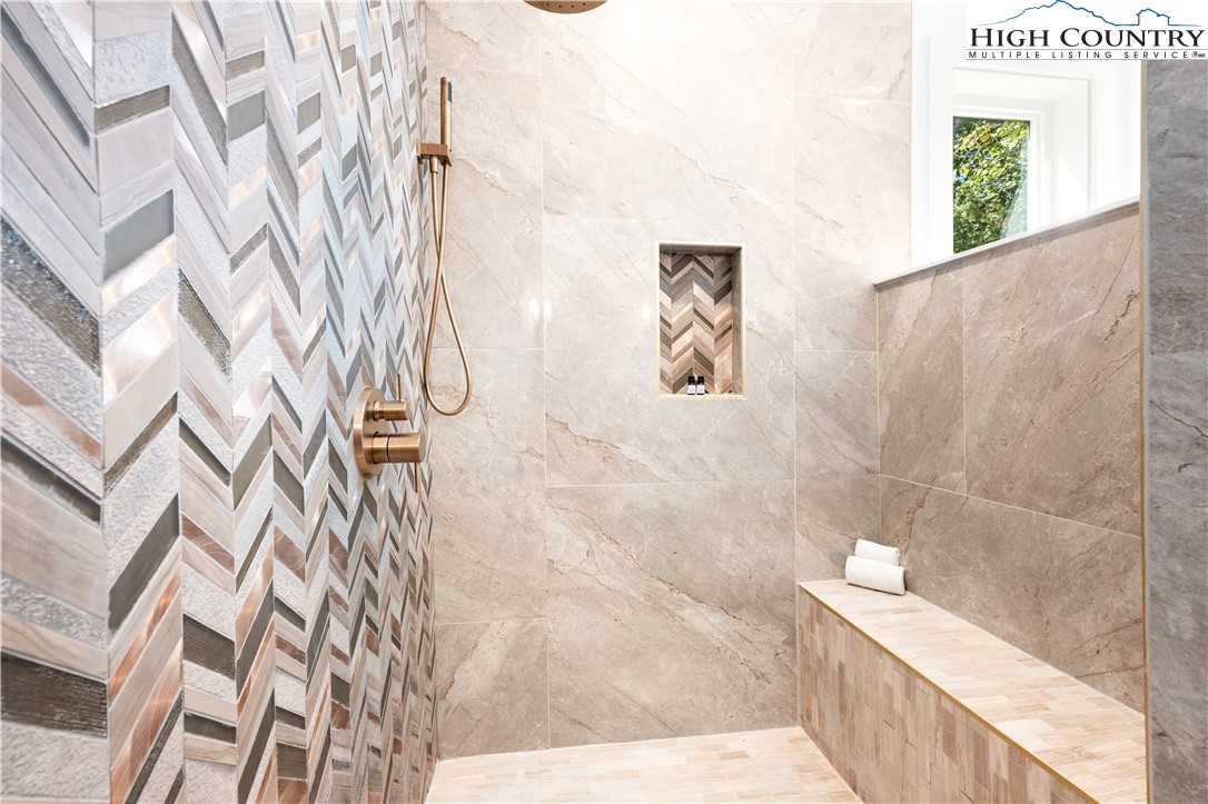 1075 Center Count Drive: Discover this tranquil NEW CONSTRUCTION Spa Home with the perfect mix of Mountain & Modern, nestled in a central & desirable location - just off the Blue Ridge Parkway, 8 min to Blowing Rock (Blowing Rock fire and schools districts!) and 12 min to Boone! Great for a full time residence, mountain vacation home, or investment property (short term rentals allowed)! This 3 Bedroom 4.5 bath home features a soaring great room with wall of windows, framing the view. Walk out to an expansive, 15x45 foot covered deck stretching 20+ feet high and allowing the entertaining space to flow indoors to out! An open floor plan brings together the kitchen, dining, and living spaces with a modern-style wood stove serving alongside the views as a focal point of the space. Additionally at the entry level you will find the Primary Suite with ensuite and dual closets as well as a 2nd Suite with bedroom and full bath- making it a great layout for one level living, with all the main features on the Walk In Level. Extra space for guests, alternate primary, or home office with a view, is a 3rd Bedroom on the second floor with ensuite. While abundant natural light, mature trees, and wood & stone elements give a back-to-nature feel, a Personal Spa with 2nd deck, sauna, steam room, changing area and bathroom turn this property into a true mountain oasis. The unfinished walkout lower level offers much potential including GREAT storage space, or the possibility to add an additional 1200+ sqft of living and or entertaining space in the future. Amenities: Large windows, vaulted ceilings, 1st floor laundry, hardwood hickory floors, open concept, spacious driveway for easily parking 3+ cars with porte cochere, new independent well and septic, gas stove, dryer and instant hot water, high speed internet. This is a sought after central High Country location in Crestview Estates with a low ANNUAL POA of only $300 and short-term rentals permitted. Home was built under an owner builder exemption, owner/builder is now a licensed NCGC.