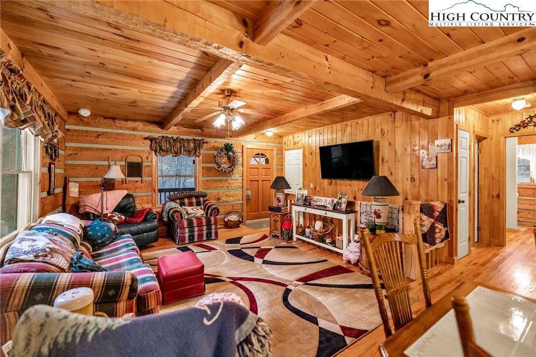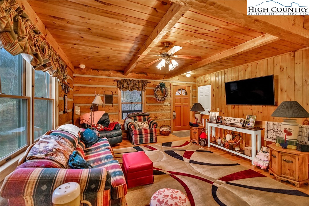 Tucked away in a peaceful log cabin community just minutes from the charm of West Jefferson, this inviting three-bedroom, two-bath, furnished log cabin offers the perfect blend of rustic comfort and mountain serenity. Set along a quiet gravel road, the home features a lovely yard ideal for relaxing, gardening, or gathering with friends. The home is complemented by wrap-around decks that invite you to enjoy the fresh mountain air and scenic surroundings from every angle. A basement garage adds convenient parking and extra storage, perfect for outdoor gear and workshop space. Surrounded by beautiful mountain scenery, this cabin is ideally located for outdoor enthusiasts, with nearby opportunities for hiking, canoeing, and kayaking. When you’re ready to explore town, West Jefferson’s vibrant arts scene, unique shops, and local dining are just a short drive away—making this property an ideal full-time residence or mountain getaway.