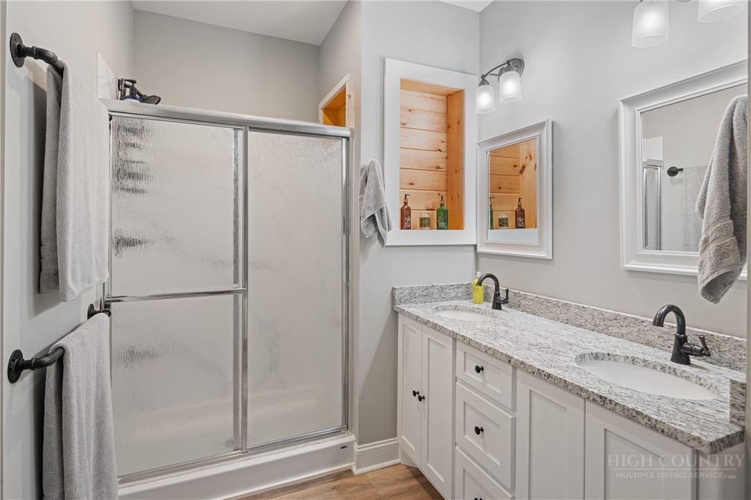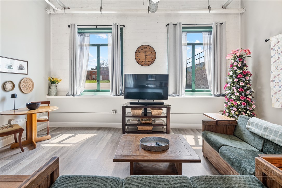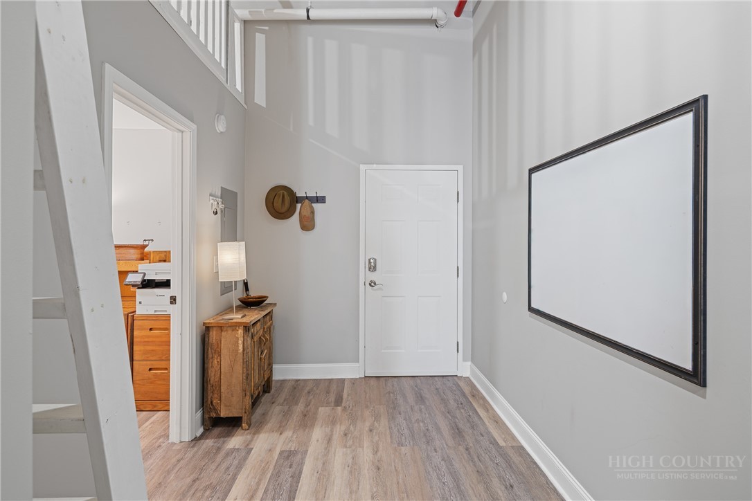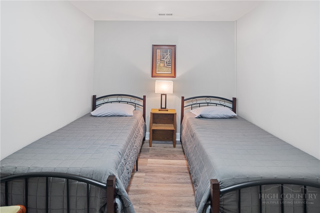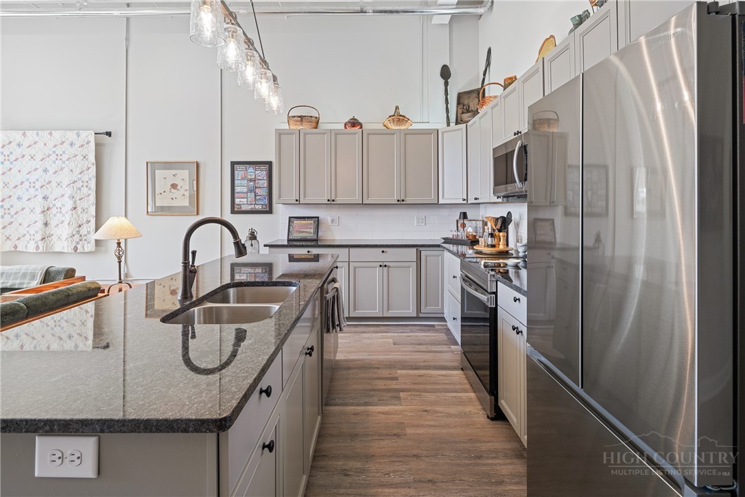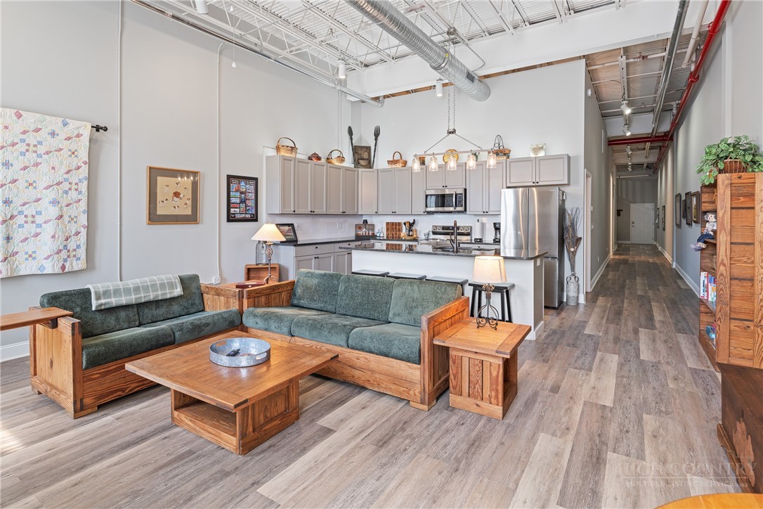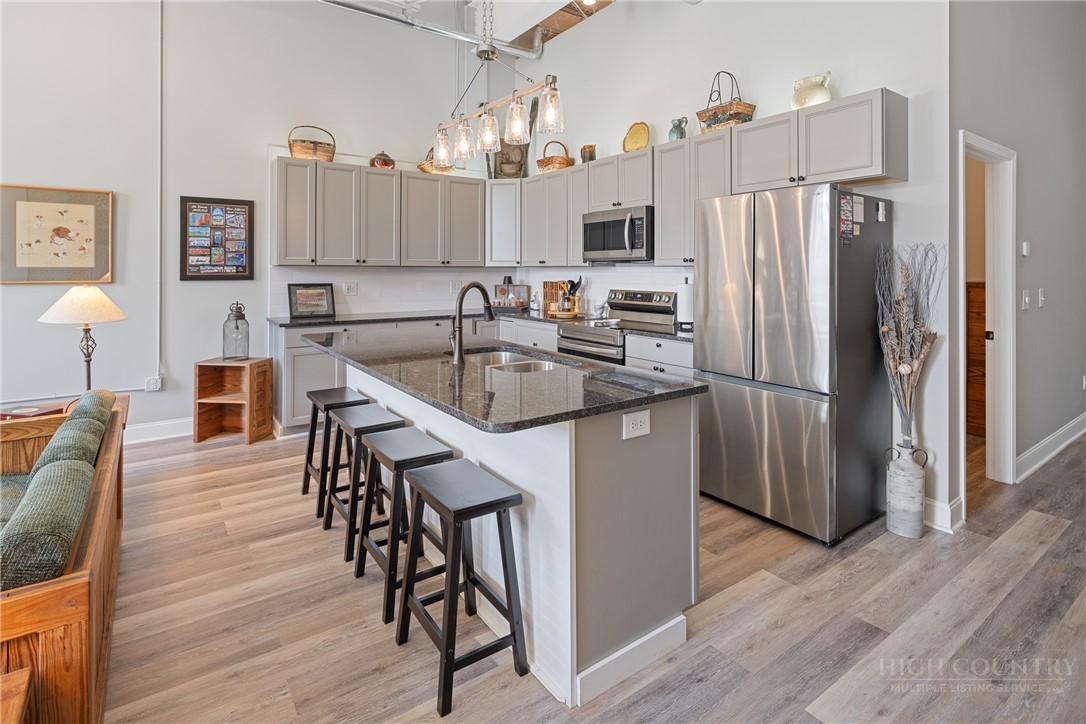 EXPERIENCE THE CONVENIENCE OF DOWNTON LIVING - Escape the heat this summer and enjoy the best of mountain living in the heart of Downtown West Jefferson. This easily accessible first floor condo is the perfect location for a primary residence or vacation home. Completed in 2023, this unit is in impeccable condition! ONE LEVEL LIVING - So spacious with soaring ceilings and an open floor plan. Everyone will feel right at home in this 3 bedroom, 2 bathroom condo. Kitchen features granite countertops, large center island with seating, lots of cabinet storage, and stainless appliances. The thoughtfully designed Primary Bedroom Suite features two walk-in closets and ensuite bathroom with soaking tub, walk-in shower and double vanity. Continuous Luxury Vinyl Plank Flooring throughout. Large laundry closet with additional storage. Loft storage as well. With no yard maintenance to worry about, spend all your leisure time exploring historic downtown West Jefferson with quaint local shops, art galleries, fine dining, coffee shops, breweries, winery, parks, farmer’s market, library, cheese factory, and movie theater. Outdoor enthusiast? Kayak/fish/float the New River, hike local trails, play disc golf at Ashe Park, then store your gear in the lockable storage unit just across the hall. Pet friendly w/fenced dog area. Grilling Area. Two assigned parking spaces + guest parking. Make this your weekend getaway! Conveniently located only 1.5 hours from Winston, 2 hours from Greensboro & Charlotte, and 3 hours from Raleigh.