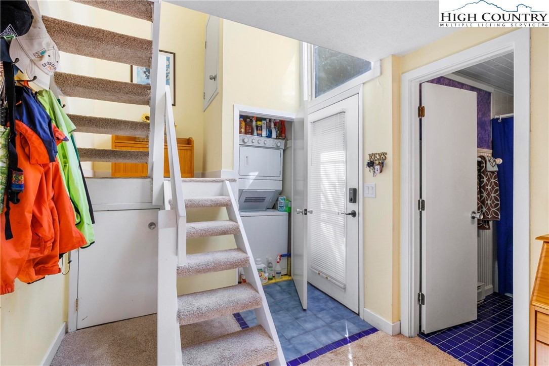 Bright and inviting 2-bedroom, 2-bath condo with a seasonal view and a $2,000 seller credit at closing! This top-floor, two-level unit features an open layout with vaulted ceilings, abundant natural light, and a spacious deck. Main level has the great room, kitchen, laundry, bedroom and full bath. Upper level has a sizable bedroom and full bath. Attractive stone wood burning fireplace. Excellent CENTRAL LOCATION less than a mile to the Beech Mountain Resort as well as the Beech Mountain Club tennis, pool & pickleball campus. Convenient MOUNTAIN GETAWAY to hike, bike and ski! Would be an outstanding investment opportunity. Comes furnished and ready to occupy. New metal roof in 2022. Small association only 14 units, low monthly dues and dues cover water, sewer and trash.