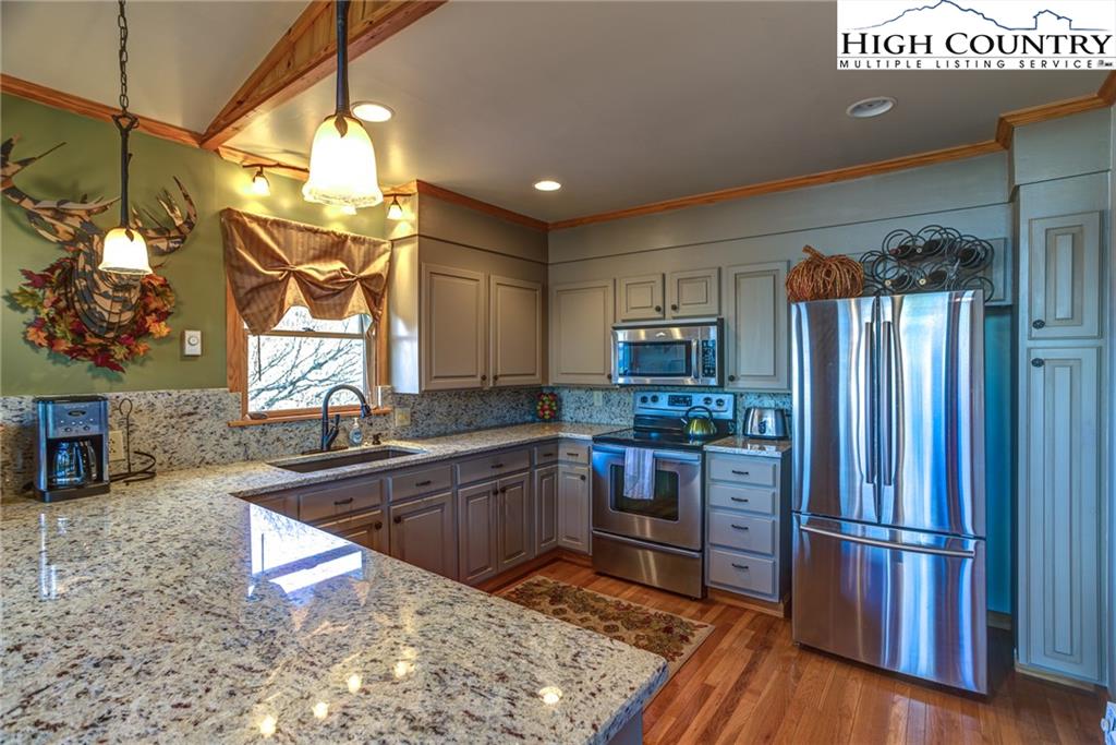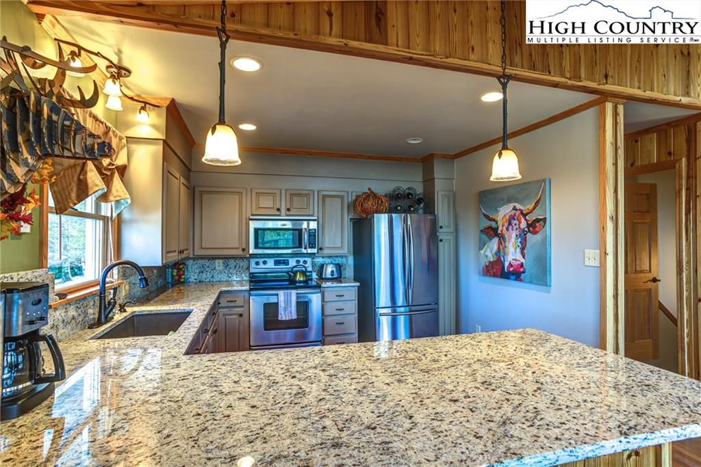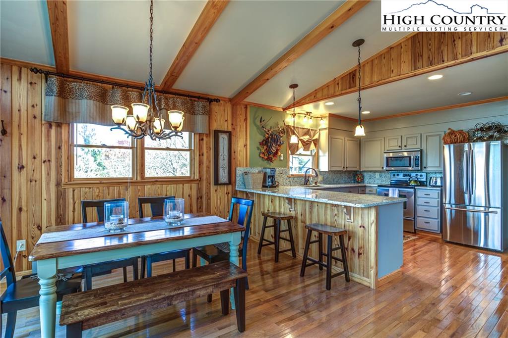 You will be wowed by multi-layered views from this updated mountain home located between Boone and Blowing Rock. Located in the Summit Park community which is just minutes from the Blue Ridge Parkway, Boone Golf Course, downtown Blowing Rock and Appalachian State. Enjoy year round views from the great room and kitchen and lower level game room/den. Great outdoor spaces include large decks and patios along with a custom stone fire pit. The kitchen has granite counters, stainless steel appliances and a nice eat-in bar area. Cathedral ceilings with rustic beams highlight the great room. Three bedrooms and two renovated baths complete the first floor. On the lower level you'll find a wonderful family room with built-in wet bar, entertainment center and full bath. House was renovated in 2008 and is in move in condition. Easy access with new gravel driveway. Whether full time, part time or for investment, this home is a winner! Low maintenance siding, roof and yard. Furnishings negotiable.