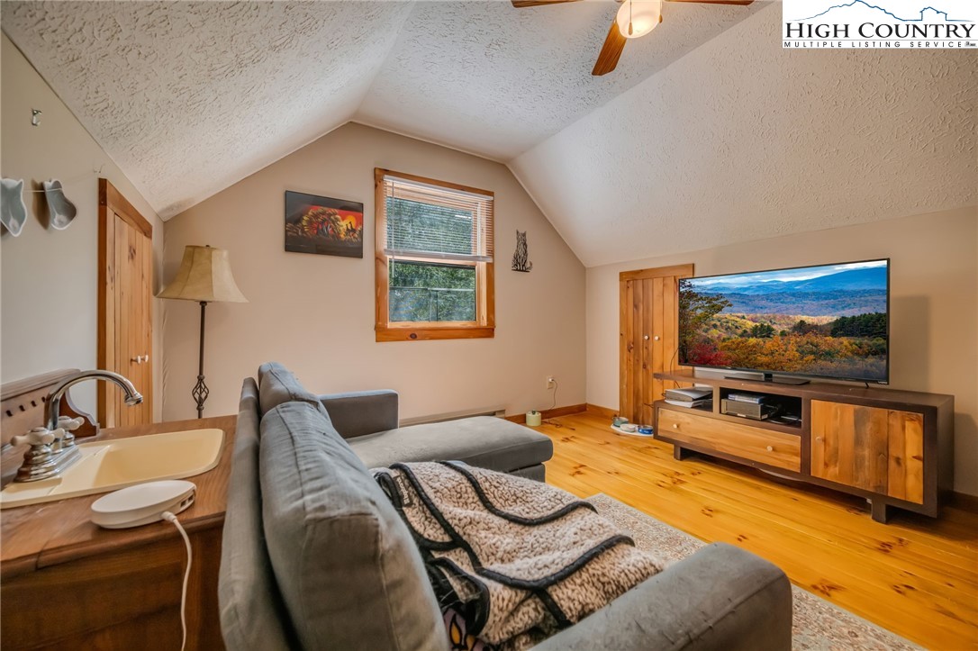 This charming 2-bedroom, 2.5-bath mountain cottage offers cozy living with beautiful mountain and pastoral views. Enjoy the warmth of a wood-burning fireplace and relax on the large back deck overlooking the peaceful landscape. The home features convenient main-level living, with a loft and half bath upstairs—perfect for a reading nook, game room, or office. Ideal for professionals working in and around the Boone area. Priced to sell! Some of the pictures have virtual staging.
