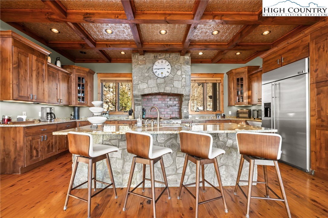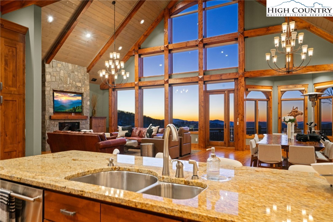 Welcome HOME to Backyard Buffas! Be prepared to experience the pinnacle of Beech Mountain living at this incredible CUSTOM BUILT LUXURY ESTATE! Nestled on a rare 1.08-acre lot, this architectural masterpiece offers a lifestyle defined by privacy and panoramic grandeur. While true custom estates of this caliber are a rare find, this property proves that PERFECTION is, indeed, attainable. Designed to frame the High Country’s expansive long range views & unveil the vibrant sunsets, the residence allows you to witness nature’s nightly show from every room and from the expansive, inviting covered decks. A paved circular driveway provides a grand sense of arrival, leading you into a 4,900-square-foot sanctuary spanning across two levels. Built as a forever home, the owners created a unique, sophisticated balance between rustic charm and modern luxury. The interior design was created to host many family & friends, featuring 5 spacious bedroom en-suites that offer ultimate privacy for your guests. In the heart of the home, you will enjoy the warmth of a stone gas log fireplace, soaring T&G wood ceilings and a wall of windows that flood the living spaces with natural light. The gourmet kitchen boasts top-of-the-line appliances, custom cabinetry, granite counters, wet bar and impressive copper & wood beam ceilings, making it truly unique! Also on the main level is the primary bedroom suite complete with a gas fireplace & stunning panoramic views! A private office and a guest suite complete this level. Entertainment is effortless on the lower level, featuring a secondary living area that opens directly to the outdoors. Soak in the mountain air from the rear deck’s hot tub or host guests in the 3 nicely appointed bedroom en-suites. With a full laundry room and plenty of space to spread out, this floor is as functional as it is luxurious. Additional features of the home include a private dog park for your fur babies, an outdoor shower, 2 car garage, central A/C and heat, WiFi-controlled thermostats, a generator and an encapsulated crawlspace. Outdoor enthusiasts will enjoy another unique feature, a custom-built treehouse offering the perfect adventure for the young and the young at heart. This property is being sold fully furnished (w/ minor exclusions) & is Beech Mountain Club eligible, granting you member-only access to the premier golf course, tennis facilities, fitness room, outdoor heated pool and several dining options. Seize the opportunity to make this stunning residence your own and immerse yourself in the unparalleled lifestyle it has to offer. With its exquisite design and exceptional features, this home promises not just comfort but also a vibrant way of life that you have been longing for!