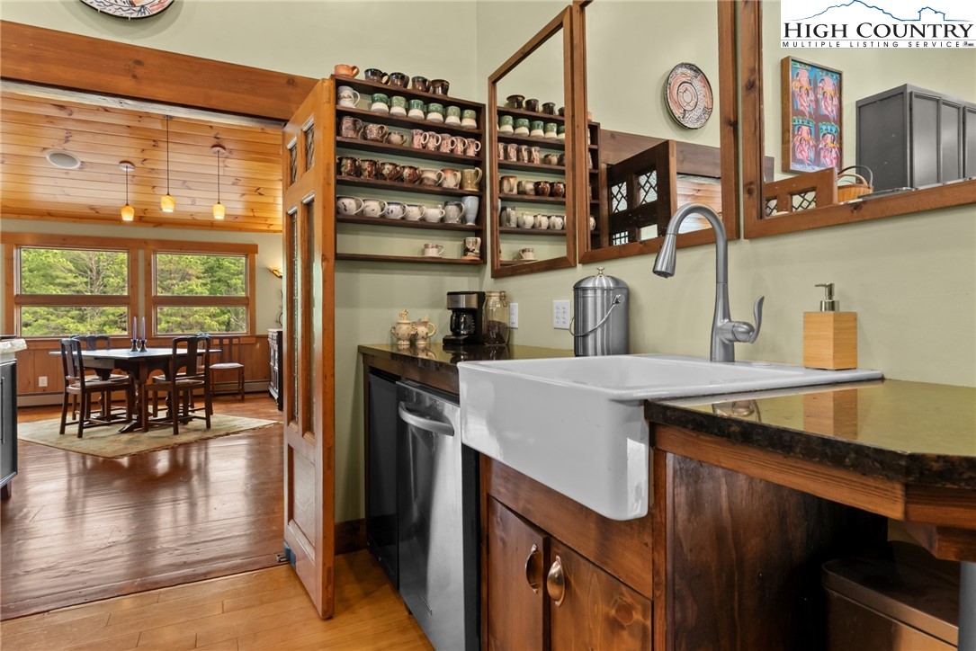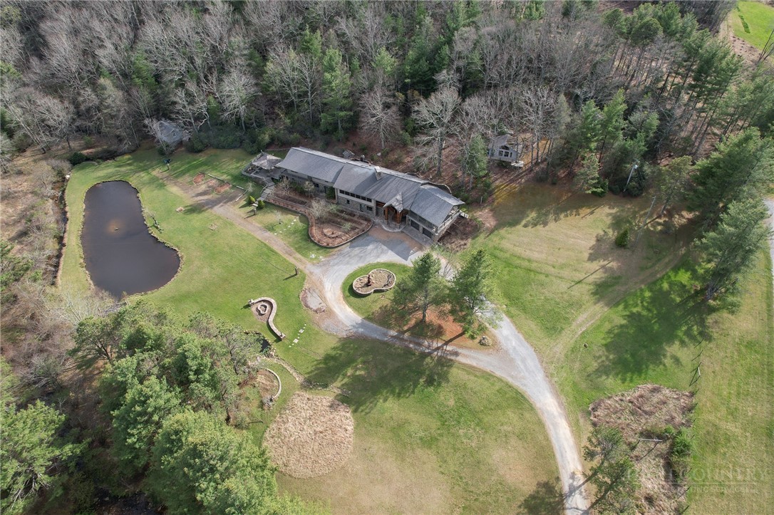 Mountain Hearth, a truly unique mountain retreat, offers an exceptional blend of lifestyle, income potential, and versatility. Once operated as a successful bed and breakfast, this thoughtfully renovated property has been transformed into a private residence while still retaining the infrastructure to easily transition back to hospitality or a variety of commercial uses. The main lodge is warm and inviting, featuring wood floors and a spacious den with beautiful built-in bookshelves. The dining and great room are anchored by a double-sided stacked stone wood-burning fireplace, creating a natural gathering space. The upper floor of the lodge offers 4 bedrooms and 5.5 baths, along with a pantry and laundry for everyday convenience. A retained commercial kitchen—complete with gas and electric ranges, dual dishwashers, and triple sinks—provides the capability to serve guests, host events, or support a wide range of business ventures. A charming self-serve kitchen adds even more flexibility for gatherings and guest use. The lower level expands the possibilities with two separate apartments—one featuring 2 bedrooms and 1 bath, and living area, and the other offering 2 bedrooms, 1 bath, a full kitchen, and living area—ideal for guests, staff, or rental income. Additional features include additional laundry on the lower level, ample storage, and an oversized two-car garage. Outdoor living is where this property truly shines. A large, covered porch overlooks a protected view of Bullhead Mountain. The grounds are thoughtfully designed with a gazebo, kitchen garden area, blueberry bushes, apple trees, an amphibian pond, a creek and pond to enjoy fishing or just listening to the water and relaxing. Enjoy evenings around the firepit or entertain with the outdoor built-in smoker, fireplace, wood-fired pizza oven, and grill. Three cabins provide additional accommodation. The “Fishing Cabin” features a gas fireplace, garden tub, private bath, and unique stone accents sourced from the creek, along with a mini fridge. A second cabin also includes a mini fridge, while the third cabin offers additional guest space, each cabin with its own bath. Additional highlights include a horse barn, a striking sculpture by an Asheville artist, and thoughtful drainage features such as oversized gutters directing water to natural rock elements. Whether envisioned as a boutique bed and breakfast, Airbnb compound, wellness or corporate retreat, spa, equestrian property, or private estate, this one-of-a-kind offering invites you to create something truly special in the Blue Ridge Mountains. The retreat is located just off the Blue Ridge Parkway and near Stone Mountain State Park, the New River, and the Mountains to Sea Trail, with easy access to Sparta, Elkin, and beyond. All within an approximately 90 minute drive to the Charlotte or Greensboro airports. Schedule your personal showing today!