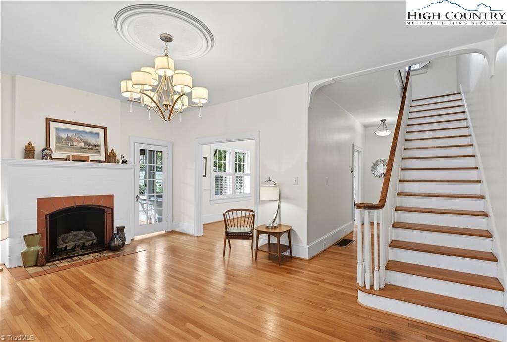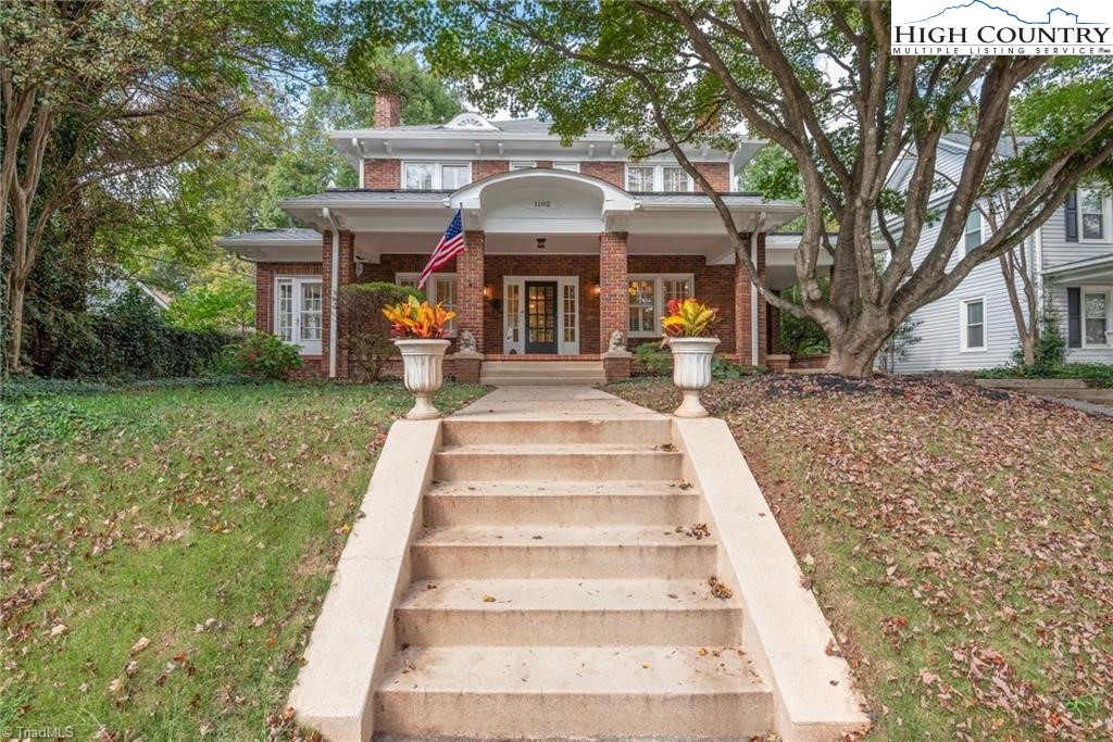 Stately brick beauty on iconic S Hawthorne in historic Ardmore—a sidewalk, front-porch neighborhood minutes to both major hospitals, Hanes Park, Cloverdale/Thruway shopping & dining, and Downtown W-S. A wide, welcoming wrap porch sets the tone; inside, light-filled rooms showcase hardwoods, tall ceilings, French doors, fireplaces, and classic millwork. The main level offers an expansive flex room beside a full bath— for a main-level primary suite, studio, or playroom. Upstairs you’ll find four bedrooms and a full bath. Sunny kitchen with abundant cabinetry opens toward a new back deck and a deep drive with porte-cochère. Gracious corner-to-corner curb appeal, charming architectural details, and room to tailor spaces to your life. If you’ve been waiting for a character home in a true “in-town” location, this is the one.