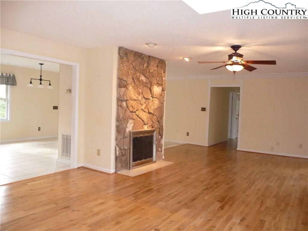 Large 5 bedroom house with covered deck and long range mountain views Purchase comes with additional 3.22 acre parcel that allows owner to control the mountain views. Open floor plan in the living room and separate kitchen side of the house would make for great entertaining. Wood Burning fireplace adds to the ambiance on snowy winter days.
