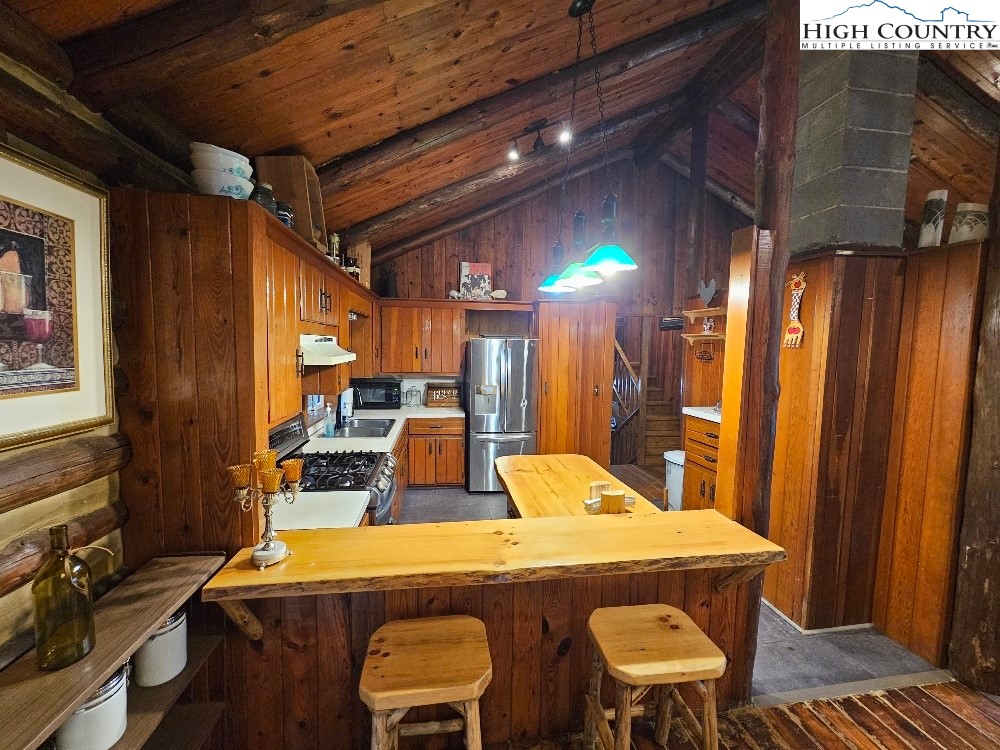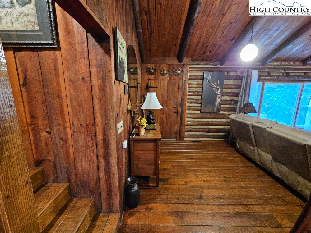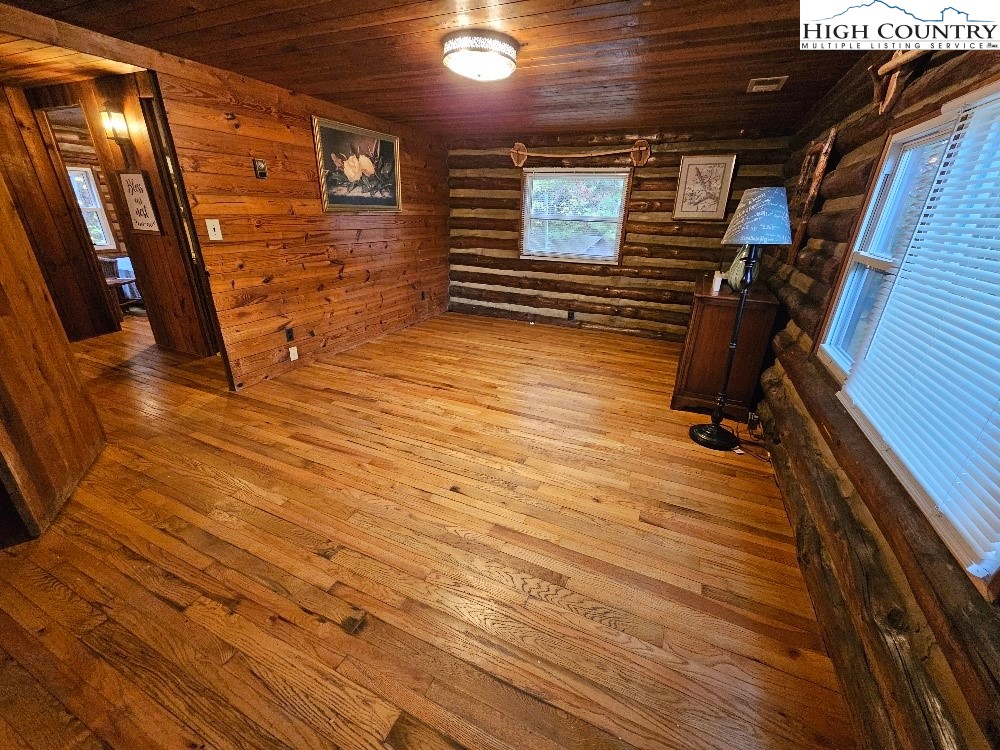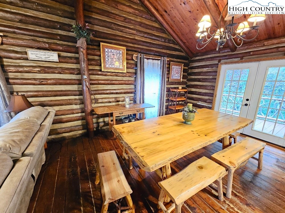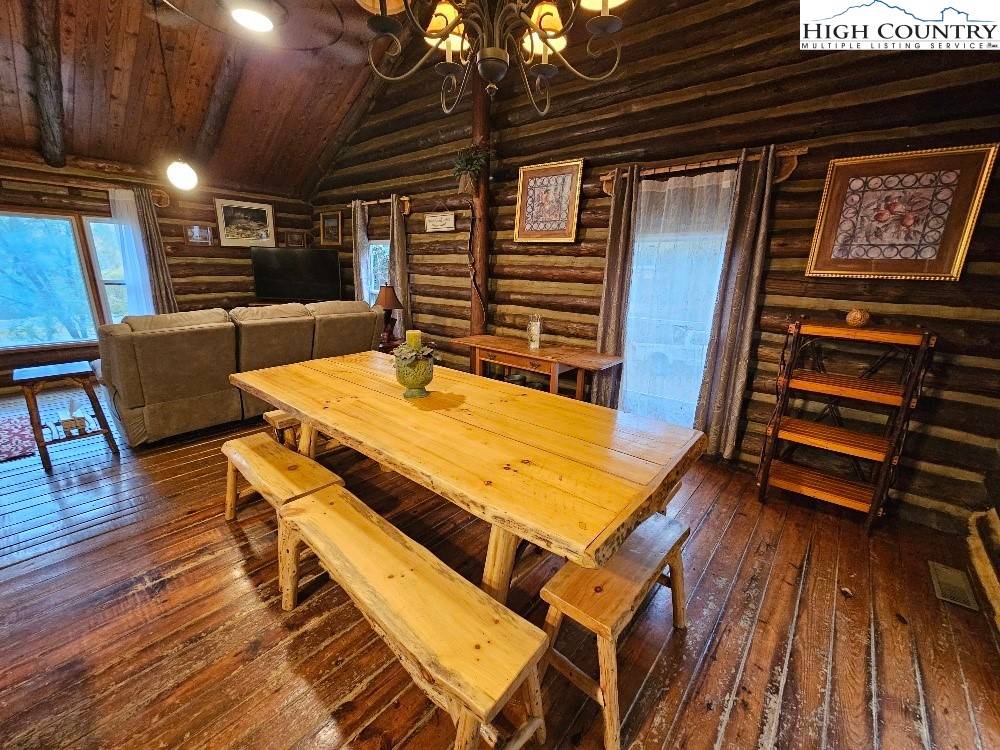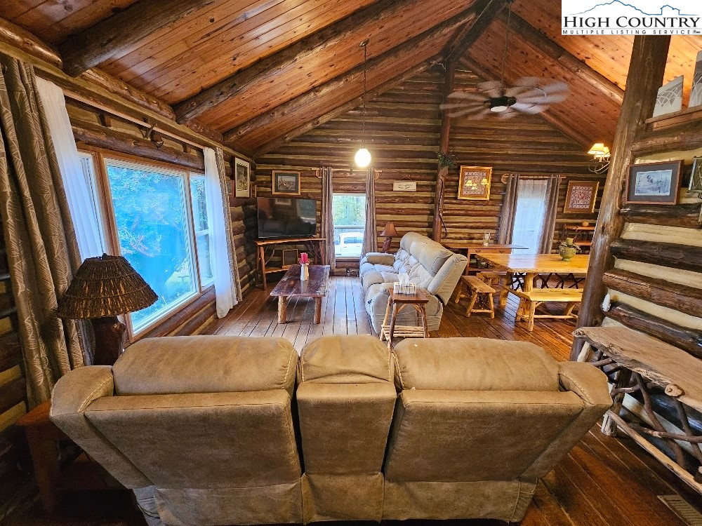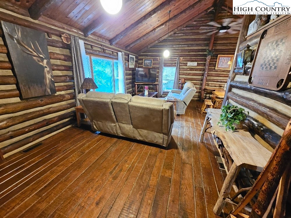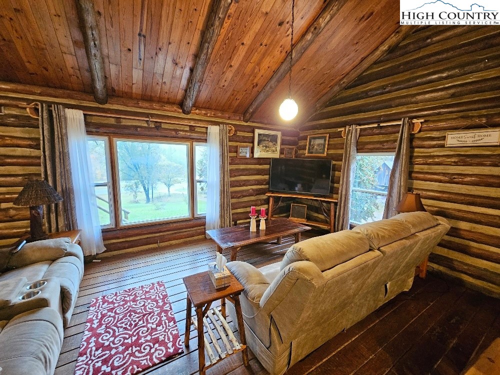 Discover mountain living at its finest in this beautifully furnished 3-bedroom, 2.5-bath log cabin situated on 5 acres with mountain views. This cozy retreat features a spacious great room with a stone fireplace and wood stove insert, custom hardwood floors, and an inviting living area that flows into a fully equipped kitchen with a gas range, stainless steel refrigerator, and bar seating. Enjoy meals around the custom-made dining table, ideal for gatherings. The primary suite offers comfort and privacy, complemented by two additional bedrooms and a heat pump for year-round comfort. Outside, you’ll find a detached 2-car carport, a storage shed with a lean-to, and plenty of space to enjoy the serene natural surroundings. Conveniently located just a short drive to Boone, Appalachian State University, the Blue Ridge Parkway, and endless outdoor adventures including skiing, hiking, and fishing. Call Today!