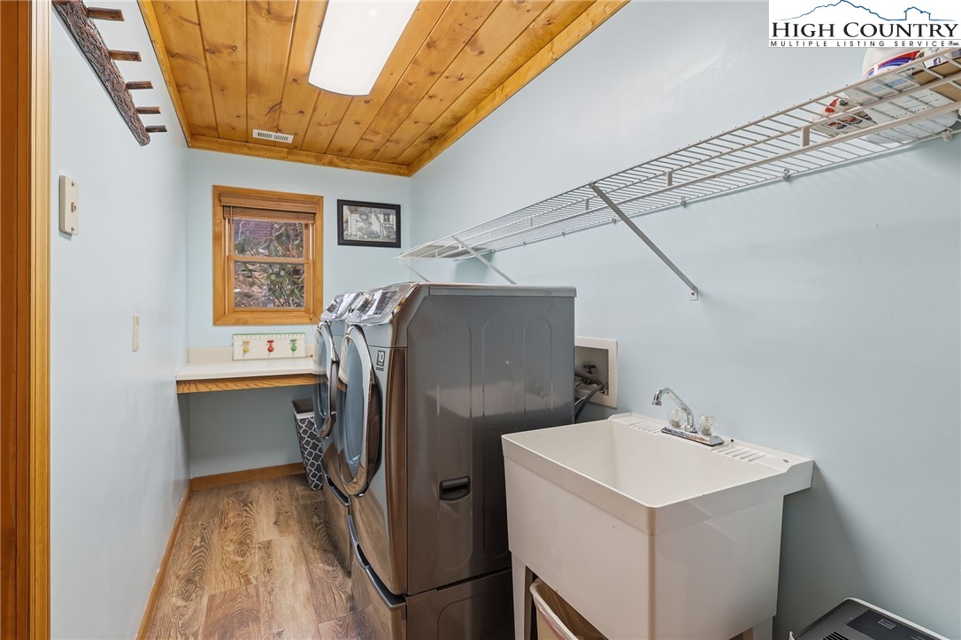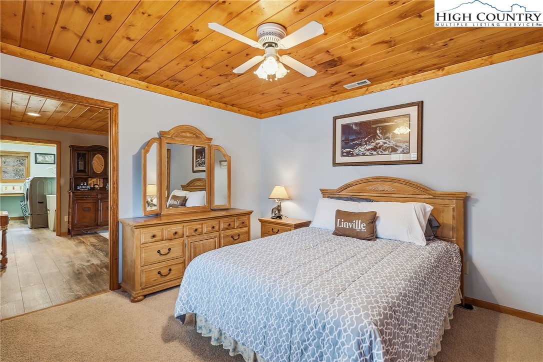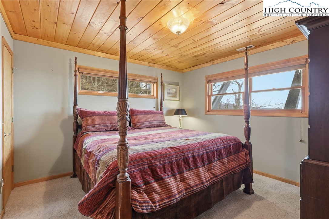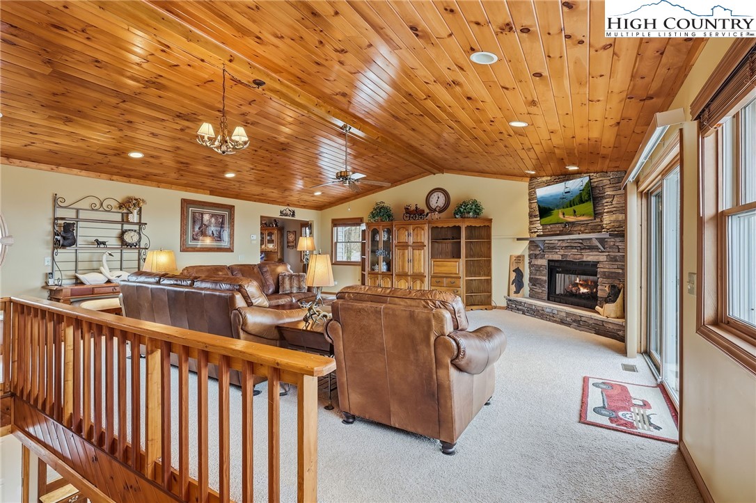 This property has it all! GREAT LOCATION, SWEEPING LONG RANGE VIEWS, GARAGE and CLUB MEMBERSHIP. Located in the sought-after North Pinnacle area, this spacious mountain retreat features 4 bedrooms and 3.5 bathrooms, along with LONG RANGE VIEWS and a thoughtfully designed layout. Highlights include an extensive great room, a huge well-appointed kitchen, an oversized garage, covered and open decks, tongue-and-groove ceilings, and even an ELEVATOR. On the main level, you’ll find a bright, open great room a half bath, and a generously sized kitchen featuring ample cabinetry, skylights, expansive counter space and a pantry. The primary suite on this level boasts stunning views and full bath. Downstairs offers three additional bedrooms, two full baths, a laundry room with a utility sink, den area, and direct access to the spacious garage—complete with an extra refrigerator and freezer. Ideally located just minutes from the Ski Resort, Beech Mountain Club campuses, and downtown Beech Mountain. Whether you’re seeking a mountain getaway or an investment property, this furnished home is move-in ready. A current Beech Mountain Club membership is available, which has exceptional amenities, including an 18-hole golf course, tennis courts, numerous pickleball courts, a 24-hour fitness center, day camps, an outdoor pool, and a slopeside clubhouse. Property is not a rental but would be an ideal investment given all it offers.