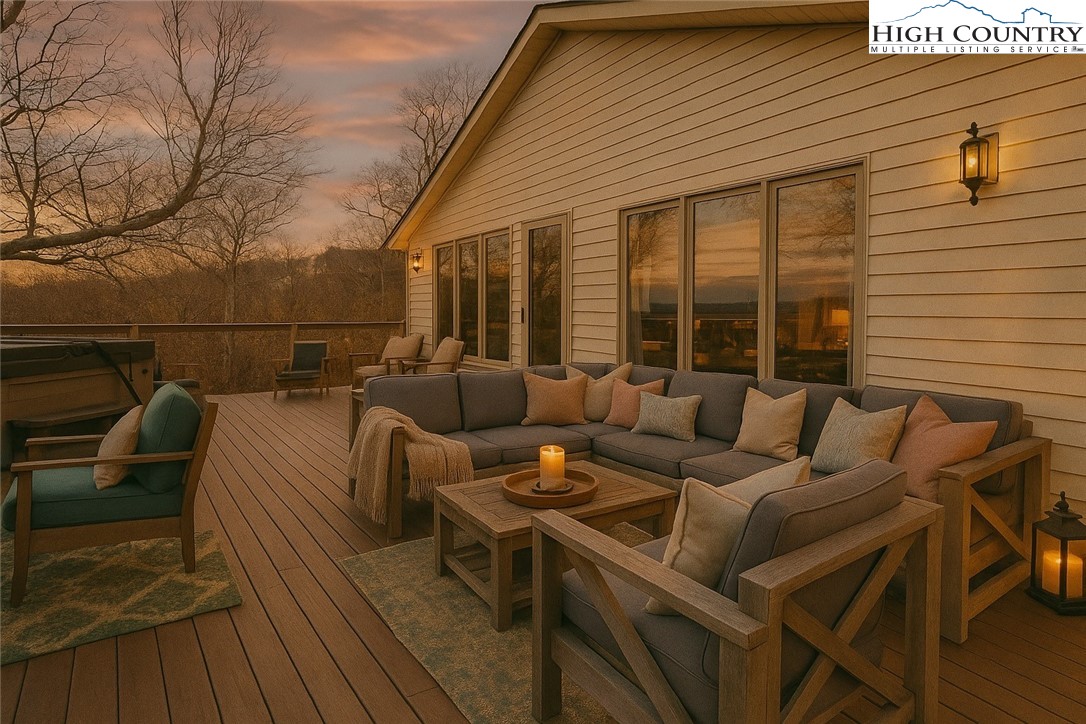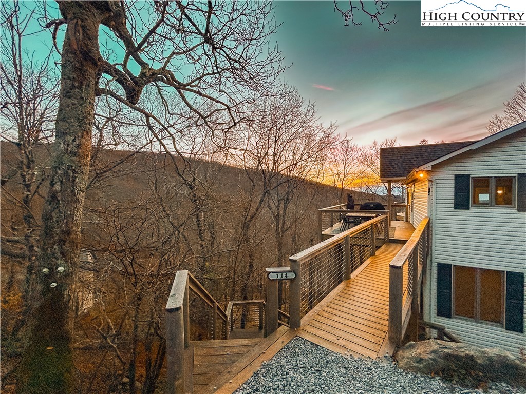 Welcome to 114 Spruce Hollow Road, a stunning mountain retreat nestled high atop Beech Mountain where long-range views, refined updates, and exceptional rental income come together in perfect harmony. Thoughtfully renovated and impeccably furnished, this five-bedroom, four-bathroom home offers an inviting blend of modern comfort and High Country charm, making it an ideal full-time residence, second home, or turnkey short-term rental investment. Perched above the treetops with long-range layered views, the home is designed to maximize every moment of mountain living. Three expansive decks provide incredible outdoor living space, each offering its own vantage point for stunning sunrises, seasonal foliage, and peaceful star-filled nights. Enjoy gathering around the firepit table, relaxing in the brand-new WiFi-enabled hot tub (installed February 2025), or simply enjoying the crisp Beech Mountain air from the comfort of thoughtfully arranged seating areas. Inside, the home features a warm and welcoming atmosphere with bright natural light, updated furnishings, and stylish décor throughout. The living room is both cozy and spacious, perfectly arranged for family gatherings, movie nights, or quiet mornings with a cup of coffee. New mattresses and furniture added in June 2023 ensure a comfortable and contemporary experience for every guest. With accommodations for up to fourteen, the layout is ideal for large families, group getaways, or maximizing short-term rental income. The location is truly unbeatable, just four minutes (1.2 miles) from Beech Mountain Ski Resort and only a few minutes more to some of the area’s most beloved hiking trails. Local breweries, wineries, restaurants, and year-round attractions are all within easy reach, offering endless options for adventure and entertainment. Already operating as a successful short-term rental, the property provides immediate income potential. With its combination of luxury updates, proven rental history, incredible views, and close proximity to Beech Mountain’s best amenities, 114 Spruce Hollow Road is the perfect mountain getaway, fully furnished, beautifully maintained, and completely ready for its next owner. Whether you're looking for a peaceful personal retreat or a lucrative addition to your investment portfolio, this exceptional property delivers the perfect Beech Mountain experience.