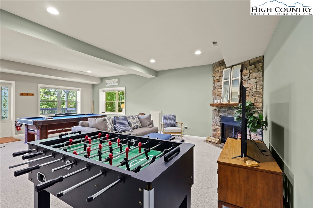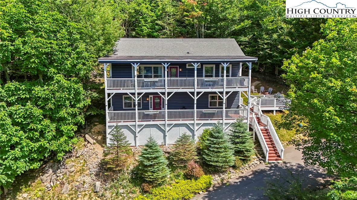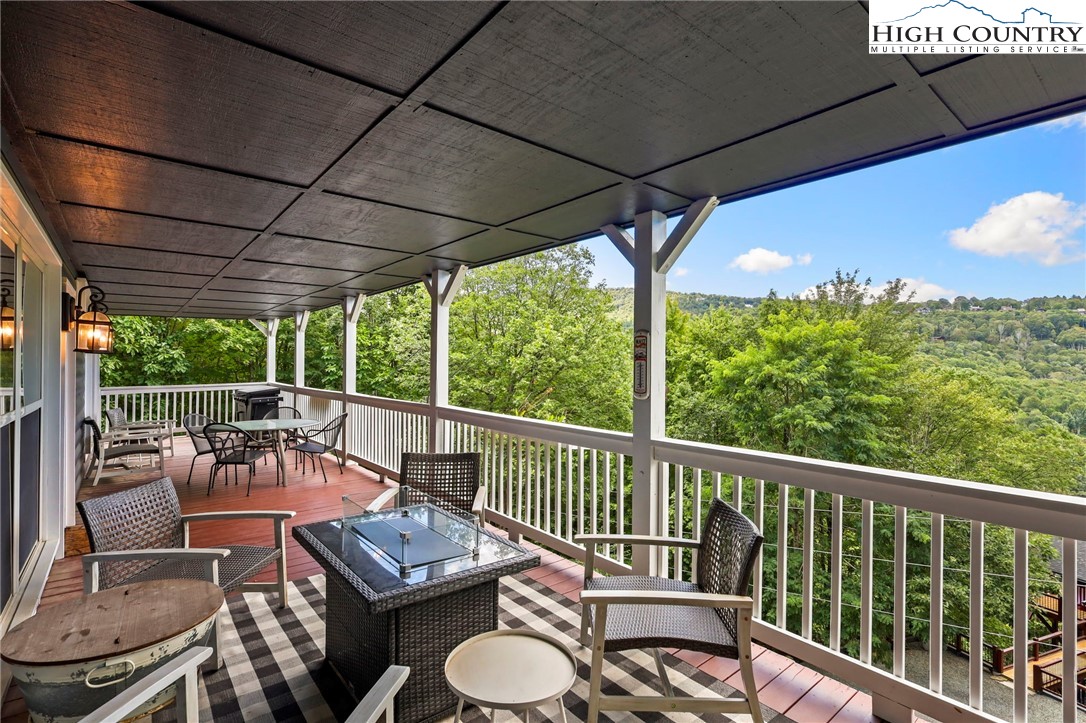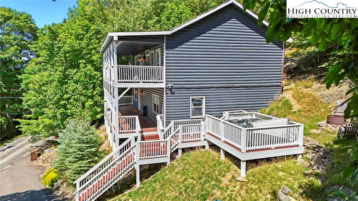 Welcome to this inviting mountain home on Beech Mountain featuring 3 bedrooms, 3 full bathrooms, and year-round long-range layered views from two covered decks. The main level includes tongue-and-groove wood ceilings, an open floor plan with a living area, dining space, and kitchen with center island. The living room has a gas log fireplace, and the kitchen is equipped with updated appliances and cabinetry. This level also offers a guest bedroom, full bath, and a primary suite. The lower level provides a second living area with another gas log fireplace, game/recreation space, and outdoor access. A third bedroom, full bath, laundry area, and bonus space complete the interior. Exterior features include a hot tub, firepit, and outdoor entertainment area. The property is located on a quiet street in a natural setting. Beech Mountain Club membership (if purchased) provides access to tennis, pickleball, golf, fitness, dining, swimming pool, and seasonal programs. The Beech Mountain area offers skiing, mountain biking, hiking, fishing, and year-round community events.