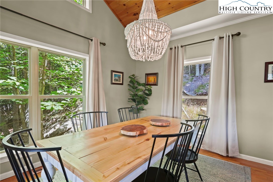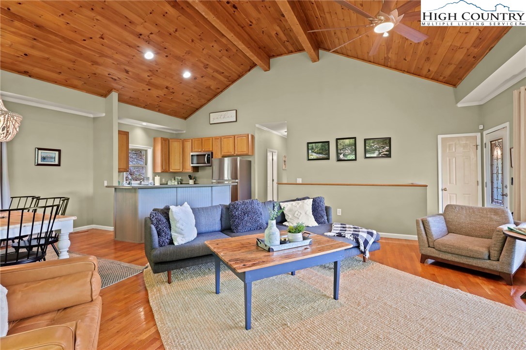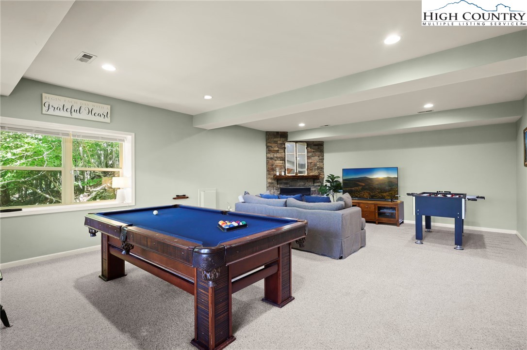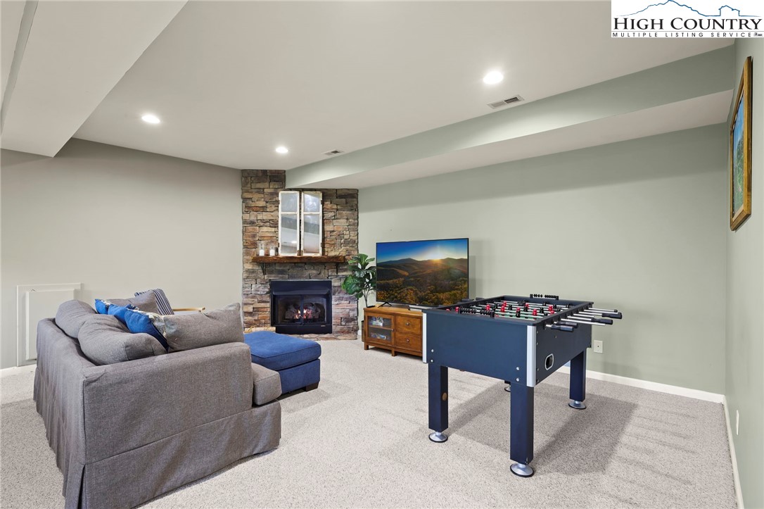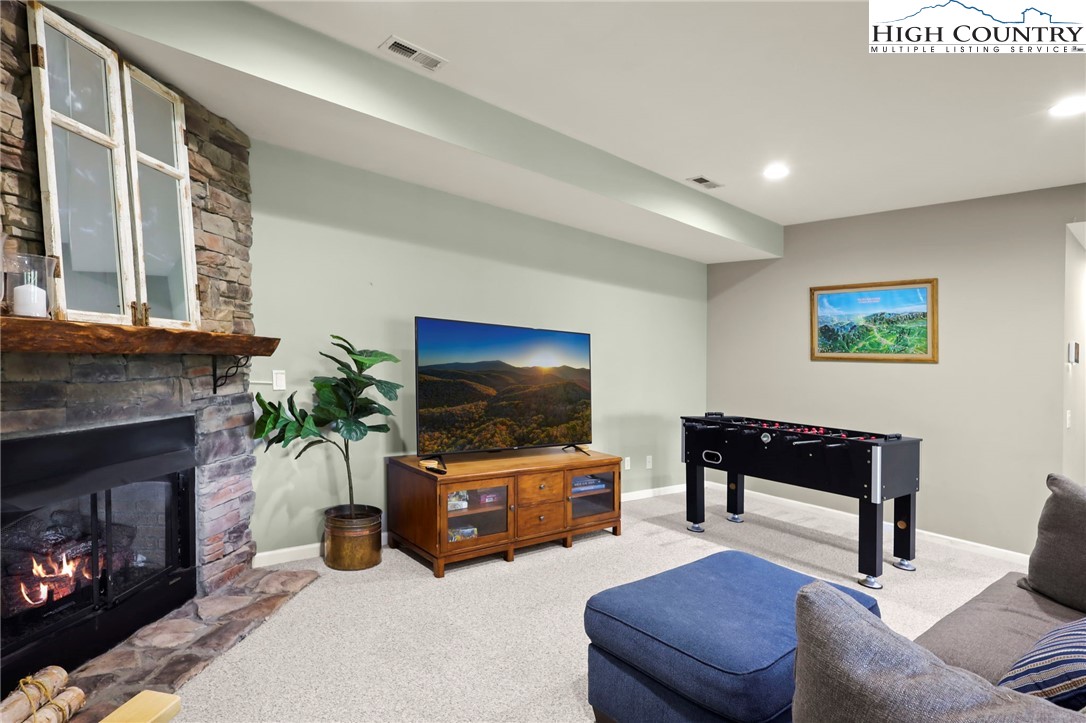 Welcome to this inviting mountain home on Beech Mountain featuring 3 bedrooms, 3 full bathrooms, and year-round long-range layered views from two covered decks. The main level includes tongue-and-groove wood ceilings, an open floor plan with a living area, dining space, and kitchen with center island. The living room has a gas log fireplace, and the kitchen is equipped with updated appliances and cabinetry. This level also offers a guest bedroom, full bath, and a primary suite. The lower level provides a second living area with another gas log fireplace, game/recreation space, and outdoor access. A third bedroom, full bath, laundry area, and bonus space complete the interior. Exterior features include a hot tub, firepit, and outdoor entertainment area. The property is located on a quiet street in a natural setting. Beech Mountain Club membership (if purchased) provides access to tennis, pickleball, golf, fitness, dining, swimming pool, and seasonal programs. The Beech Mountain area offers skiing, mountain biking, hiking, fishing, and year-round community events.