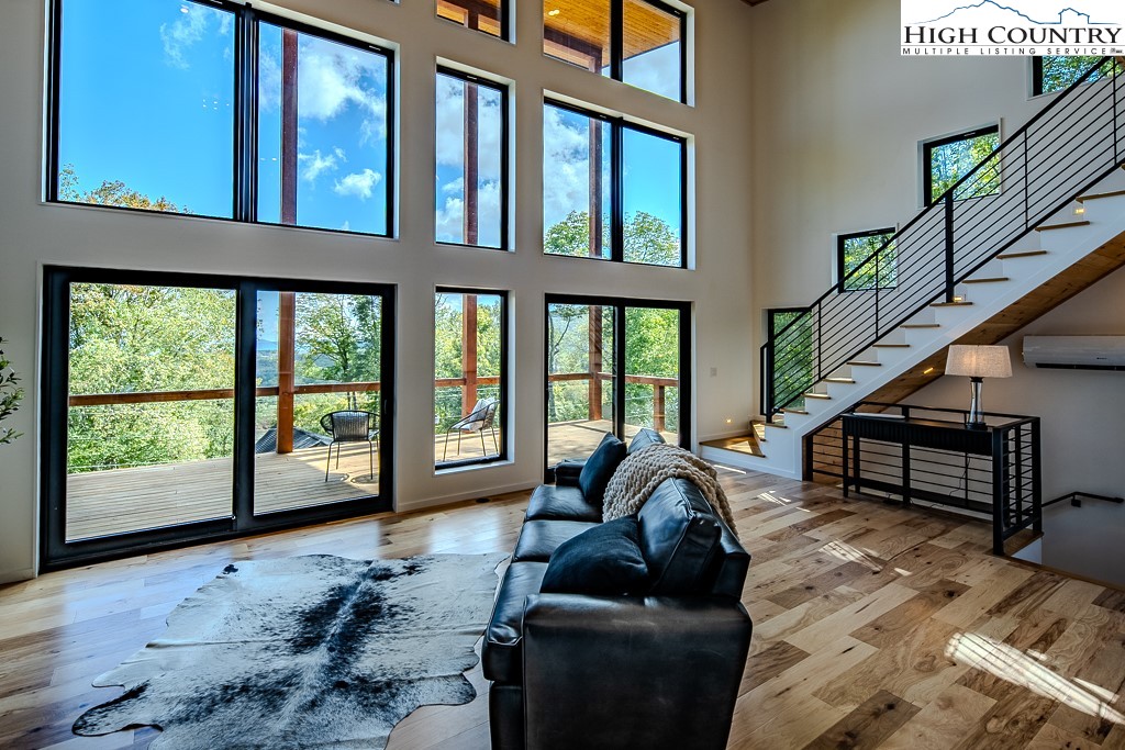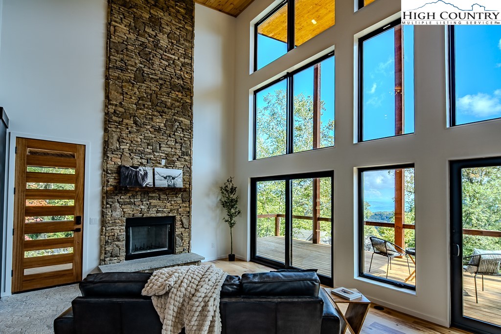 New Construction on Beech Mountain. Desirable location, WALK TO THE SLOPES! This 4-bedroom, 3-bath home offers impressive long-range views. Spread across three levels, it features a spacious deck, plenty of windows, and two fireplaces. The main level includes a grand great room with a soaring ceiling, a wood-burning fireplace, kitchen, bedroom, and full bath. The top level is home to the primary bedroom with full bath and a loft sitting area. On the lower level, you'll find a propane fireplace, two bedrooms, and another full bath. Just a short walk to Beech Mountain Resort for skiing, snowboarding, tubing, dining, shopping, and the brewery. Furnishings in property will convey. Summer activities include mountain biking and the Summer Concert Series. Ideal mountain getaway or an investment property! Enjoy all that Beech Mountain has to offer in this exceptional home. Beech Club membership is available not current. With new member fees, enjoy access to an 18-hole golf course, tennis courts, pickleball courts, a 24-hour fitness center, kids’ camp, outdoor pool, slopeside clubhouse, and more!