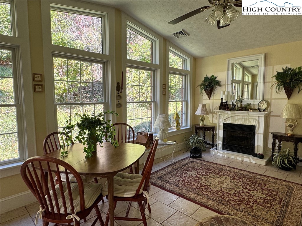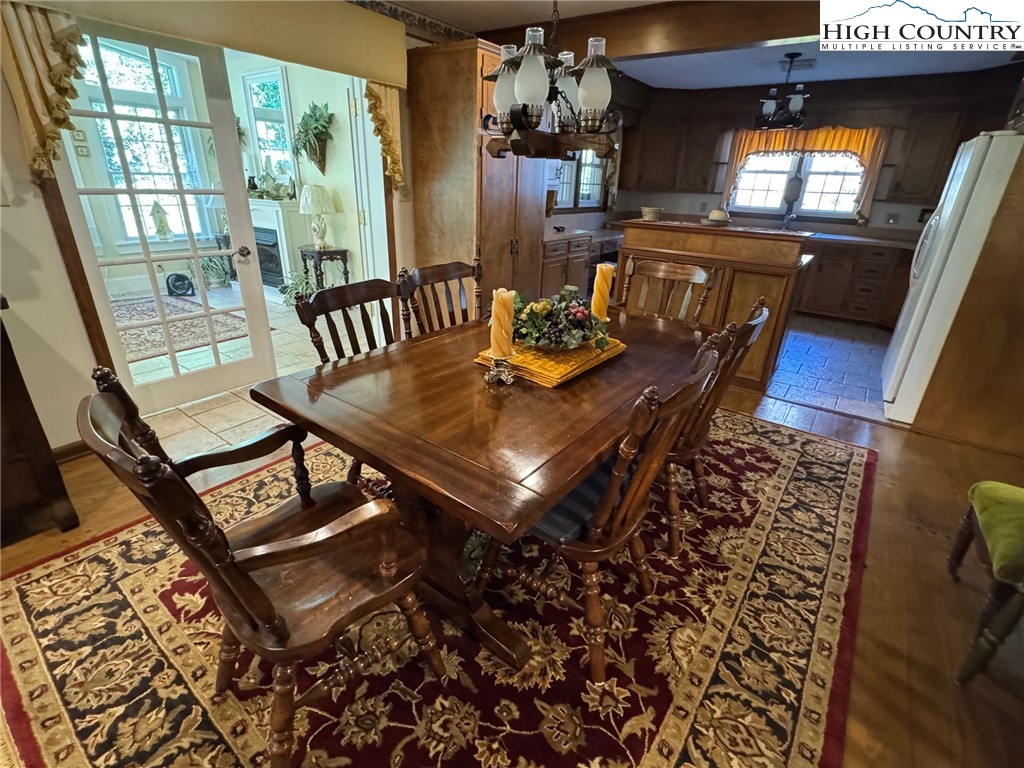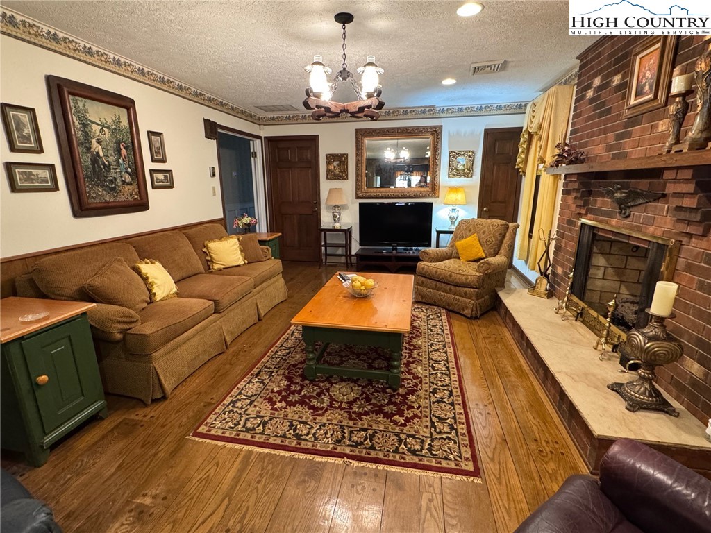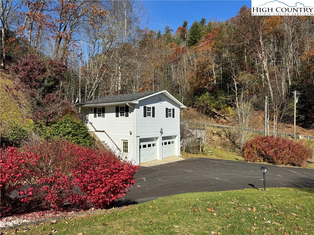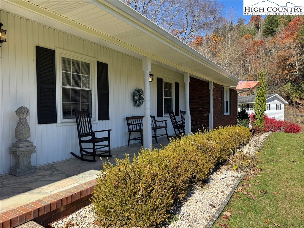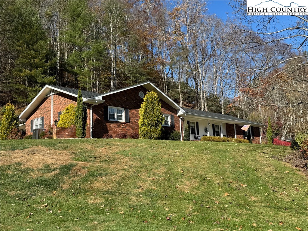 This beautiful ranch-style home features a house upstairs and a complete home downstairs, totaling over 5,400 square feet of living space. With the New River steps away, enjoy the beauty of the mountains and the river. The house is a one-level living with 3 bedrooms upstairs and three full baths. The kitchen features custom wood cabinets and a large eat-in dining area. A formal dining room is open to a formal living room. A brick fireplace is in the den for those cooler winter nights in the mountains. There is a bright sunroom with a fireplace just off the den upstairs. Another full bath is upstairs with a washer-dryer laundry space. In the lower level is another full-house living area with a full-size kitchen, two bedrooms, and one full bath. The lower level features a large family room with a wood-burning fireplace and an office. A detached two-car garage is also on the property with an upstairs work space or nice storage area. The property has had several updates. A newer roof, a newer heat pump, and windows have been installed in the last few years. The lower level was completely redone in 2023, with Tar Hill Basements doing the dry-lock outer walls. This house did not have any moisture intrusion during Helene. Come to the mountains and enjoy the cooler summers and beautiful mountain winters. West Jefferson is only 15 minutes away, and Boone is 45 minutes away.