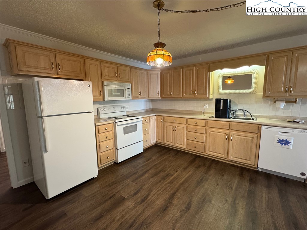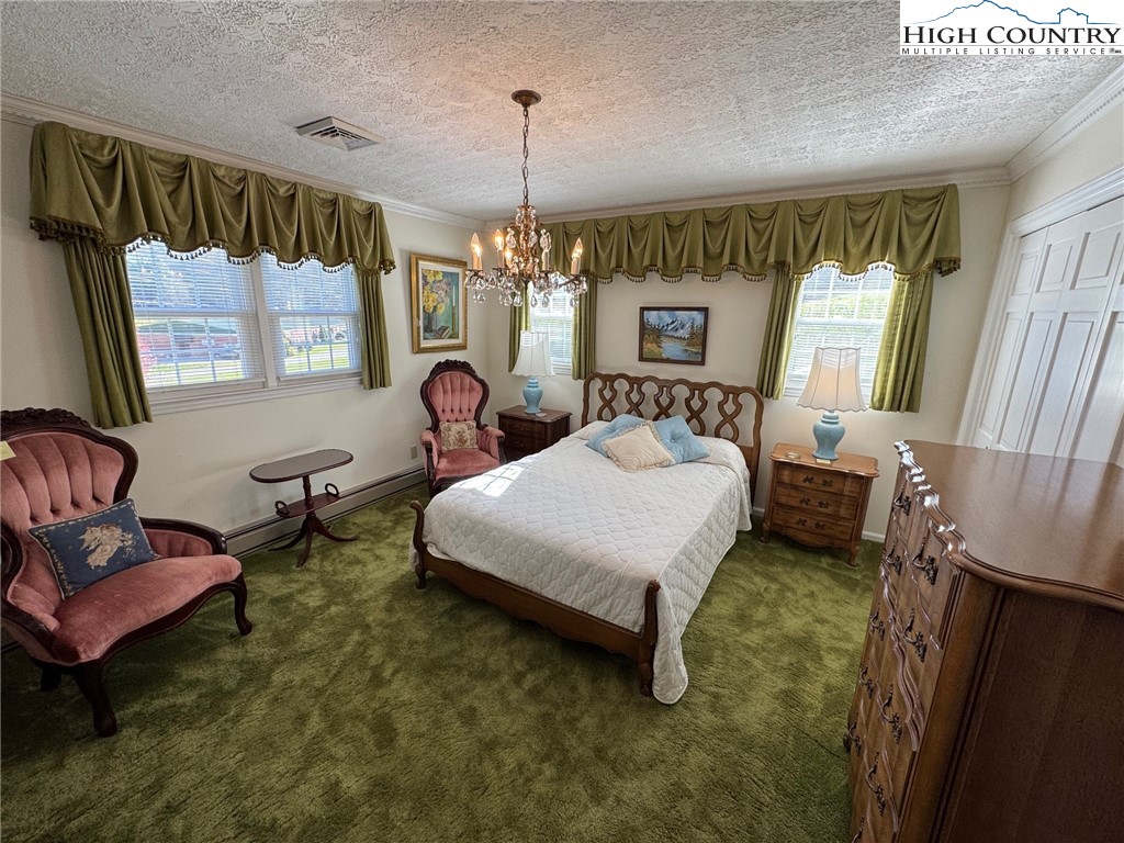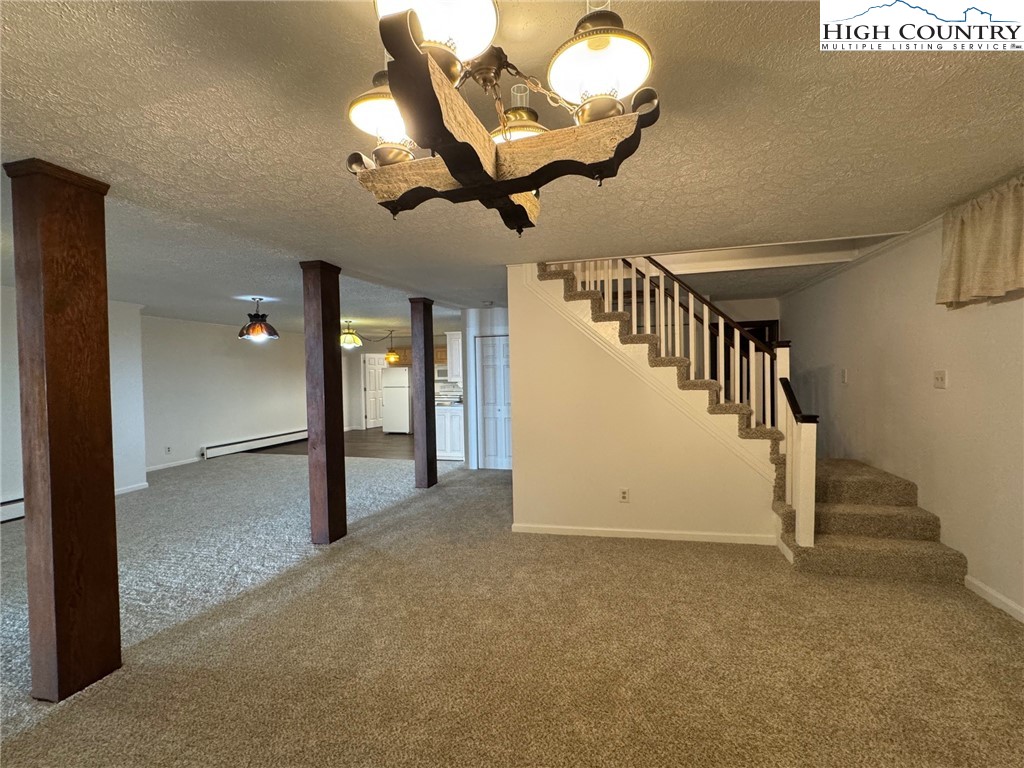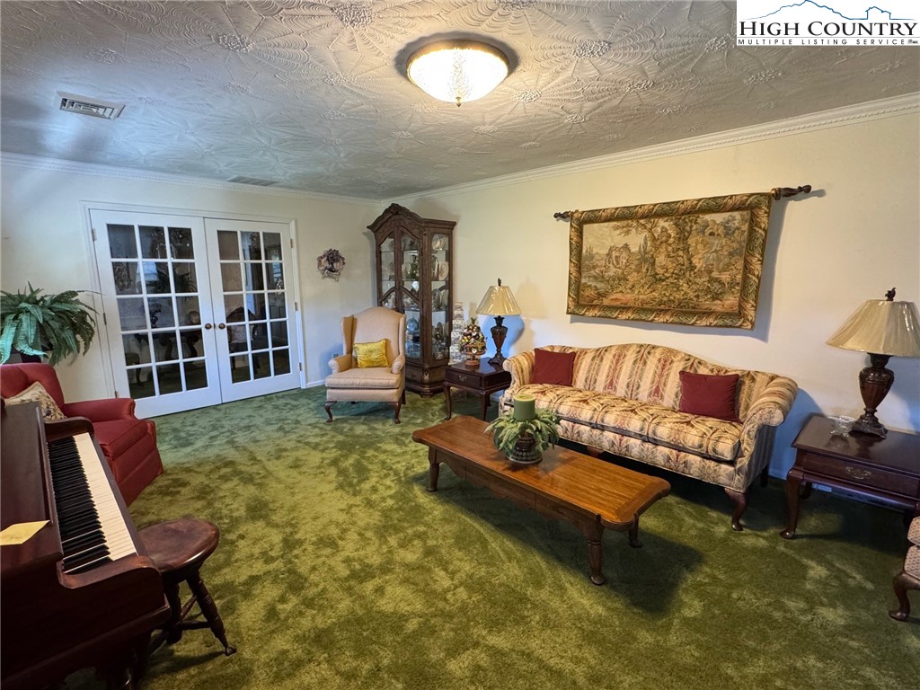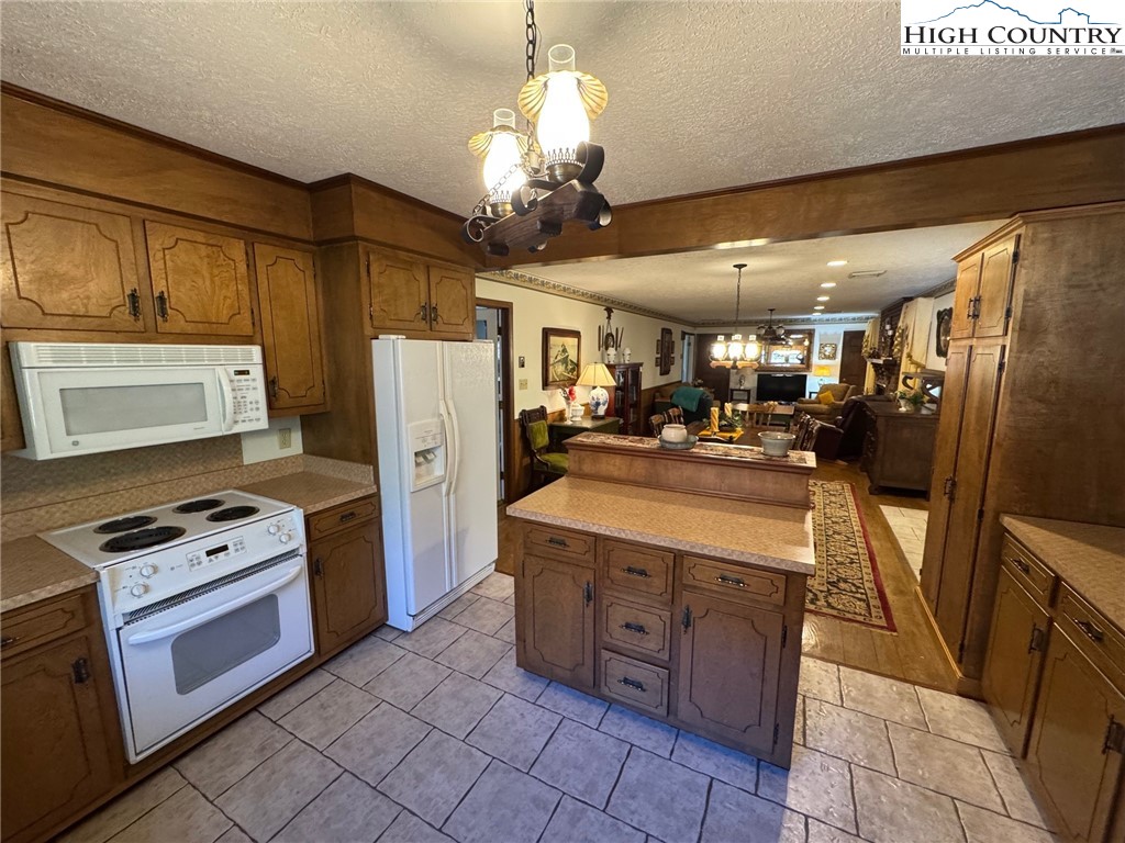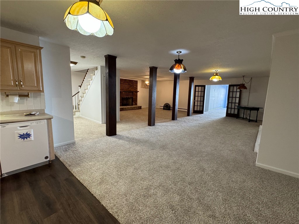 This beautiful ranch-style home features a house upstairs and a complete home downstairs, totaling over 5,400 square feet of living space. With the New River steps away, enjoy the beauty of the mountains and the river. The house is a one-level living with 3 bedrooms upstairs and three full baths. The kitchen features custom wood cabinets and a large eat-in dining area. A formal dining room is open to a formal living room. A brick fireplace is in the den for those cooler winter nights in the mountains. There is a bright sunroom with a fireplace just off the den upstairs. Another full bath is upstairs with a washer-dryer laundry space. In the lower level is another full-house living area with a full-size kitchen, two bedrooms, and one full bath. The lower level features a large family room with a wood-burning fireplace and an office. A detached two-car garage is also on the property with an upstairs work space or nice storage area. The property has had several updates. A newer roof, a newer heat pump, and windows have been installed in the last few years. The lower level was completely redone in 2023, with Tar Hill Basements doing the dry-lock outer walls. This house did not have any moisture intrusion during Helene. Come to the mountains and enjoy the cooler summers and beautiful mountain winters. West Jefferson is only 15 minutes away, and Boone is 45 minutes away.