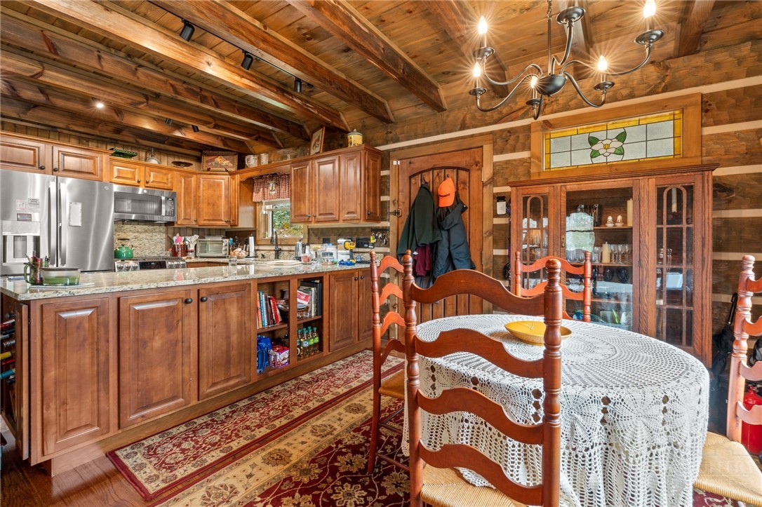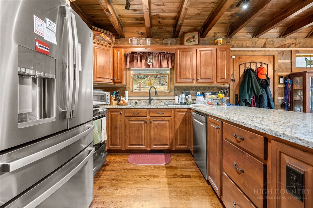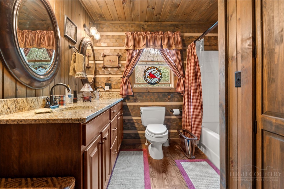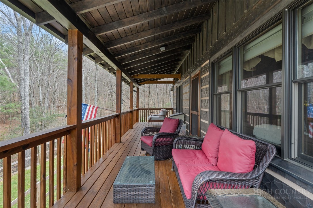 Escape to the High Country with this charming 3-bedroom, 3-bath log cabin, which offers the perfect blend of privacy, functionality, and mountain appeal. Thoughtfully designed with a bedroom and full bathroom on each level, this home provides ideal separation for guests, full-time living, or rental flexibility. Enjoy peaceful mornings and cool mountain evenings from both the spacious front and back porches, surrounded by nature and the soothing sounds of a small stream running through the property. Spend your evenings gathered around the firepit area, and enjoy the fenced-in garden space—great for planting, pets, or simply added outdoor versatility. Inside, you’ll find ample storage throughout, making it as practical as it is inviting. An added bonus is the separate “man cave” or flex space with its own entrance—making it a great space for a game room, studio, or additional guest quarters. Recent upgrades/extras the cabin includes: Generator installed in 2020, HVAC done in 2022, kitchen upgraded with new countertops and appliances in 2023 and a Sentrion Termite System has also been pit in place. Tucked away in a serene setting yet conveniently located between West Jefferson, Boone, and the Wilkesboro's, this property offers easy access to dining, shopping, and outdoor recreation. Whether you’re searching for a full-time residence, vacation getaway, or income-producing rental, this High Country cabin checks all the boxes.