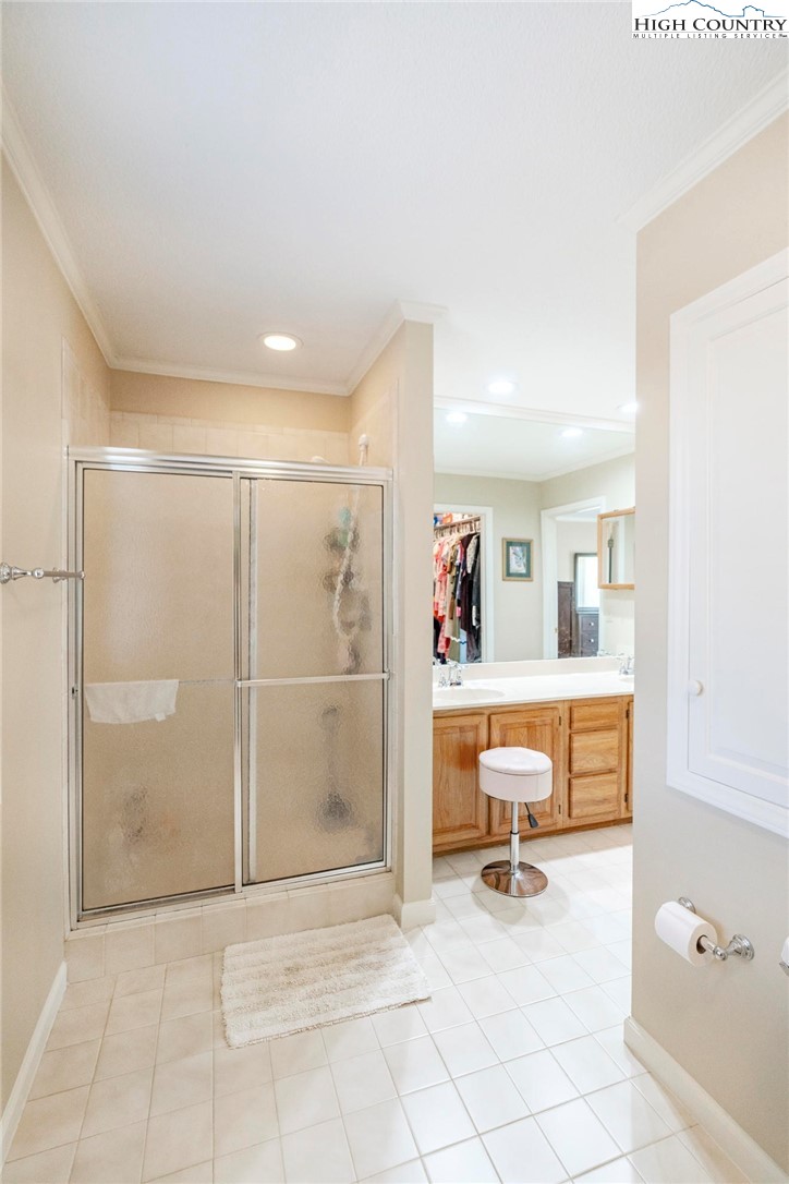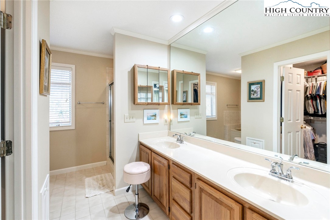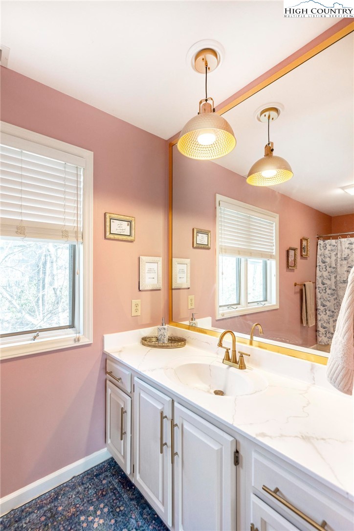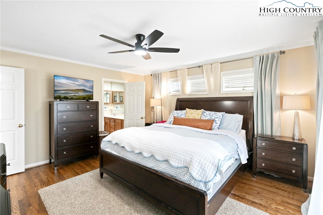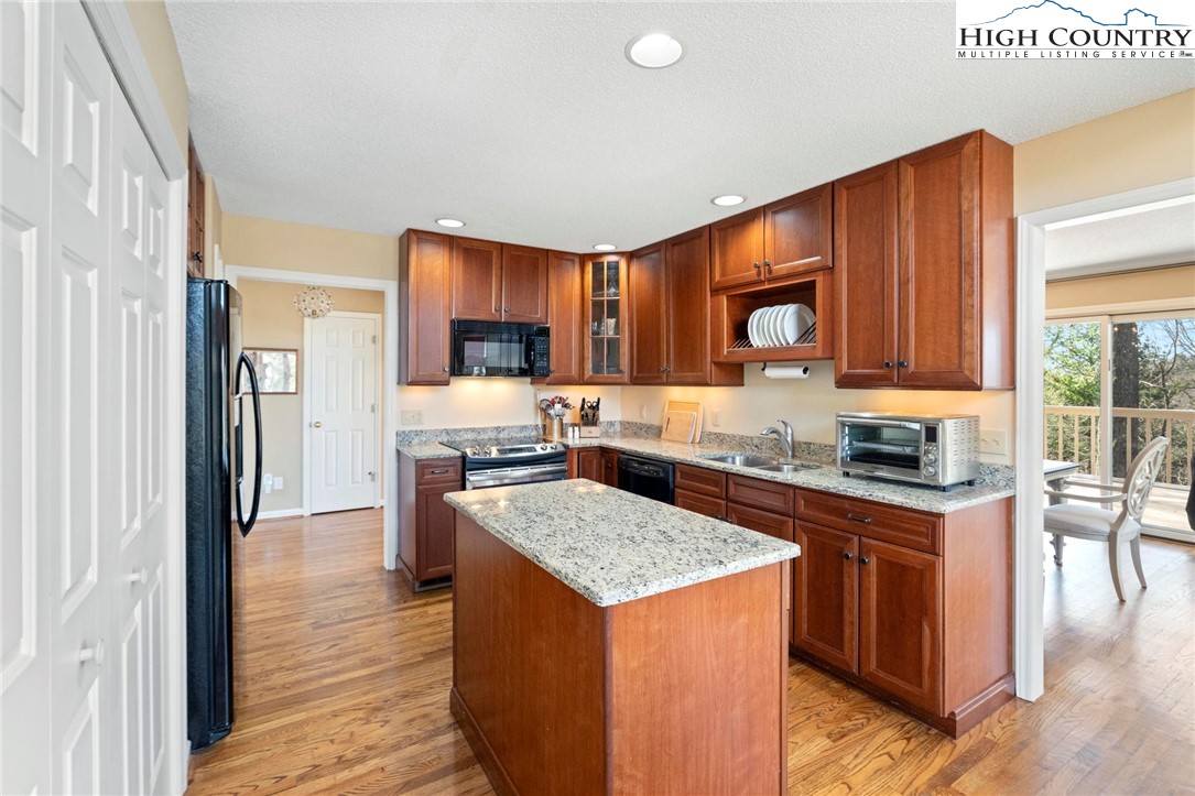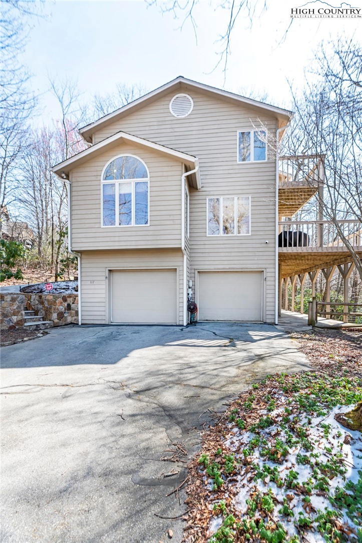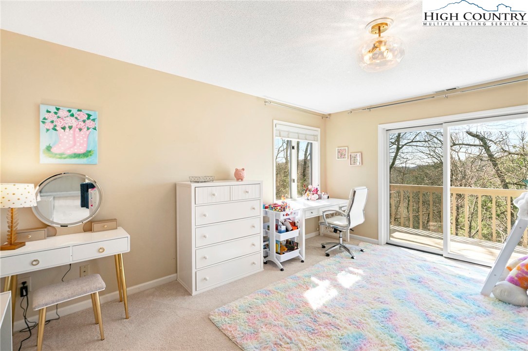 Nestled in the desirable Sorrento Forest neighborhood of Blowing Rock, this inviting three-bedroom, 3.5-bath mountain home offers warmth, natural light and comfortable living spaces throughout. Southern exposure fills the home with sunshine, while expansive windows frame the peaceful wooded setting with seasonal views of Grandfather Mountain in the distance. The main living area features vaulted ceilings and a striking floor-to-ceiling stone fireplace, creating a warm and inviting focal point in the great room. The layout flows comfortably between the living room, dining area and kitchen, offering an ideal setting for both everyday living and entertaining. The dining area opens onto the deck through large sliding glass doors, bringing in natural light and making it easy to enjoy outdoor dining and mountain air. The kitchen is well-equipped with modern appliances, ample counter space and a cozy breakfast nook for casual meals. The main-level primary suite provides privacy and convenience, complete with a large closet and a well-appointed bathroom featuring dual vanities, a soaking tub and a separate shower. Upstairs, an open loft with built-in bookshelves creates a cozy reading nook and leads to two spacious guest suites, each with its own private balcony. The full basement adds valuable flexibility with several bonus rooms that can serve as a home office, fitness area, hobby room or additional sleeping quarters. There is also ample storage space for outdoor equipment and seasonal items. A gently sloping driveway leads to the attached two-car garage for easy year-round access. Ideally located just minutes from the shops, restaurants and charm of downtown Blowing Rock, as well as the outdoor beauty of the Blue Ridge Parkway, this home offers the perfect combination of convenience and mountain serenity. Whether you're looking for a full-time residence, weekend escape or High Country retreat, this inviting home offers the space, setting and comfort to truly enjoy mountain living.