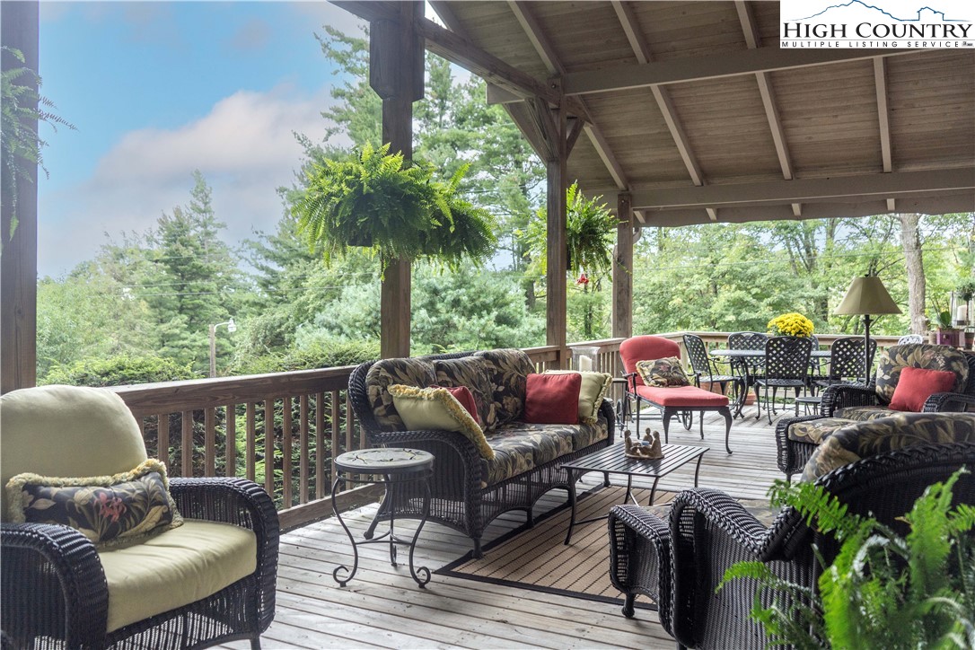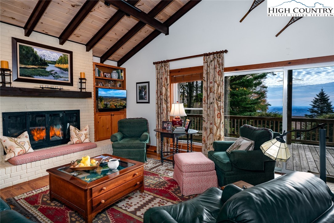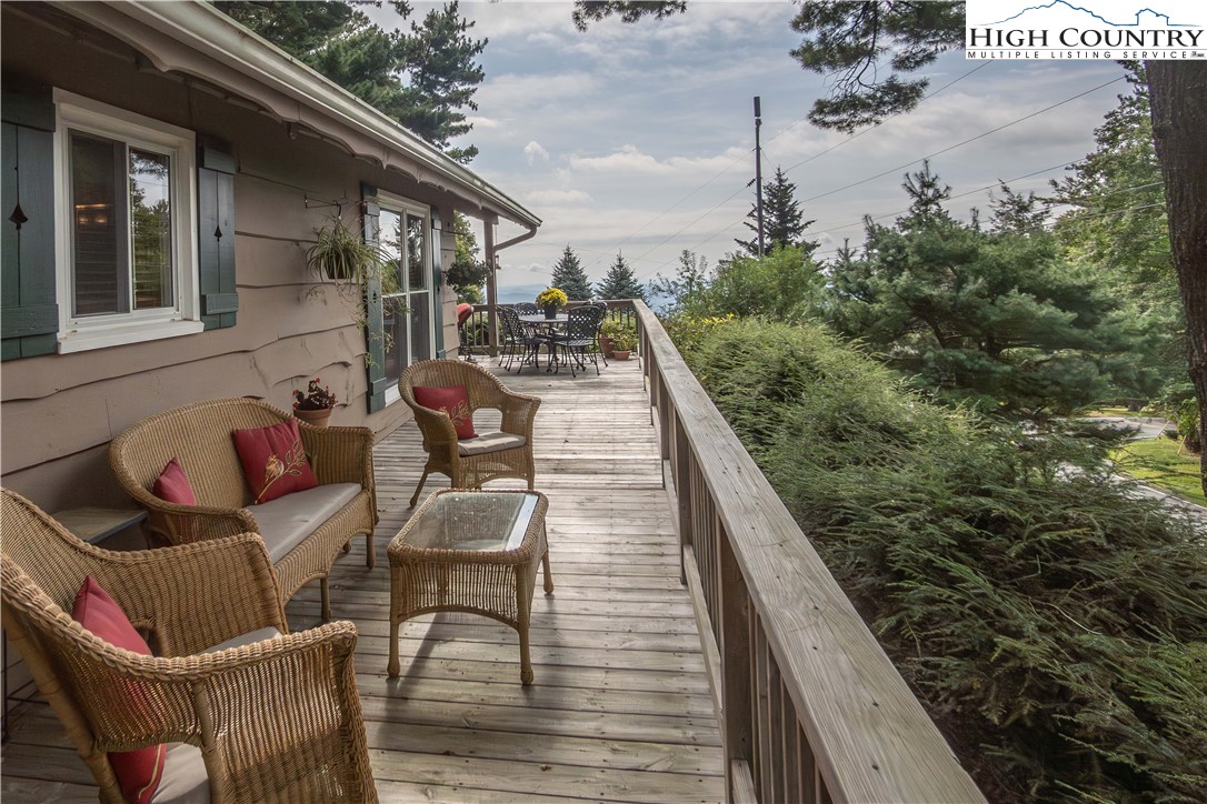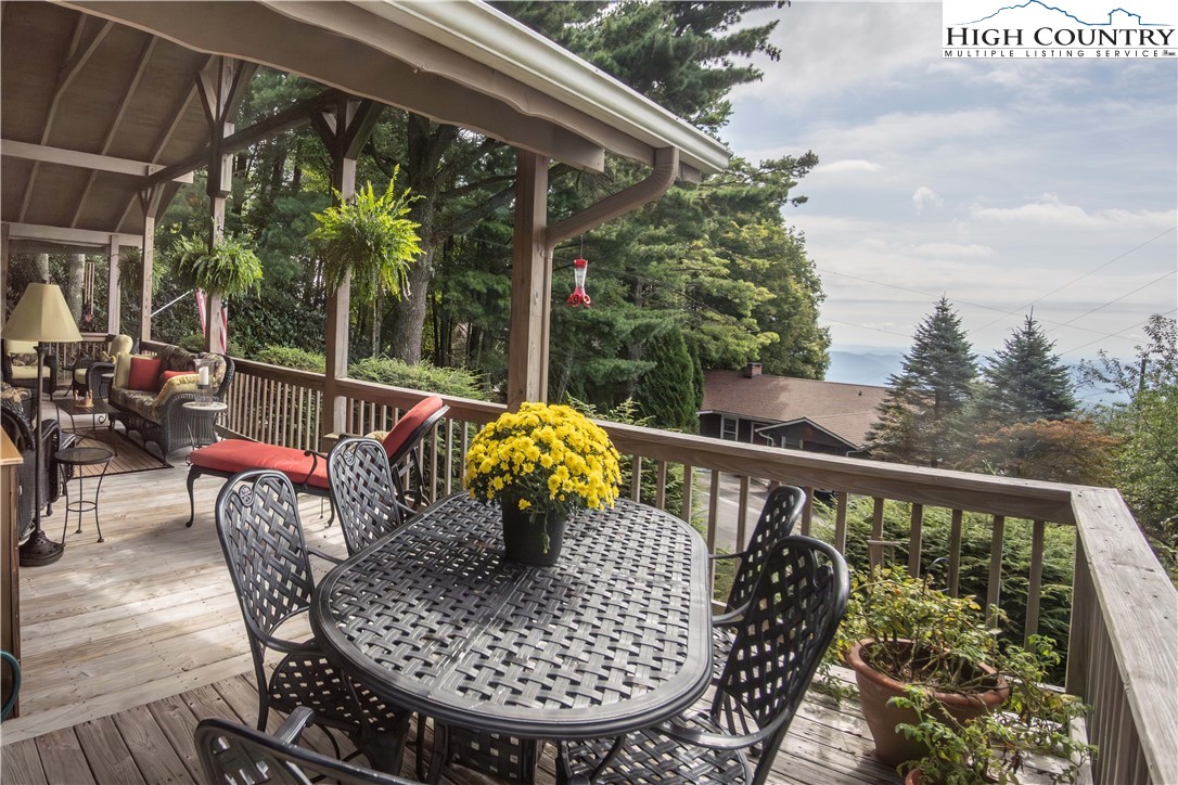 Experience the charm and character of classic Blowing Rock living in this quintessential mountain cottage, perfectly positioned with stunning views of Grandfather Mountain and Blackberry Gorge. Just minutes from Blowing Rock Country Club—with convenient golf cart access—this feather board cottage combines timeless appeal with thoughtful updates. The vaulted great room welcomes you with a wall of windows and sliders that frame the dramatic gorge views, while tongue-and-groove ceilings with exposed beams and a cozy propane fireplace create a warm, inviting atmosphere. Beautiful hardwood floors flow throughout the home, complemented by ceramic tile in the baths. Offering three bedrooms with en-suite baths, this home provides comfortable accommodations for family and guests alike. The primary suite, a graceful addition completed in 2002, serves as a serene private retreat. While the cottage maintains a modest footprint, it lives large with an impressive 1,626 square feet of covered and open decking—perfect for relaxing, entertaining, or simply taking in the mountain air. The lower level beneath the original structure includes a partial walk-in basement, professionally sealed with CleanSpace and featuring a dehumidifier installed by Tarheel Basement Systems. This area also includes built-in shelving and double cedar closets. Originally built with craftsmanship and later enhanced with care, this home has been meticulously maintained and looks as fresh today as it did two decades ago—a true Blowing Rock treasure offering both comfort and character in one of the High Country’s most sought-after locations.