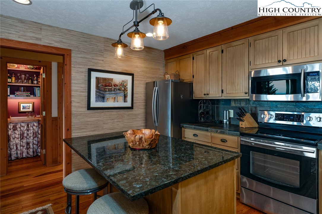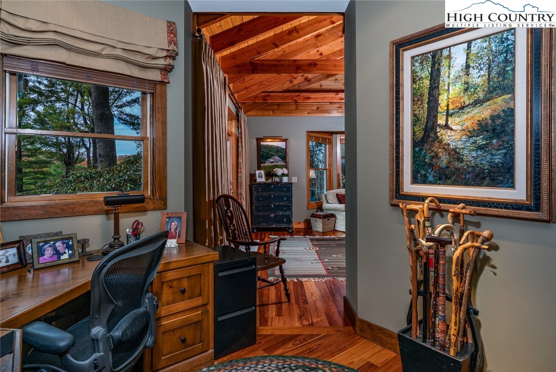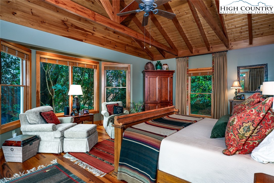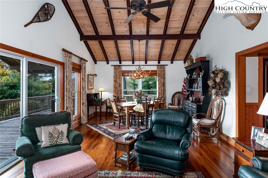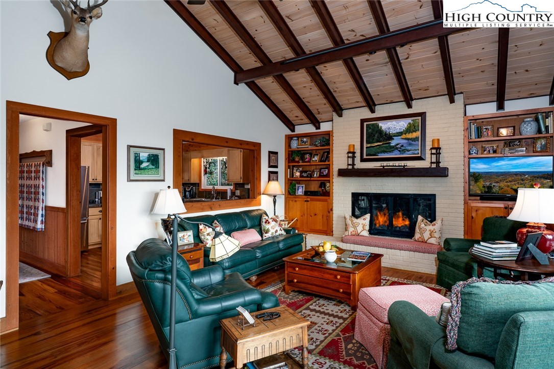Experience the charm and character of classic Blowing Rock living in this quintessential mountain cottage, perfectly positioned with stunning views of Grandfather Mountain and Blackberry Gorge. Just minutes from Blowing Rock Country Club—with convenient golf cart access—this feather board cottage combines timeless appeal with thoughtful updates. The vaulted great room welcomes you with a wall of windows and sliders that frame the dramatic gorge views, while tongue-and-groove ceilings with exposed beams and a cozy propane fireplace create a warm, inviting atmosphere. Beautiful hardwood floors flow throughout the home, complemented by ceramic tile in the baths. Offering three bedrooms with en-suite baths, this home provides comfortable accommodations for family and guests alike. The primary suite, a graceful addition completed in 2002, serves as a serene private retreat. While the cottage maintains a modest footprint, it lives large with an impressive 1,626 square feet of covered and open decking—perfect for relaxing, entertaining, or simply taking in the mountain air. The lower level beneath the original structure includes a partial walk-in basement, professionally sealed with CleanSpace and featuring a dehumidifier installed by Tarheel Basement Systems. This area also includes built-in shelving and double cedar closets. Originally built with craftsmanship and later enhanced with care, this home has been meticulously maintained and looks as fresh today as it did two decades ago—a true Blowing Rock treasure offering both comfort and character in one of the High Country’s most sought-after locations.