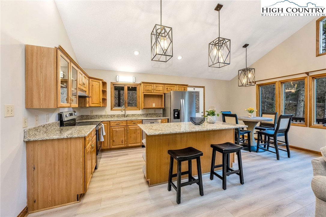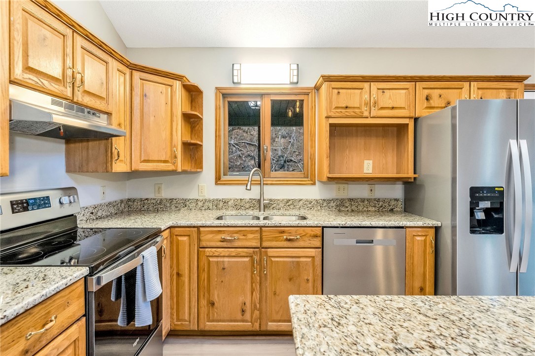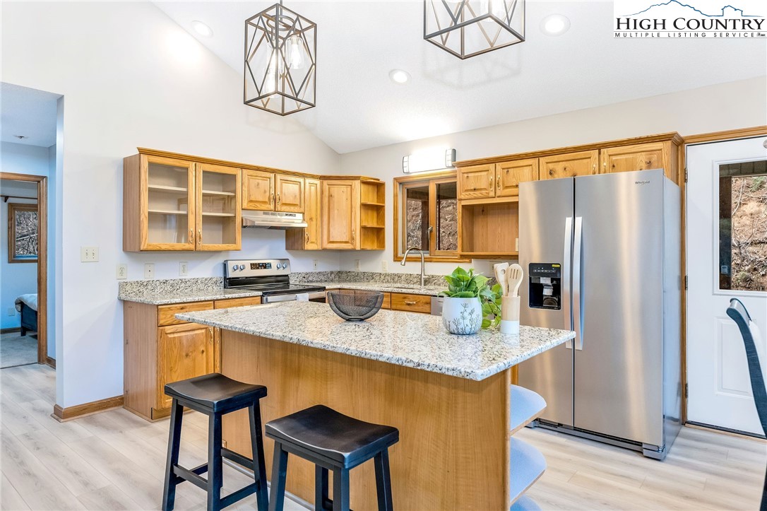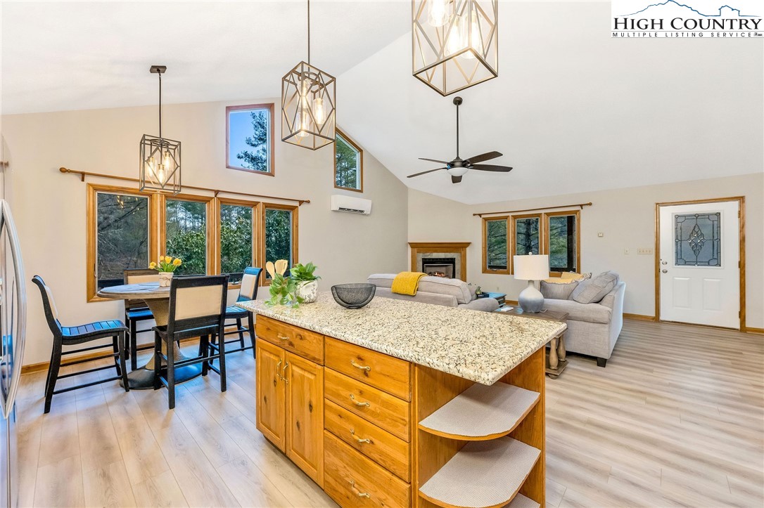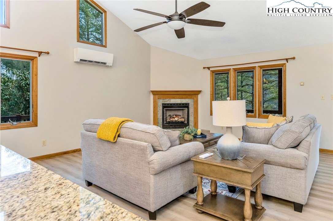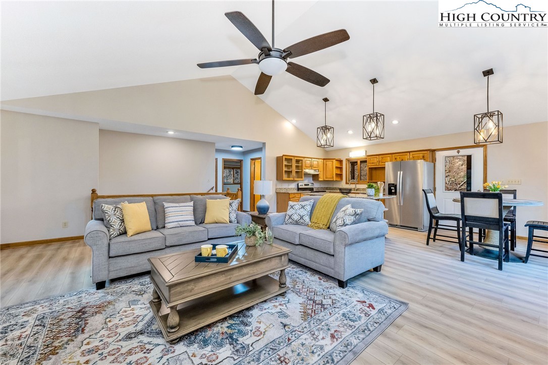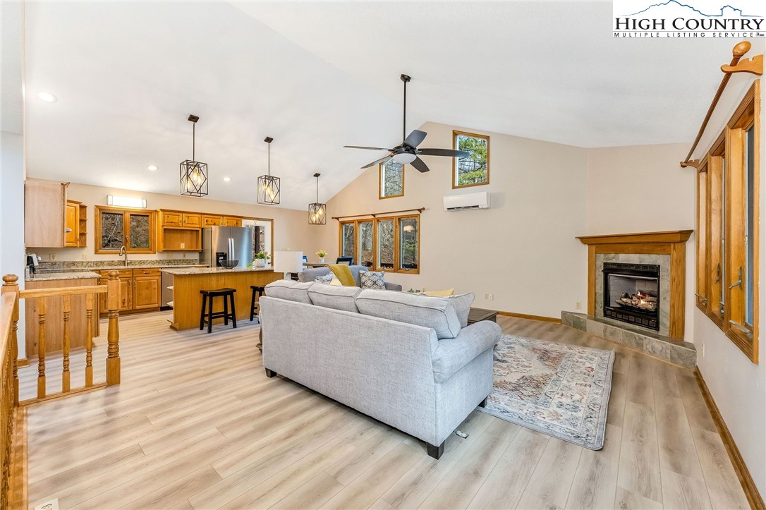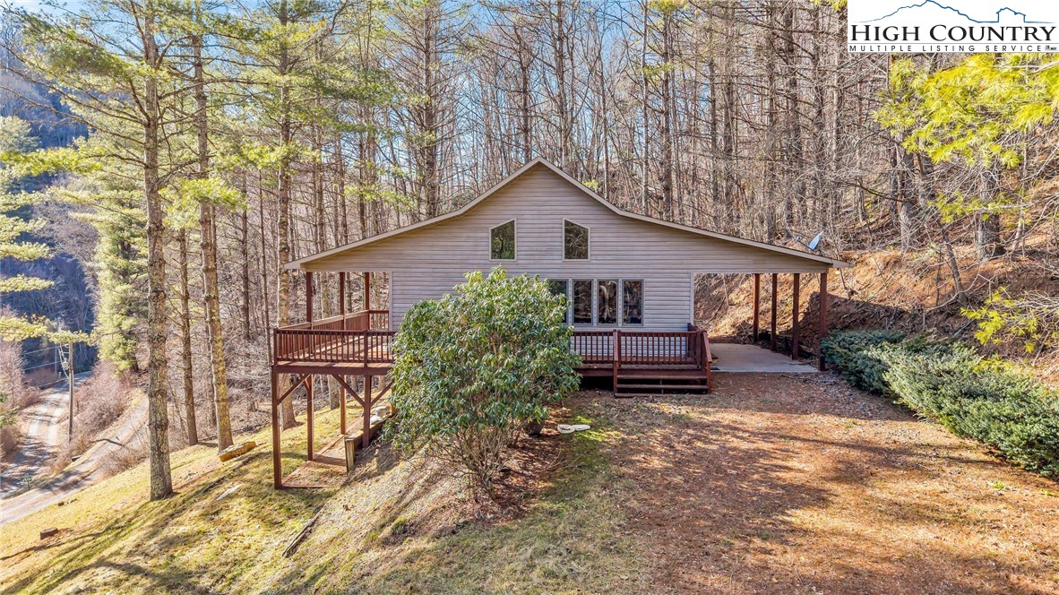 Mountain Cool. Move-In Ready. Priced to Move. Looking for that sweet spot between West Jefferson and Boone? This freshly updated and affordable mountain retreat delivers the best of both worlds — easy access right off Hwy 221, yet tucked just far enough away to enjoy peace, privacy, and the sounds of nature. Set among towering pines on a gently sloping yard, this home offers distant mountain and creek views, blooming rhododendrons, and that “tucked-away” feeling. It’s the kind of setting that makes you slow down and breathe a little deeper. Outside, you’ll love the durable, low-maintenance siding and the spacious wrap-around decking that flows seamlessly into a covered porch, creating plenty of room for entertaining, outdoor dining, or simply relaxing in the fresh mountain air. The concrete carport is a true bonus when rain or snow rolls in, offering practical protection year-round while keeping access easy and convenient. Inside, the home is completely refreshed and move-in ready with brand new LVP flooring and carpet, fresh paint throughout, and updated light fixtures that give the space a clean, modern feel. Offered partially furnished, this property makes stepping into mountain living effortless. The main level features an open-concept layout with the kitchen, dining area, and vaulted great room anchored by a cozy gas-burning fireplace. Two bedrooms and a full bath complete this level, along with a new mini-split system that provides efficient heating and cooling for year-round comfort. Downstairs adds incredible flexibility with a newly updated family room and a bonus room perfect for a home office, creative space, or overflow sleeping area. A second full bathroom and washer/dryer closet enhance functionality, and the additional storage/workshop area is ideal for bikes, kayaks, yard tools, and all your mountain recreation gear. This isn’t just a house. It’s your weekend escape, your short-term rental opportunity, or your full-time mountain lifestyle. Homes in this price point — in this location — don’t sit around. Ready to claim your mountain basecamp? Let’s schedule your showing before someone else grabs it.