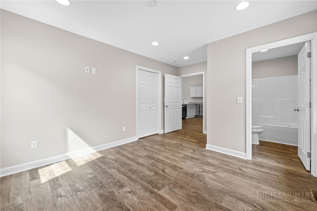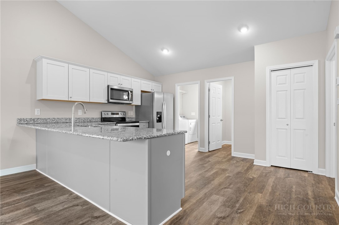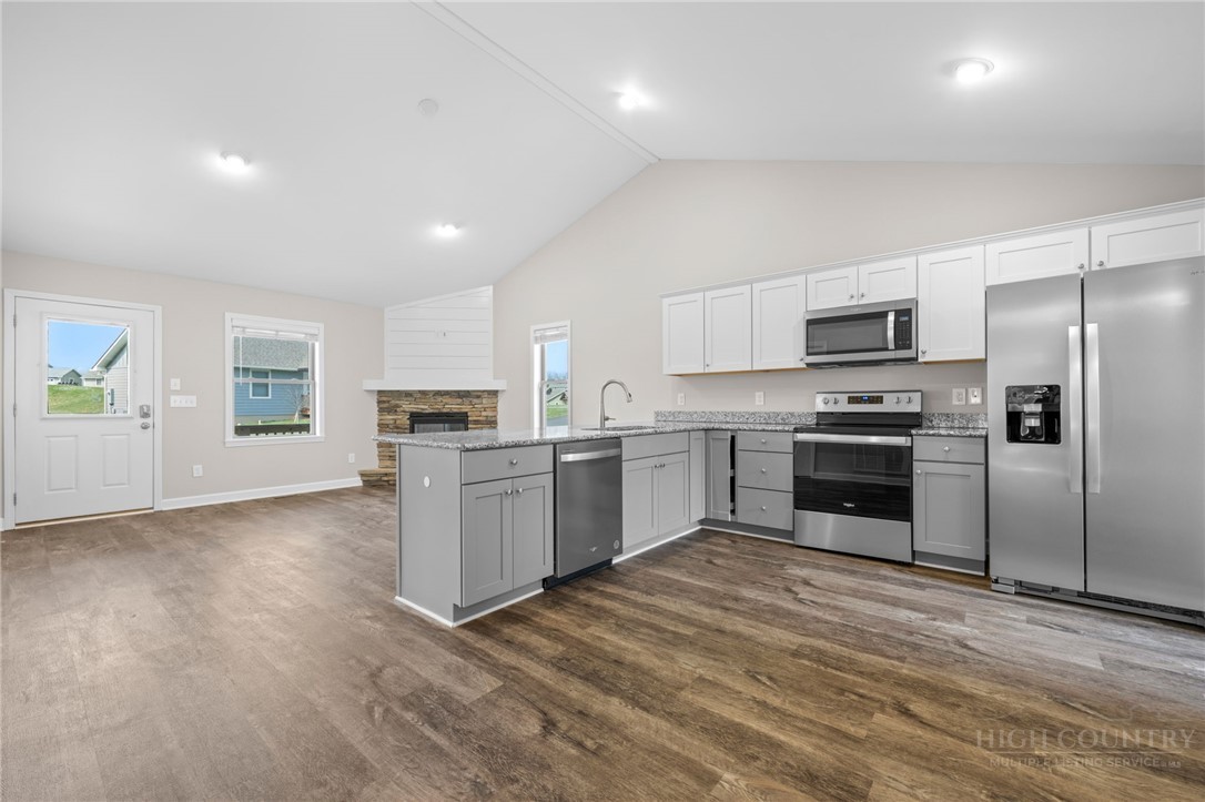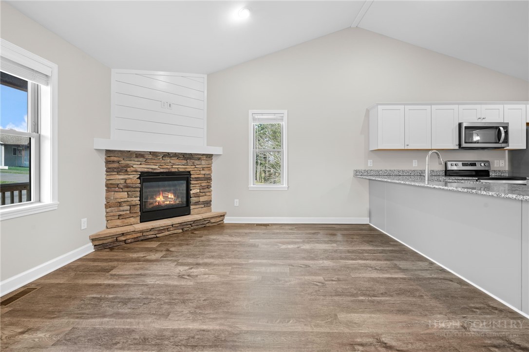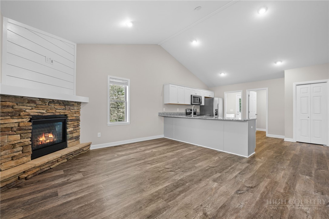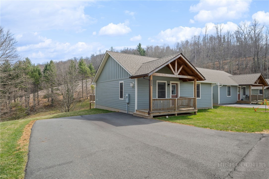 Like-new townhome in prime Boone location within Townhomes At Brookshire, where convenience meets serene mountain living. This freestanding townhouse offers the rare chance for a desirable one-level lifestyle in the highly sought-after Boone area with wooded views and large side common yard. It is READY TO MOVE IN! The thoughtful design throughout this two-bedroom, two-and-a-half-bath home. The open-concept kitchen and living area is the heart of the home, featuring a cozy stone-faced gas fireplace—perfect for cool mountain evenings. The kitchen boasts stainless steel appliances, granite countertops, a large eat-at bar, and pantry. For ultimate privacy, the layout includes two oversized bedrooms, each with its own en-suite bathroom. Additional features include a walk-in laundry room and encapsulated crawlspace with plenty of storage. Enjoy the tranquil setting from your outdoor spaces, including a charming, open-framed porch that delivers classic mountain appeal and rear deck with wooded common area views. The location is truly unbeatable—just minutes from everything Boone has to offer. You are a short walk or drive to local amenities like Brookshire Park, the New River, the Boone Greenway, and community dog park. With quality new construction and exceptional proximity to all of Boone's best amenities, this property is home.