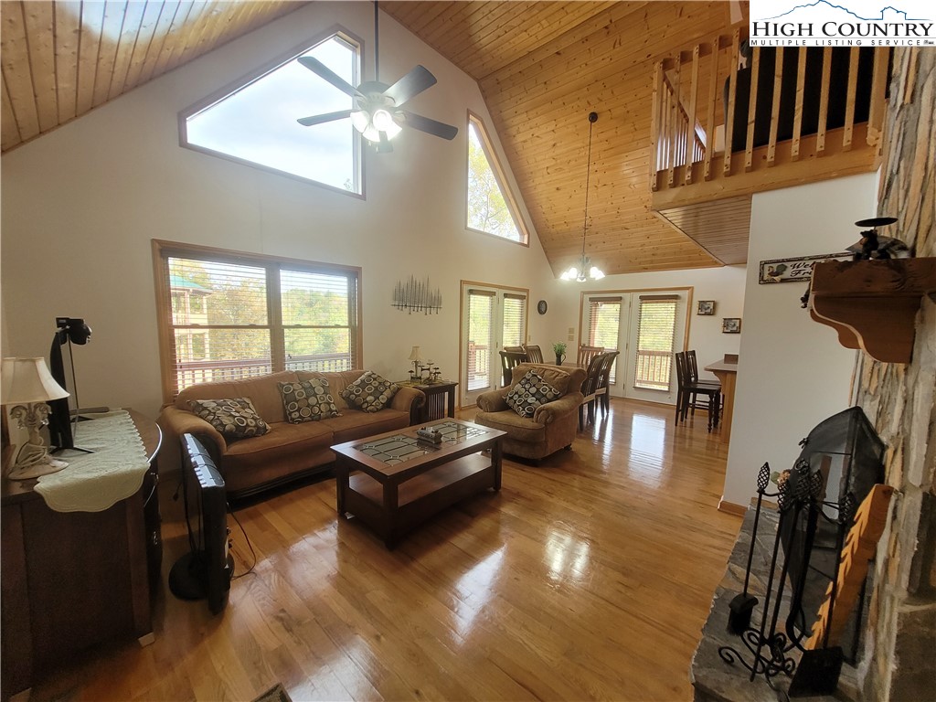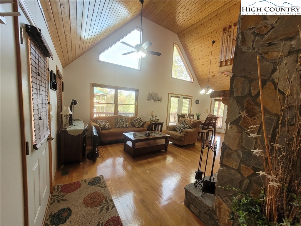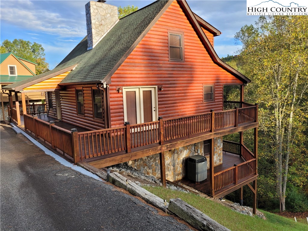 Welcome to this beautifully maintained log-sided cabin in the desirable gated community of River Country Estates with access to the New River. Designed with space and comfort in mind, this home offers a basement, main level, and second floor with loft overlooking the living and dining areas. A stunning wood-burning fireplace anchors the open living space, creating a warm and inviting atmosphere. In addition to the traditional bedrooms, there are two versatile bonus rooms currently used as extra sleeping space, making this cabin comfortable for a large family or hosting guests. The layout is great for entertaining, with plenty of room to gather indoors or enjoy the outdoors after a day on the river. Whether you’re looking for a full-time residence, vacation getaway, or a 2nd home, this cabin delivers the charm of rustic mountain living with modern convenience.