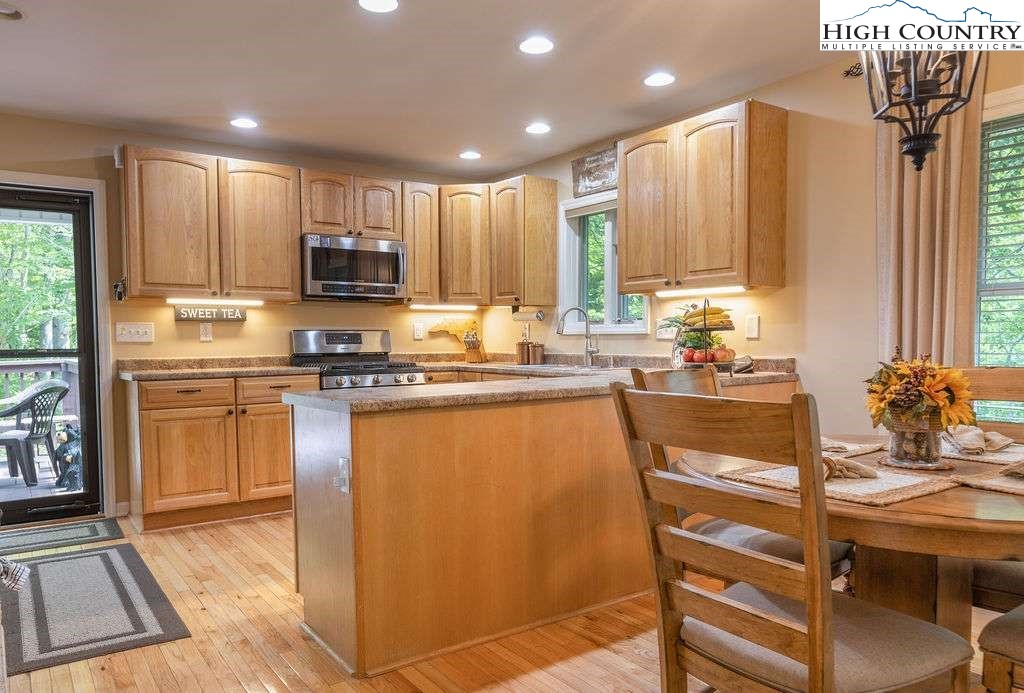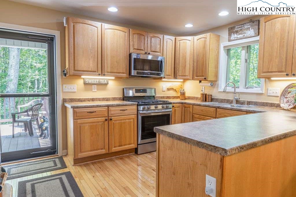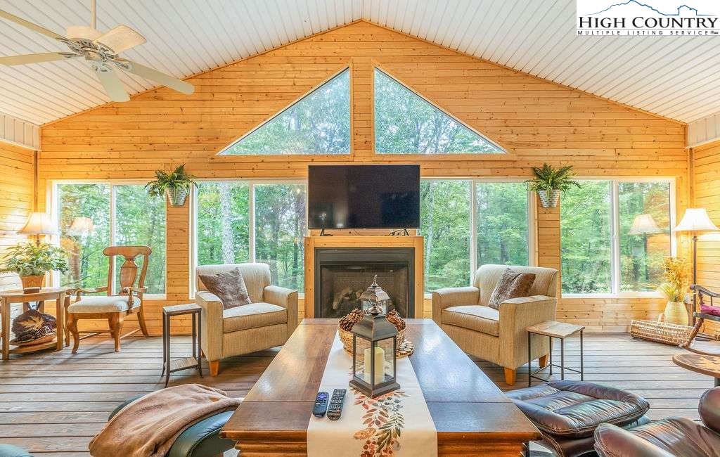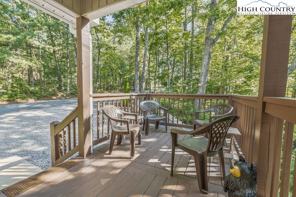 Serenity awaits in this 4/3 two-story mountain retreat in western North Carolina. Whether you're searching for a seasonal or year-round home, the inviting ambiance is perfect for relaxation and entertainment. Located in the resort community of Linville Land Harbor, you would have access to a swimming pool, lake, recreation center with classes, and beautiful golf course, just to highlight a few. Opportunities for meeting new friends is a welcoming lifestyle. This home offers many areas to enjoy your special piece of paradise, including an outdoor porch right off the kitchen. A cozy swing overlooks the landscaped garden which blooms with colorful flowers all summer long. But wait...if you have a large crowd... the back pavered patio has space for games and festive food gatherings. An artisan stone wall and expanded parking is a rare but welcoming find. Indoors invites you to the living room, but the almost 600 sq.ft.sunroom with picture windows and light wood paneling offers a tree-house feeling. The winter allows a gorgeous mountain view on 3 sides. A mini-split wall system and gas fireplace will keep you warm and cozy. Guest quarters in the lower level offers 2 bedrooms, bathroom, kitchenette, and living/dining areas. A golf cart garage also has a large workshop and storage areas. This well-maintained home has many outdoor features, including siding, metal roof and leaf filter gutters. Surrounded by trees and privacy, seize the opportunity to be it's next owner!