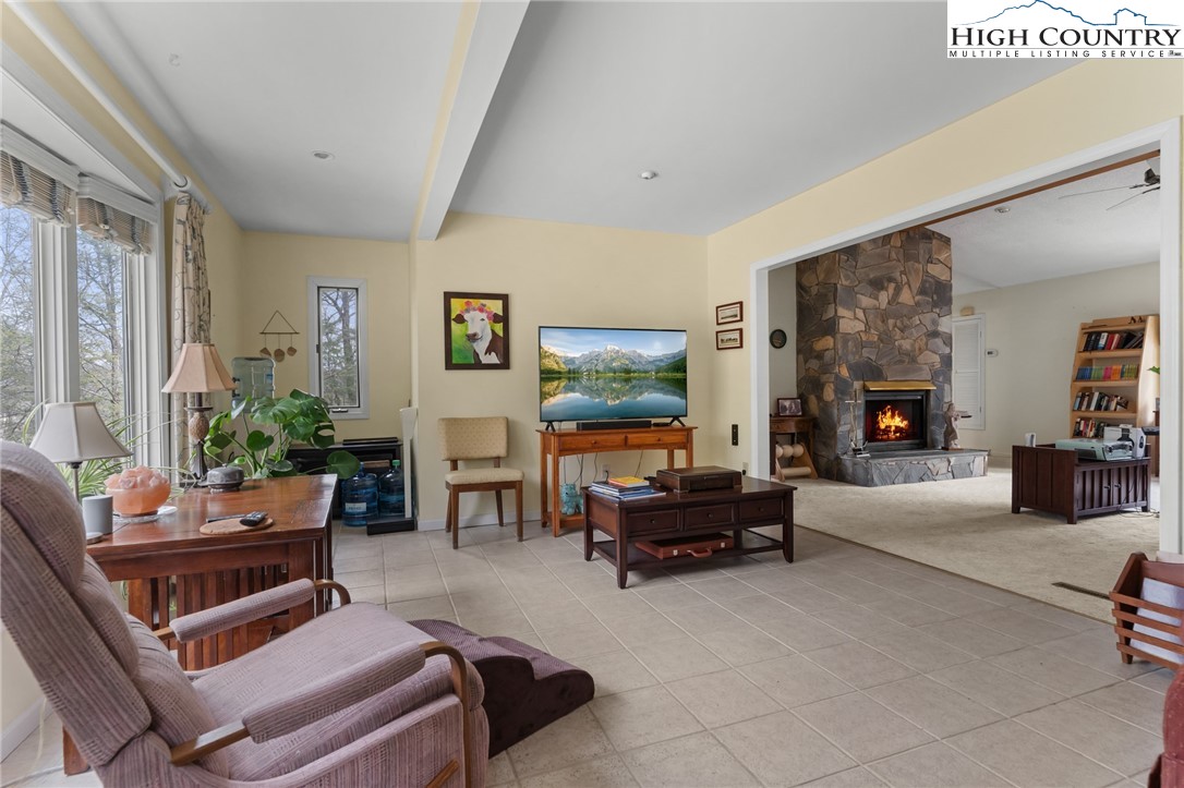 Charming ranch-style home located in the heart of Roaring Gap, North Carolina. The nicely laid-out home features an open floor plan and a spacious great room anchored by an attractive stacked stone gas log fireplace. The bright sunroom offers the perfect spot to relax year-round, while the cozy breakfast nook creates an inviting space for casual dining and morning coffee. Designed for comfort and convenience, the home offers two bedrooms, each with its own full bath for added privacy. A main-level laundry room, functional mud room, and attached one-car garage add everyday practicality to this home. Situated on approximately 1.4 acres, this property feels private and secluded while still providing quick access to the Blue Ridge Parkway, Stone Mountain State Park, Sparta, Elkin, and Winston-Salem. Enjoy peaceful mountain living with convenient access to recreation, dining, and shopping.