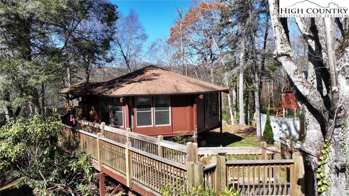 Rare Linksider opportunity on Sugar Mountain - a little slice of Heaven right alongside Sugar Mountain's Hole 15. This level entry home features 2 bedrooms, 2 full baths, and a relaxing back porch. Flat yard area and even an activity area around the pedistal. This classic Sugar Mountain round house has many upgraded features including granite in the kitchen - as well as it's own private bridge over the creek onto the course!
