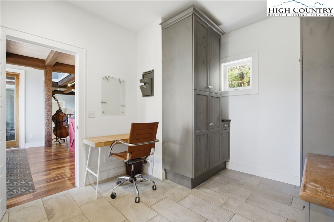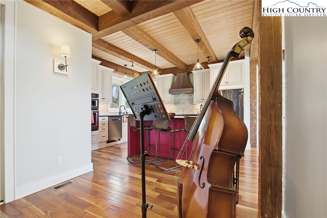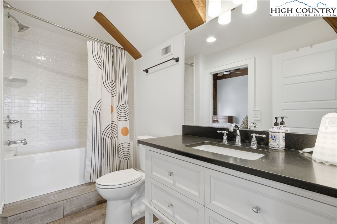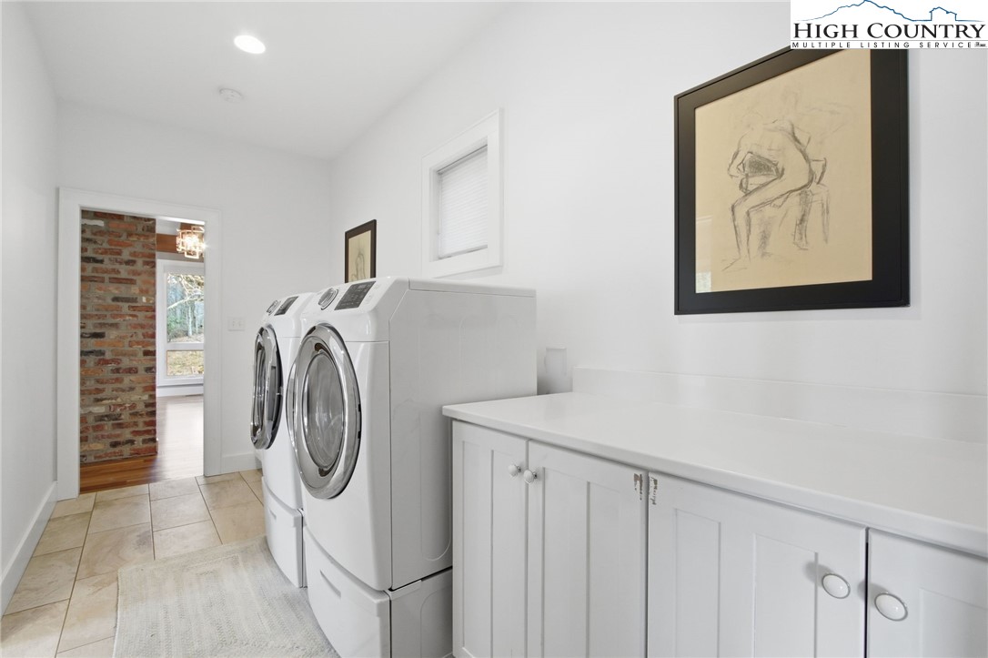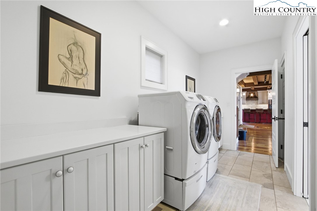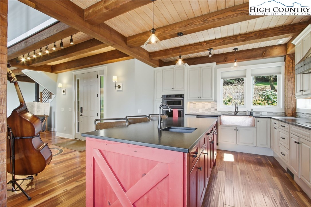 Exceptional timber frame home offering stunning Grandfather Mountain views in a premier location just off the Blue Ridge Parkway! Directly adjacent to Moses Cone Manor property with a trailhead directly across the street to hike on public land all the way to Profile Trail on Grandfather Mountain. Filled with natural light from expansive west-facing windows, the home features a spacious kitchen with built-in cooktop, wall oven, and microwave, custom cabinetry, upgraded appliances, and a large island with prep sink and seating. The adjoining dining area is perfectly positioned to take in the mountain views, with direct access to the deck for outdoor enjoyment. The main-level primary suite offers vaulted ceilings, a generous walk-in closet tucked behind a custom brick accent wall, and a beautifully appointed ensuite bath with tile throughout, glass shower, and separate soaking tub. Laundry is conveniently located on the main level, allowing for easy one-level living. In the living room, the wood stove is surrounded by soapstone, making it more efficient at radiating heat, and features a baking oven. Upstairs, a versatile loft with bedroom and full bath provides flexible space for additional sleeping, office, or recreation. Situated on two lots totaling over one acre, the property offers a level yard and ample flat parking along a cobblestone driveway, along with an attached two-car garage with an EV charging station. Other notable upgrades include metal roofs, owned solar panels on both the home and garage with a new battery storage system, and geothermal heating and cooling supported by two wells. The installed septic system is for a three-bedroom home; if someone wanted to add the upstairs doorway, it would become the third bedroom. Located just five minutes from downtown Blowing Rock and moments from the Blue Ridge Parkway, this property combines privacy, efficiency, and convenience in one remarkable High Country offering.