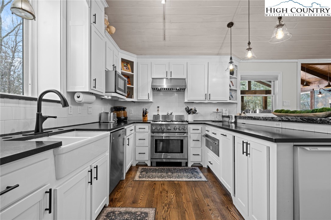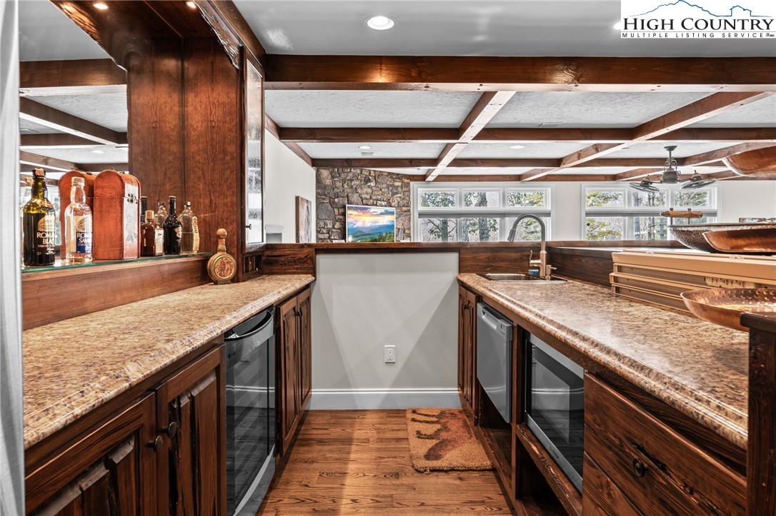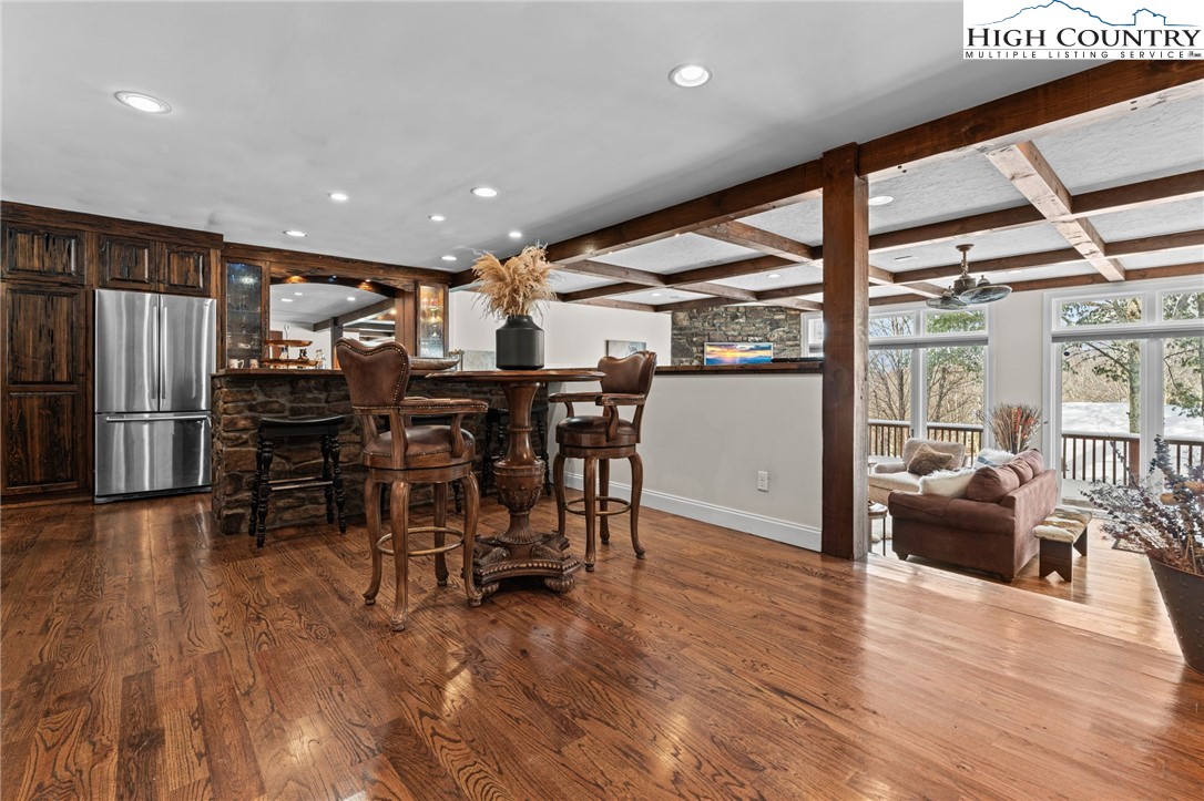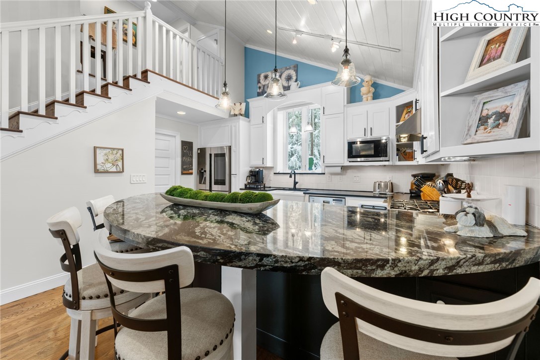 MULTI-RESIDENCE ESTATE! Don't miss this opportunity to own not just 1 but TWO LUXURY RESIDENCES on a level 0.82 acres, situated on one of the most coveted streets in Beech Mountain—St. Andrews Road! This prime location is a short drive to the ski resort & provides immediate access to the Beech Mountain Club golf course (across from the 18th tee box), fine dining and offers a tranquil environment making it the perfect choice for golfers, nature enthusiasts and anyone looking for a peaceful escape to share with family & friends. Each residence brings its own warm personality and thoughtful design, created to give families a place to relax, reconnect and make memories together—whether that’s sharing meals, hosting holidays or simply enjoying time in the mountains with the people who matter most. The primary residence was completely renovated in 2015 & offers 4 BEDROOMS - 3 full baths & 2 half baths spanning across 4,200+ sq ft, welcoming you with an expansive open floor plan, soaring ceilings and rich wood flooring. The dining area, highlighted by a gas log fireplace, flows seamlessly into the gourmet kitchen, while the newly finished family room features vaulted T&G ceilings, a cozy gas log fireplace and a vented grill with granite bar, refrigerator and sink. The main-level primary suite includes a spa-like bath, while the upper level provides 2 guest bedrooms with a Jack & Jill bath. The lower level, with its own private entrance, offers an inviting family room with fireplace, billiards table and a custom-built bar complete with sink, refrigerator and microwave, along with the 4th BEDROOM SUITE. The 2ND RESIDENCE (1,087 sq ft) is a rustic luxury 2-bedroom, 2-bath GUEST HOUSE built in 2022, already generating rental income and showcases soaring T&G ceilings, a built-in fireplace and a state-of-the-art kitchen with center island—perfect as a guest retreat, add'l family space or investment property. The grounds are professionally landscaped with elegant lighting, stone walkways, a fenced yard and 3 driveways for effortless access into the homes as well as the tandem garage. Add'l amenities include an EV charging station, radon mitigation system and central A/C. A current Beech Mountain Club membership (a $25K value) conveys at closing, granting exclusive access to premier golf, tennis,/pickleball, fitness facilities, outdoor heated pool and exceptional dining options. As night descends, both homes undergo a magical transformation, revealing a charm unlike anything this area has ever seen. The atmosphere becomes alive with the warmth of shared stories and the joy of newly created traditions. Each moment beckons you to unwind and savor the tranquility of this stunning landscape! Embrace the invitation to make Beech Mountain your new home, you won't regret it. Combined square footage for both homes is 5,338!