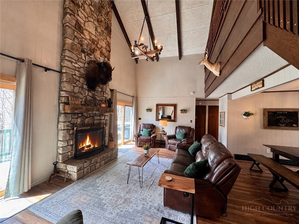 Welcome to the Southern Buffalo, a fully furnished and income-generating mountain chalet retreat blending adventure, comfort, and investment opportunity just minutes from Beech Mountain Ski Resort. This 4-bedroom, 3-bathroom property exudes classic alpine charm, with a soaring vaulted great room featuring exposed beams and an impressive stone fireplace. The open layout encourages large groups to gather and enjoy everything the High Country has to offer. Experience numerous updates inside and out. This fun mountain getaway comfortably sleeps 10 guests, featuring three main-level bedrooms, a loft sleeping area, and three full bathrooms. Recent improvements include a newer HVAC system, fresh exterior paint, stained decking, renovated bathroom finishes, and an improved kitchen with a new stove and recently painted cabinets. Step outside to the spacious back deck to take in the seasonal view of the ski slopes, and relax in the hot tub. Set in one of North Carolina’s premier year-round destinations, this property grants access to skiing, snowboarding, hiking, mountain biking, and year-round outdoor activities, all within minutes. Whether you seek a Beech Mountain investment, vacation home, or secluded mountain getaway, this chalet fulfills every requirement.