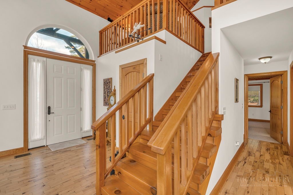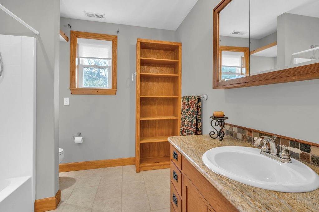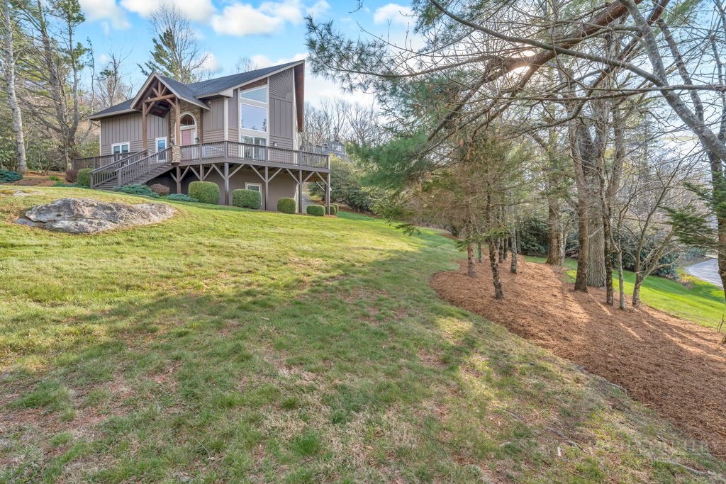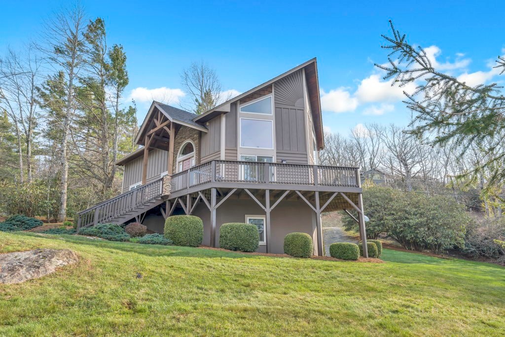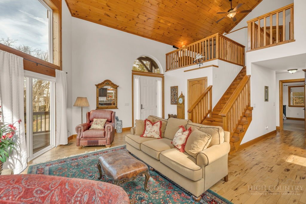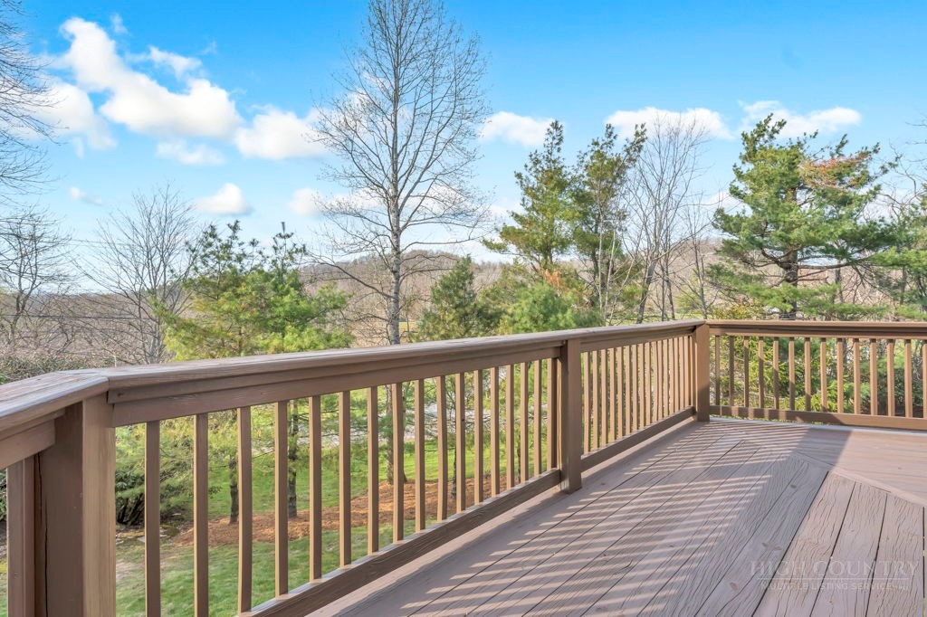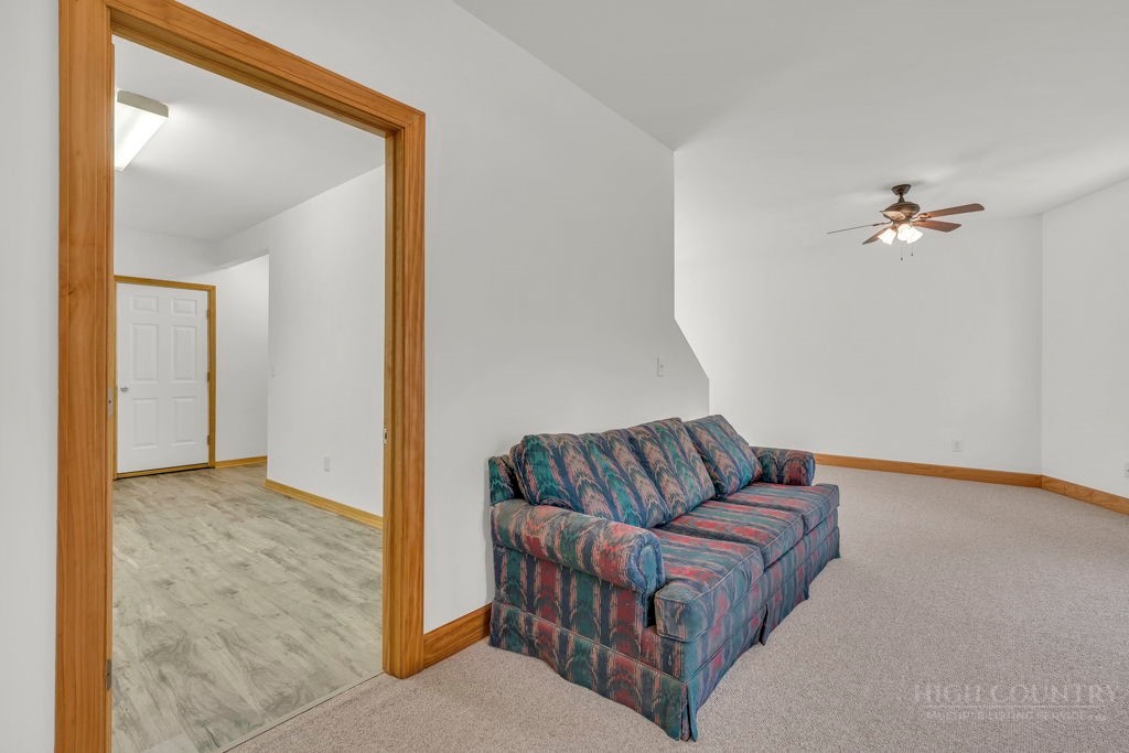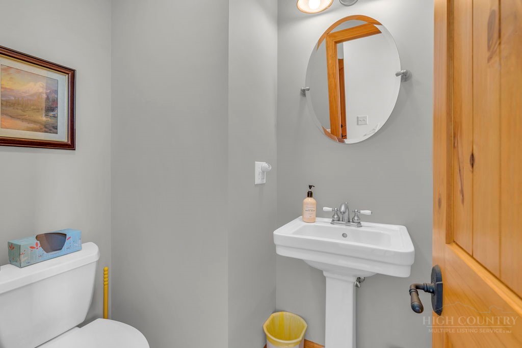 126 Knob Road - the perfect getaway, investment property, or full-time residence with seasonal mountain views, just minutes to Blowing Rock and all the High Country has to offer! Just off the Blue Ridge Parkway, enjoy seasonal mountain views, high elevation (3,600+ feet!), and easy access year-round on paved roads. Offered fully furnished and turnkey with no exceptions; short-term rentals permitted! This charming home offers three bedrooms and two and a half baths with bonus rooms and spaces, a spacious deck, and usable yards. On the walk-in level, enter from the covered front entry to the two-story Great Room with a vaulted ceiling and stone fireplace, adjacent to a dining area and kitchen with updated appliances and granite counters. The main level also includes a primary suite with a large walk-in closet and a full bath with a jetted soaking tub, as well as an office or bonus room and a half bath. Upstairs, find a lofted sitting area overlooking the Great Room, two bedrooms, and a full bath. Downstairs, a second living room grants walkout access to the yard, and is adjacent to a large storage or bonus room, laundry room, and access to the oversized one-car garage. Additional features: tongue-and-groove ceilings throughout, high-speed internet, dual driveways at front and back, ample storage space.