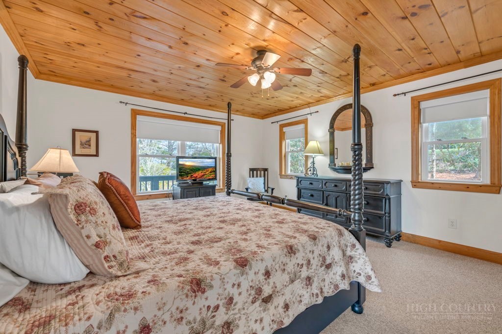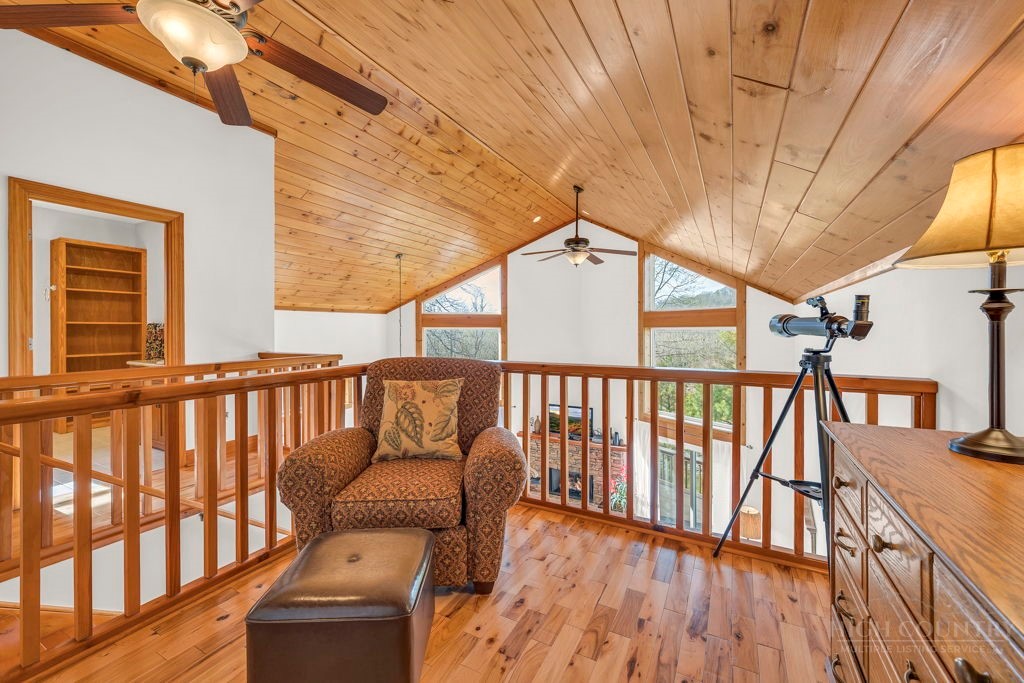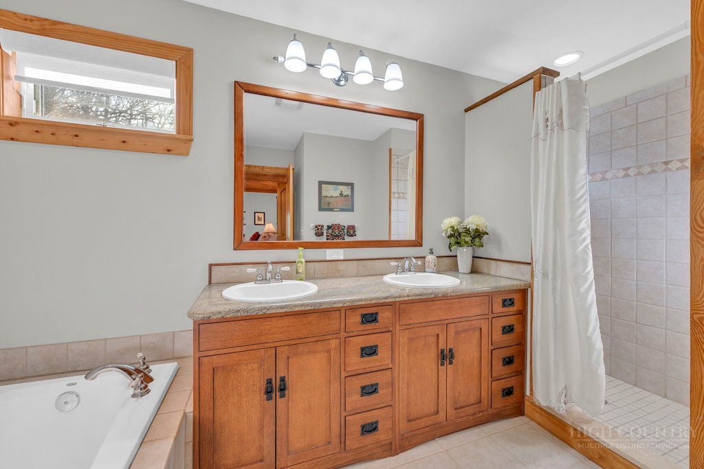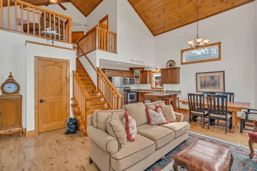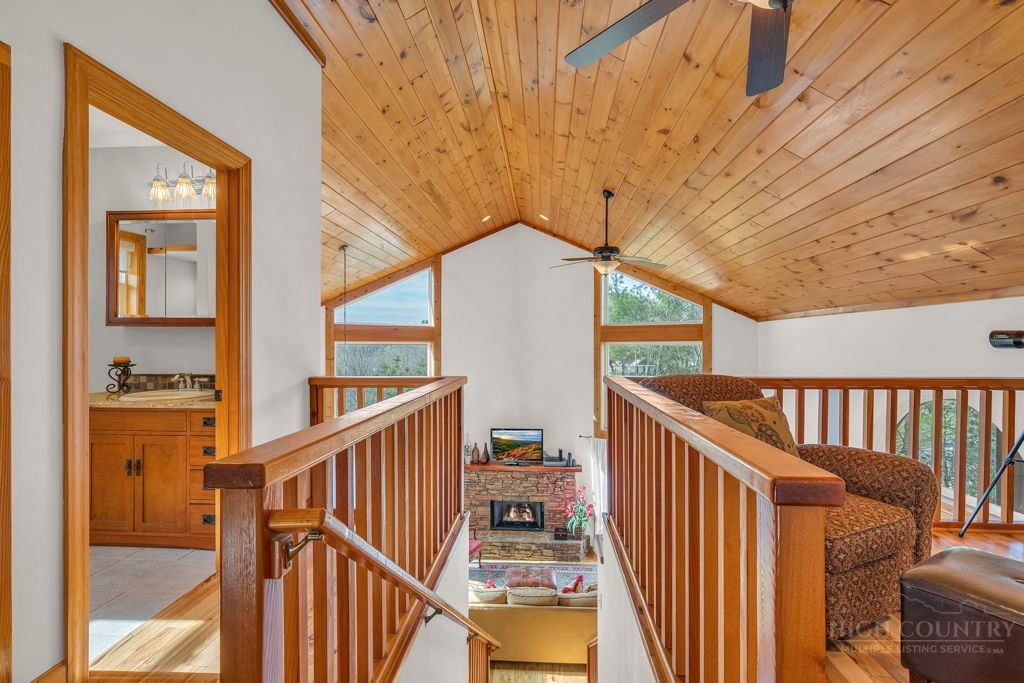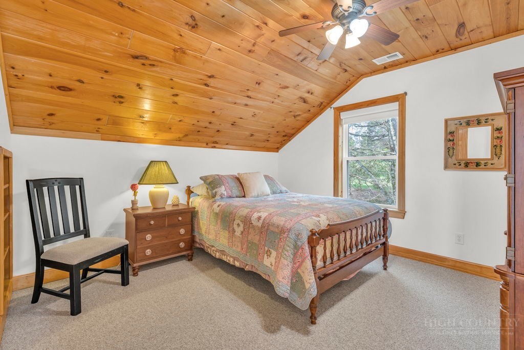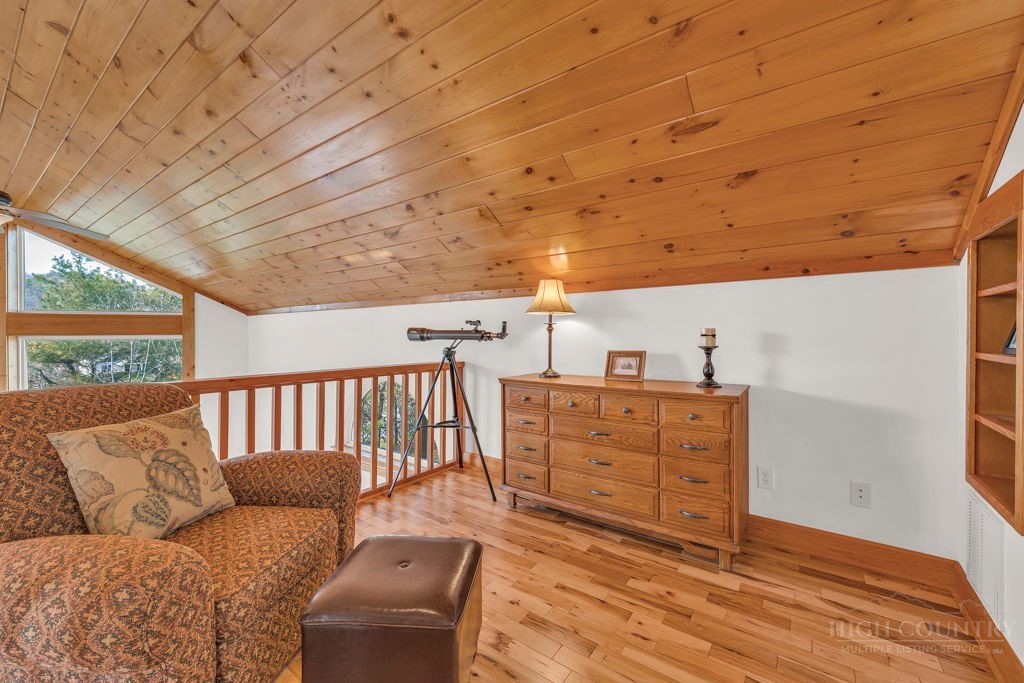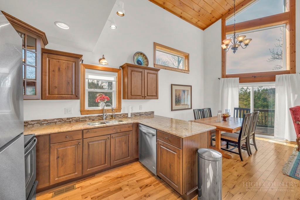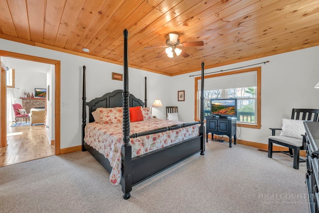 126 Knob Road - the perfect getaway, investment property, or full-time residence with seasonal mountain views, just minutes to Blowing Rock and all the High Country has to offer! Just off the Blue Ridge Parkway, enjoy seasonal mountain views, high elevation (3,600+ feet!), and easy access year-round on paved roads. Offered fully furnished and turnkey with no exceptions; short-term rentals permitted! This charming home offers three bedrooms and two and a half baths with bonus rooms and spaces, a spacious deck, and usable yards. On the walk-in level, enter from the covered front entry to the two-story Great Room with a vaulted ceiling and stone fireplace, adjacent to a dining area and kitchen with updated appliances and granite counters. The main level also includes a primary suite with a large walk-in closet and a full bath with a jetted soaking tub, as well as an office or bonus room and a half bath. Upstairs, find a lofted sitting area overlooking the Great Room, two bedrooms, and a full bath. Downstairs, a second living room grants walkout access to the yard, and is adjacent to a large storage or bonus room, laundry room, and access to the oversized one-car garage. Additional features: tongue-and-groove ceilings throughout, high-speed internet, dual driveways at front and back, ample storage space.