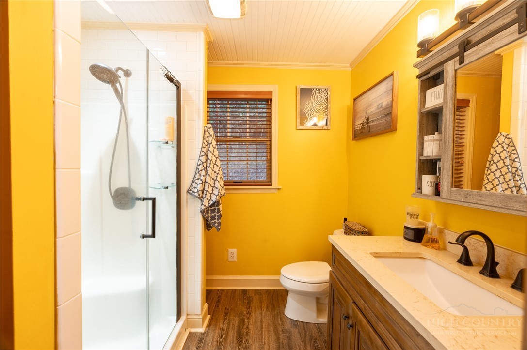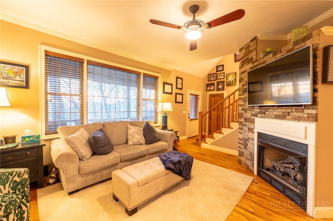 Gorgeous Mountain Home on Over an Acre of Breathtaking High Country Mountain land. The main level offers an open floor plan with the Large primary bedroom with ensuite bathroom and another Half bath for guests off of the living area. It also features an updated spacious kitchen and dining area which includes all the modern amenities and gleaming hardwood floors. Also on the main level a spacious laundry area for convenience. The upper level has a bedroom, a bonus room and full bath. The Lower Level offers a finished basement area which includes a separate entrance, Large One Car Garage and plenty of parking for you and guests. Enjoy multiple decks off of the home for relaxing and enjoying your own Mountain Home lifestyle. Conveniently located near Valle Crucis, Watauga River, Boone, and Banner Elk, this Mountain home is great as a primary residence or vacation home. Don't miss this Amazing Mountain Property!