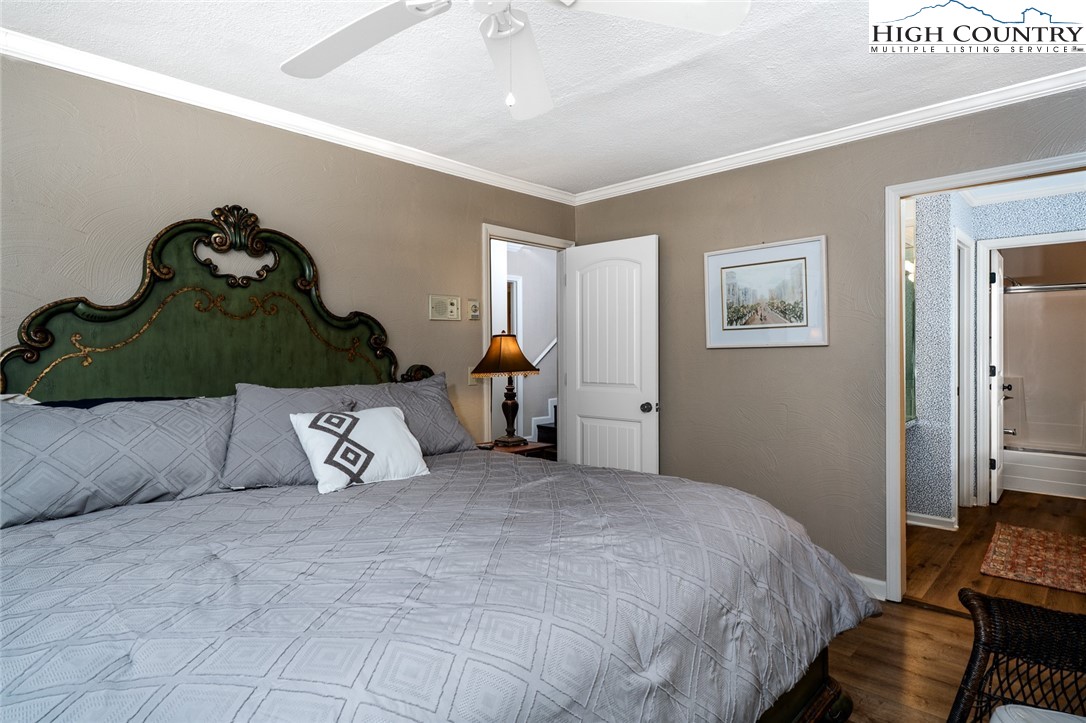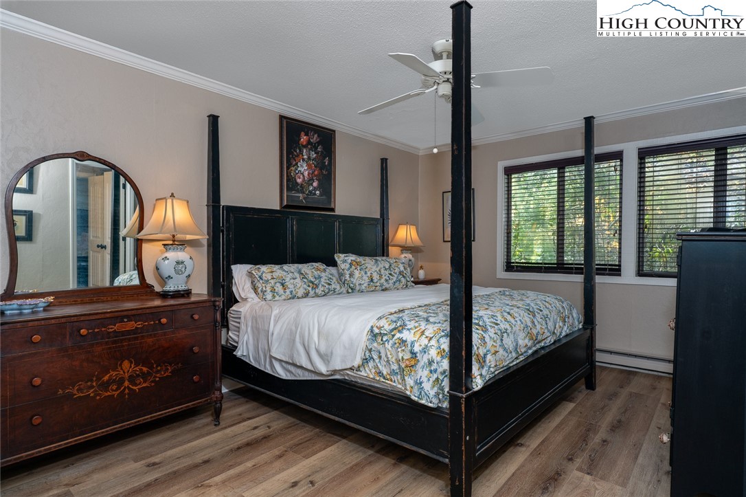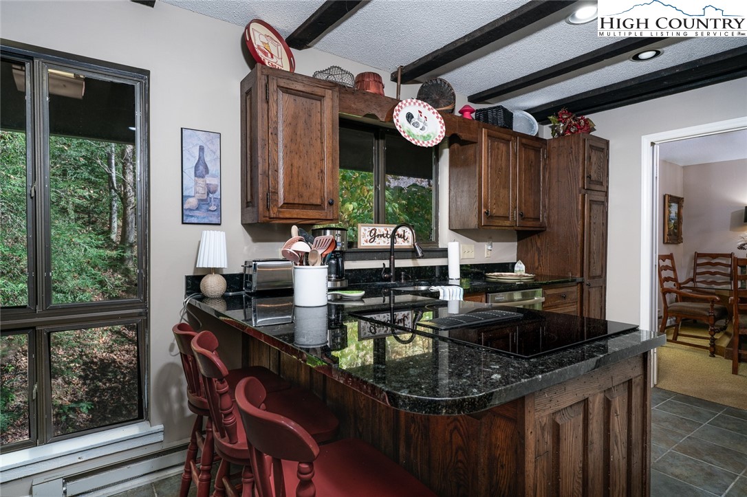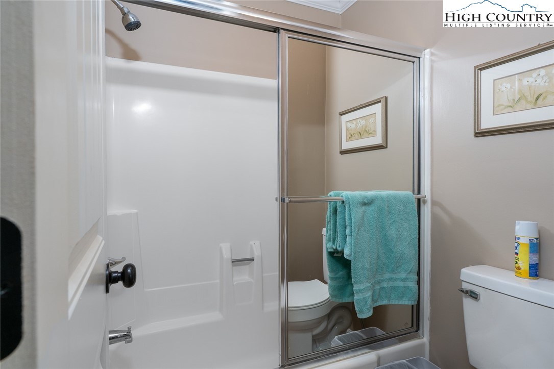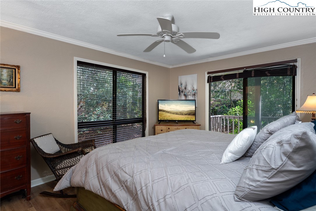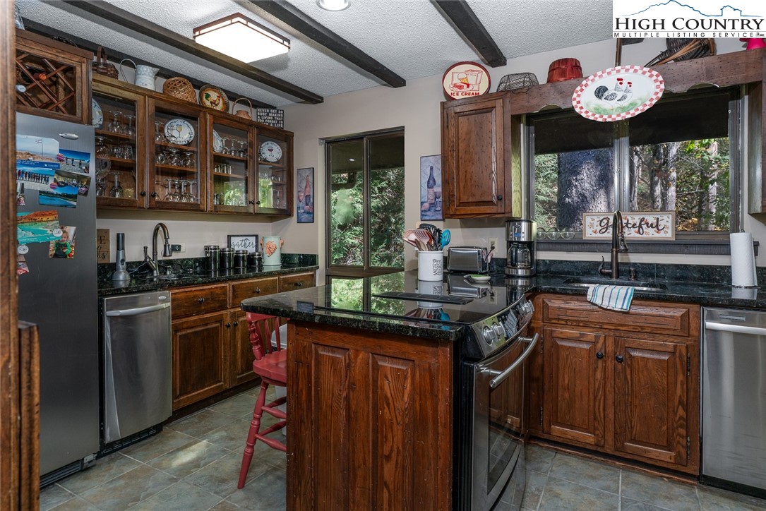 Welcoming streamside mountain retreat in the desirable gated Hound Ears community. Perched alongside a year-round tributary of the Watauga River, enjoy the water sounds and outdoor views from the decks of this four-bedroom, three and a half-bath mountain home. The main level is made for entertaining family and friends with a cozy den and kitchen that adjoins an open living room and dining room. Relax on the upper porch and enjoy grilling outside in the mountain air and sounds of the stream. The second level has two bedrooms sharing a Jack and Jill bath and the primary suite with a spacious bath and walk-in closet, with its porch along the stream. The bottom level features Grandfather Mountain slate flooring, full bath, and bedroom. Level driveway and parking provide easy access. Impressive rock features outside along the stream provide a secluded feel while being convenient to all activities the Hound Ears community and High Country have to offer.