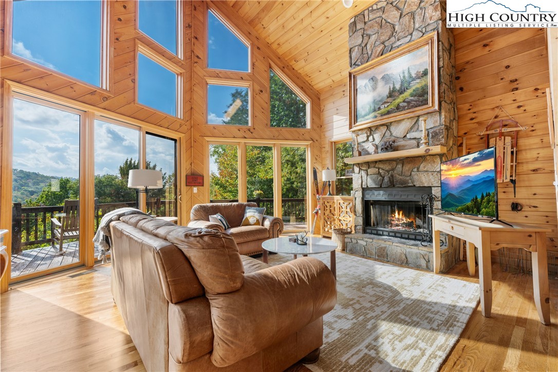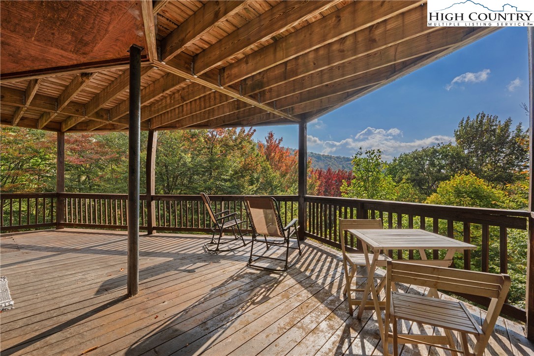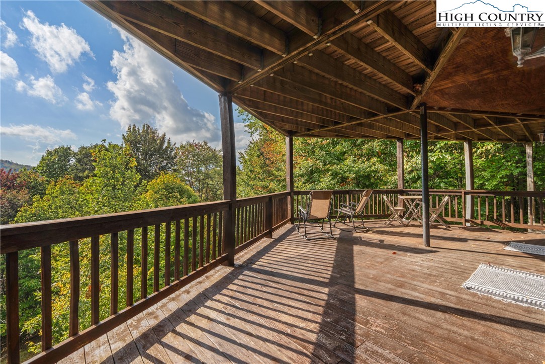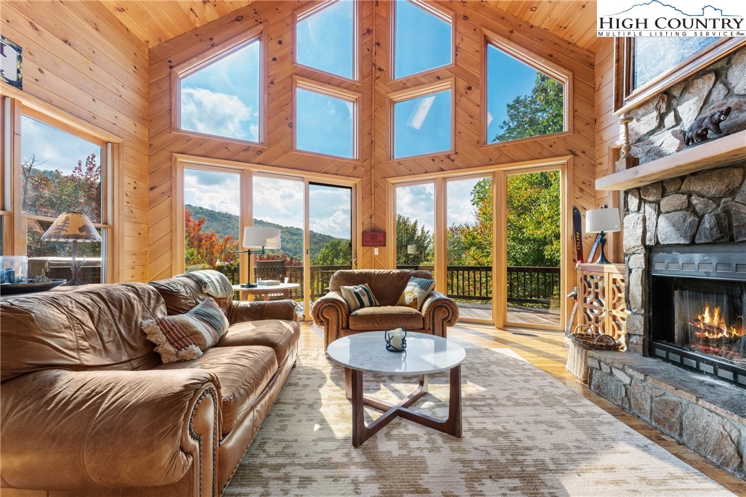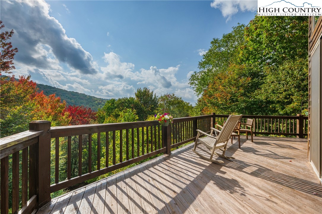 No, you are NOT dreaming! This 13.95 ACRE BEECH MOUNTAIN ESTATE - ATALINA CABIN won't last long & is truly a ONE of a KIND MOUNTAIN HOME! This extraordinary PRESTINE 3 BEDROOM + LOFT BEDROOM & 2.5 BATH property is more than just a home; it’s a magical mountain escape that promises serenity and adventure in equal measure. Unlike any other property on Beech Mountain, Atalina Cabin boasts beauty, seclusion, expansive land as well as beautiful westerly views into Tennessee! Whether you choose to spend your day wandering through the expanse of 13.95 acres discovering hidden paths and abundant wildlife or unwind on the rear deck while soaking in the tranquil surroundings, you truly won't want to be anywhere else! The main level offers an expansive open floor plan seamlessly connecting the renovated kitchen, dining & family rooms with a wall of windows that flood the main living space with natural sunlight which showcase the mountain views. The striking floor-to-ceiling stone wood burning fireplace adds character and warmth ideal for relaxing after a cold day on the slopes. The main level also offers a 1/2 bath, laundry room & primary bedroom suite. The upper level has a spacious loft bedroom which could also be used for a workout room or office. The lower level has the 2nd family room, 2 guest bedrooms and a beautifully renovated full bath. Another amazing amenity of Atalina Cabin is the storm/bomb shelter below ground which has power, water via a private well, sink and toilet. Buckeye Creek also runs below the cabin & is a short hike to the creeks w/mini waterfalls and hidden pockets for water wading. Whether you’re into outdoor activities, wildlife watching or simply soaking in spectacular sunsets, this property offers endless opportunities. Conveniently located just 5 minutes from Ski Beech Resort, this property allows you to easily access all the thrilling outdoor Beech Mountain activities year-round while still being your private sanctuary. This home is beautifully furnished and the furnishings convey at closing. Beech Mountain Club membership is also available should you choose to become a member where you will enjoy access to member only amenities, including FINE DINING, championship golf, outdoor swimming pool, a fully-equipped fitness center & pickleball/tennis courts.